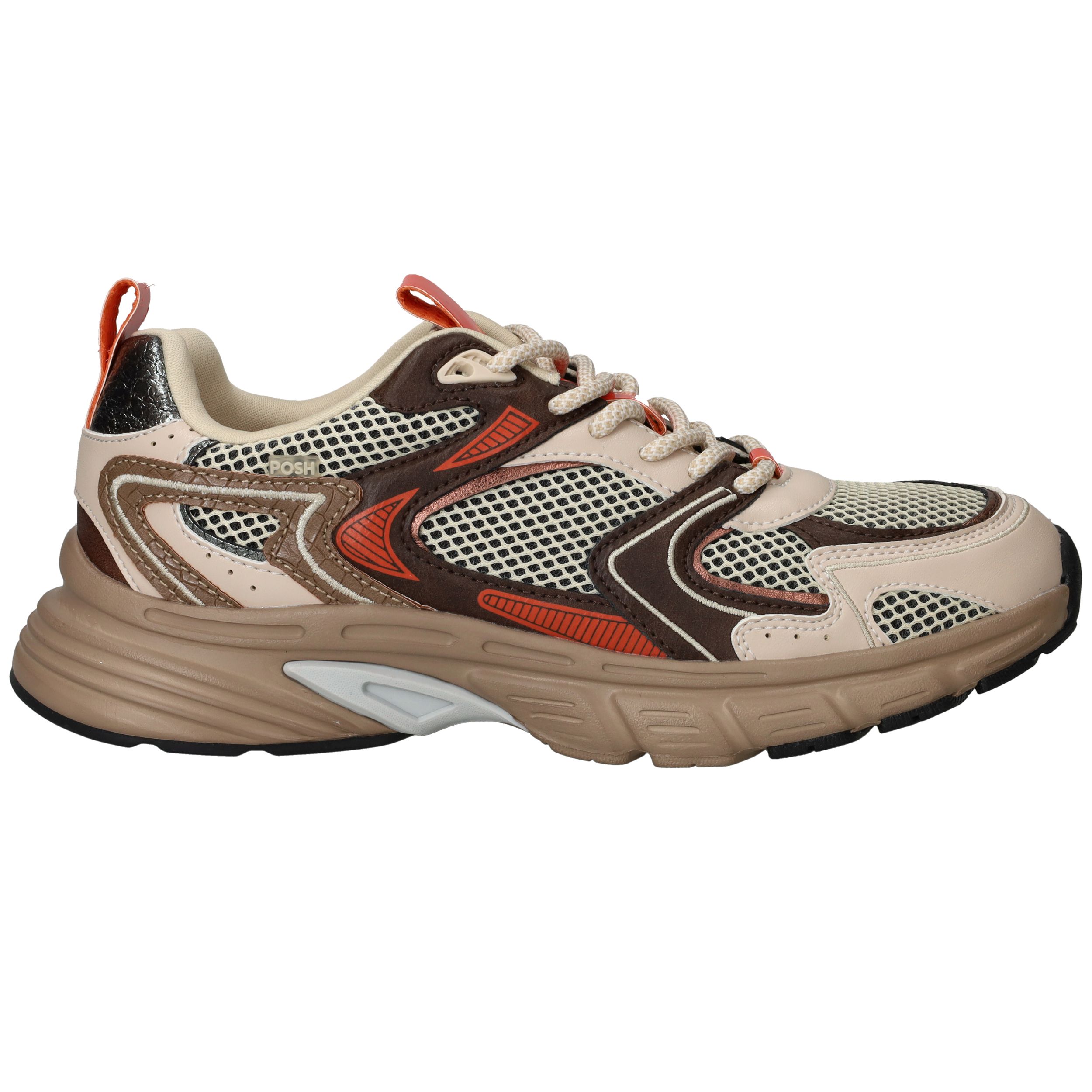 De POSH by Poelman sneakers zijn de perfecte mix van sportief en stijlvol. Deze beige dames sneakers combineren ademend textiel met stevig kunstleer, waardoor ze licht en toch duurzaam zijn. Dankzij de comfortabele G-voetbreedte en de stevige zool geniet je van een fijne pasvorm en optimale ondersteuning. Ideaal voor dagelijks gebruik of een trendy casual look.
