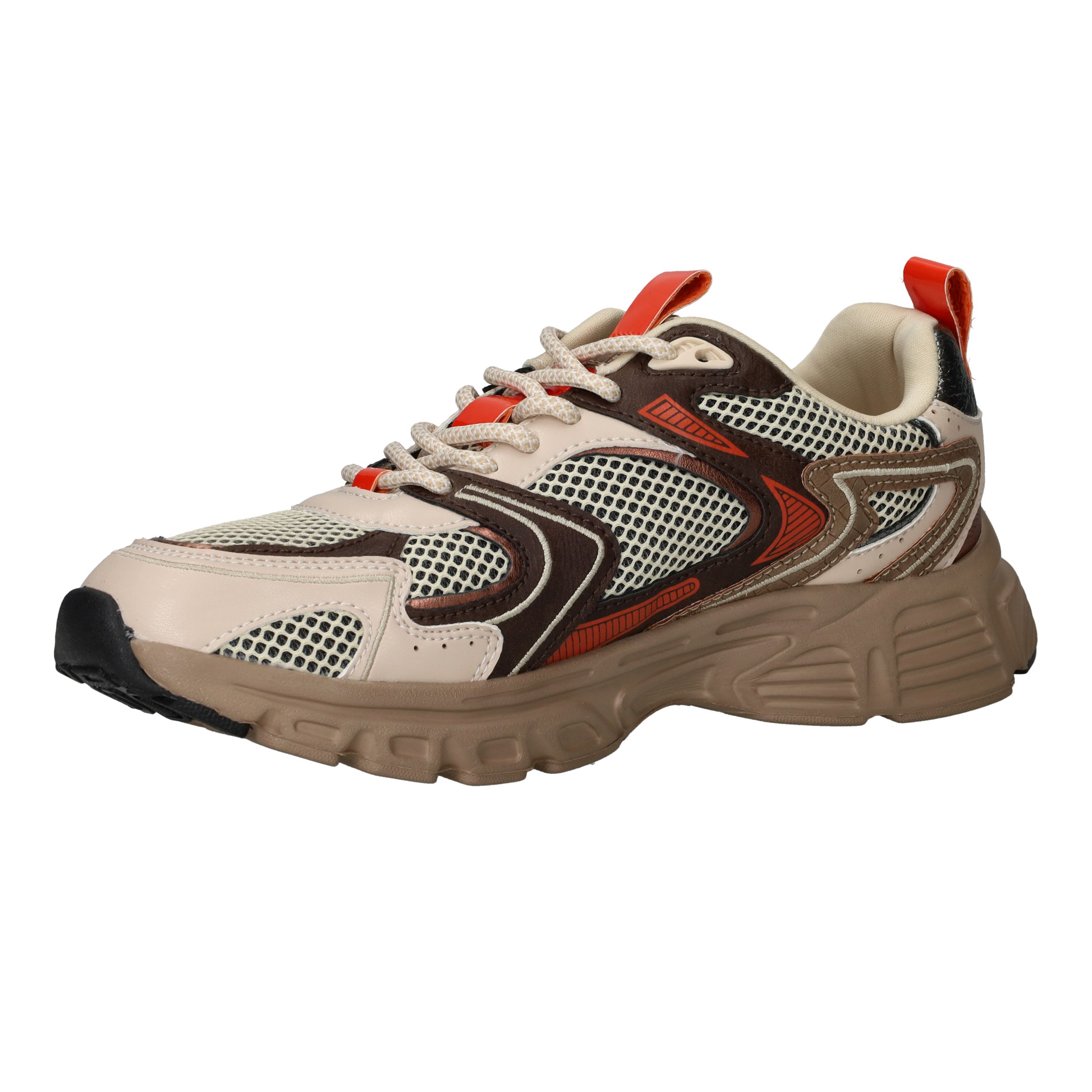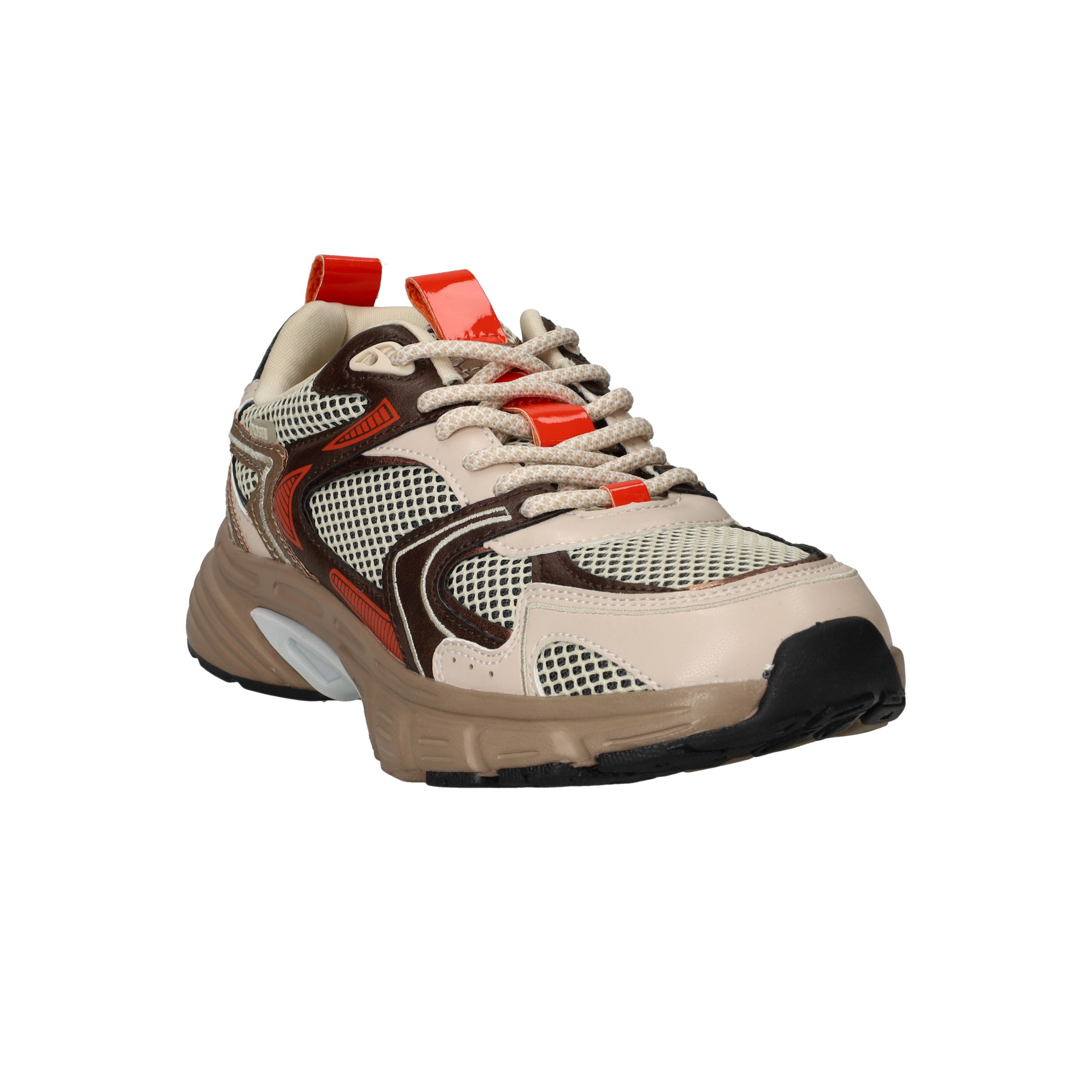 - Het bovenmateriaal bestaat uit textiel en kunstleer, wat zorgt voor ventilatie en stevigheid.