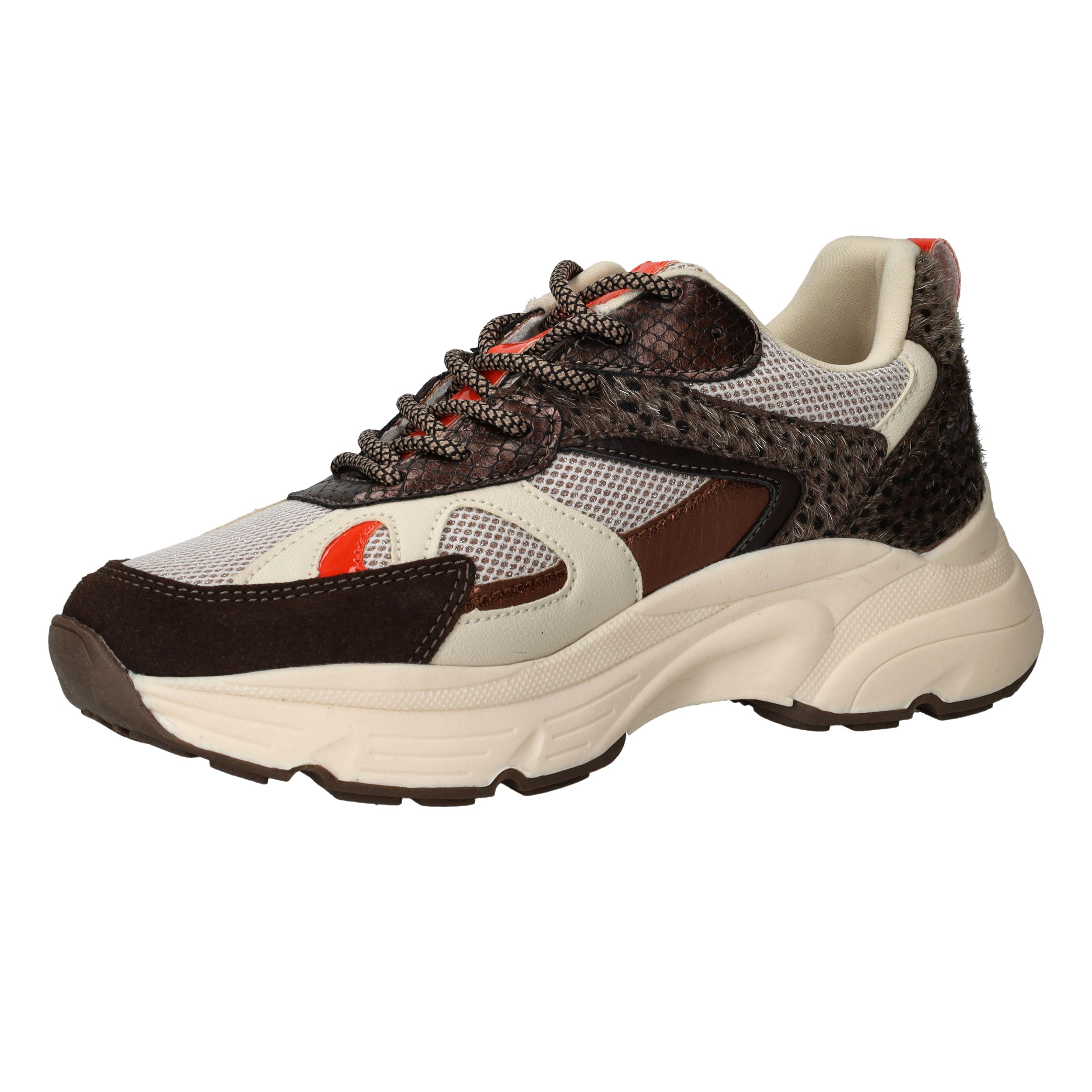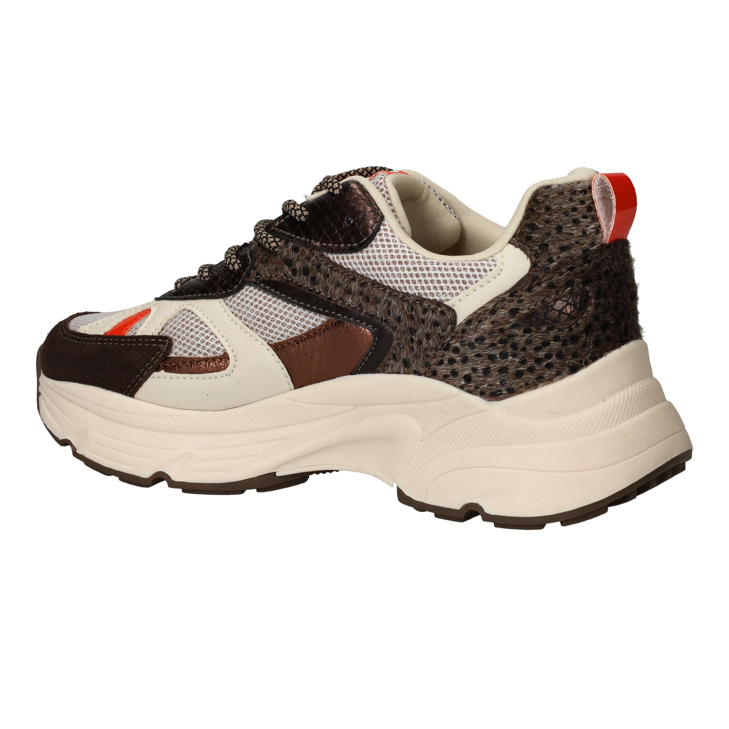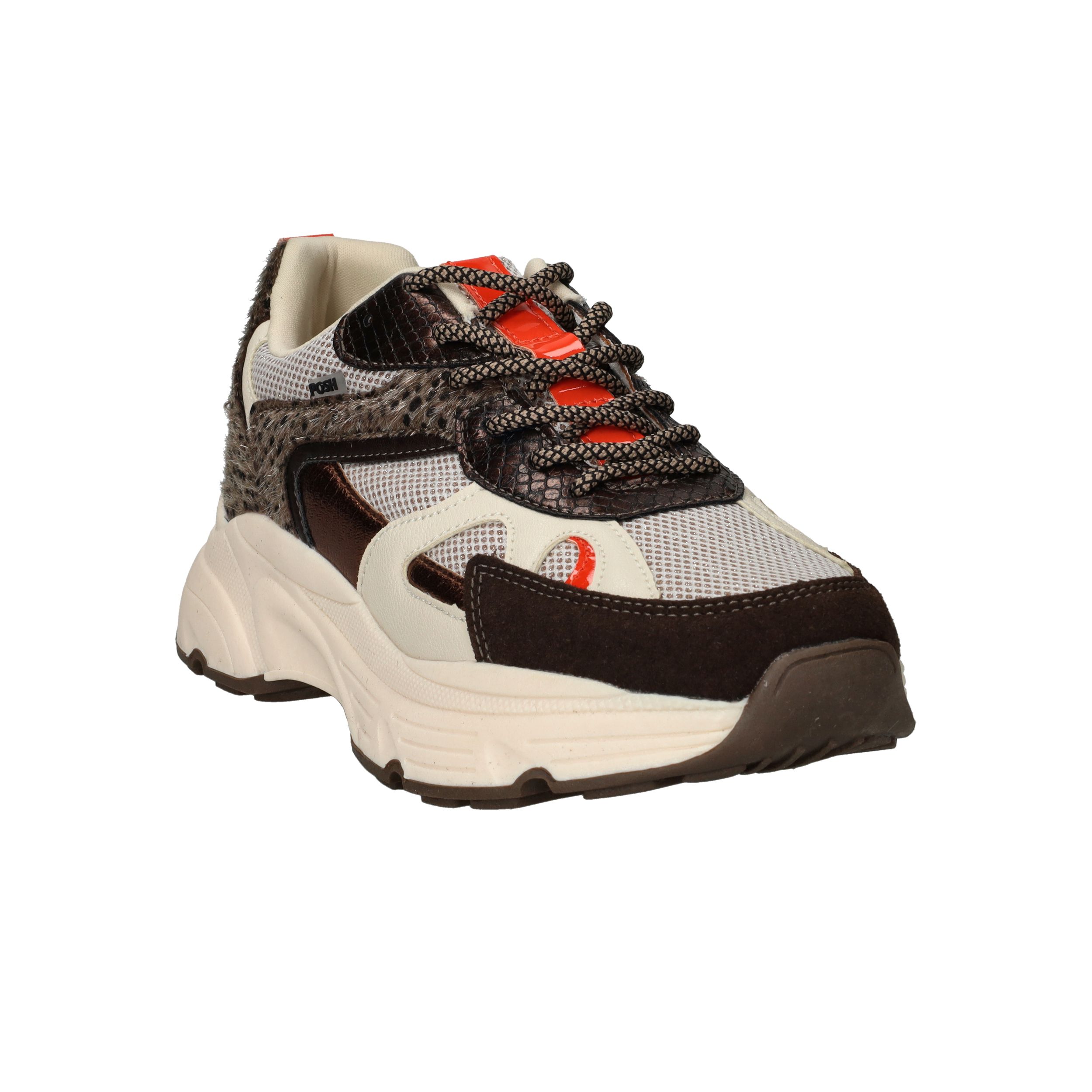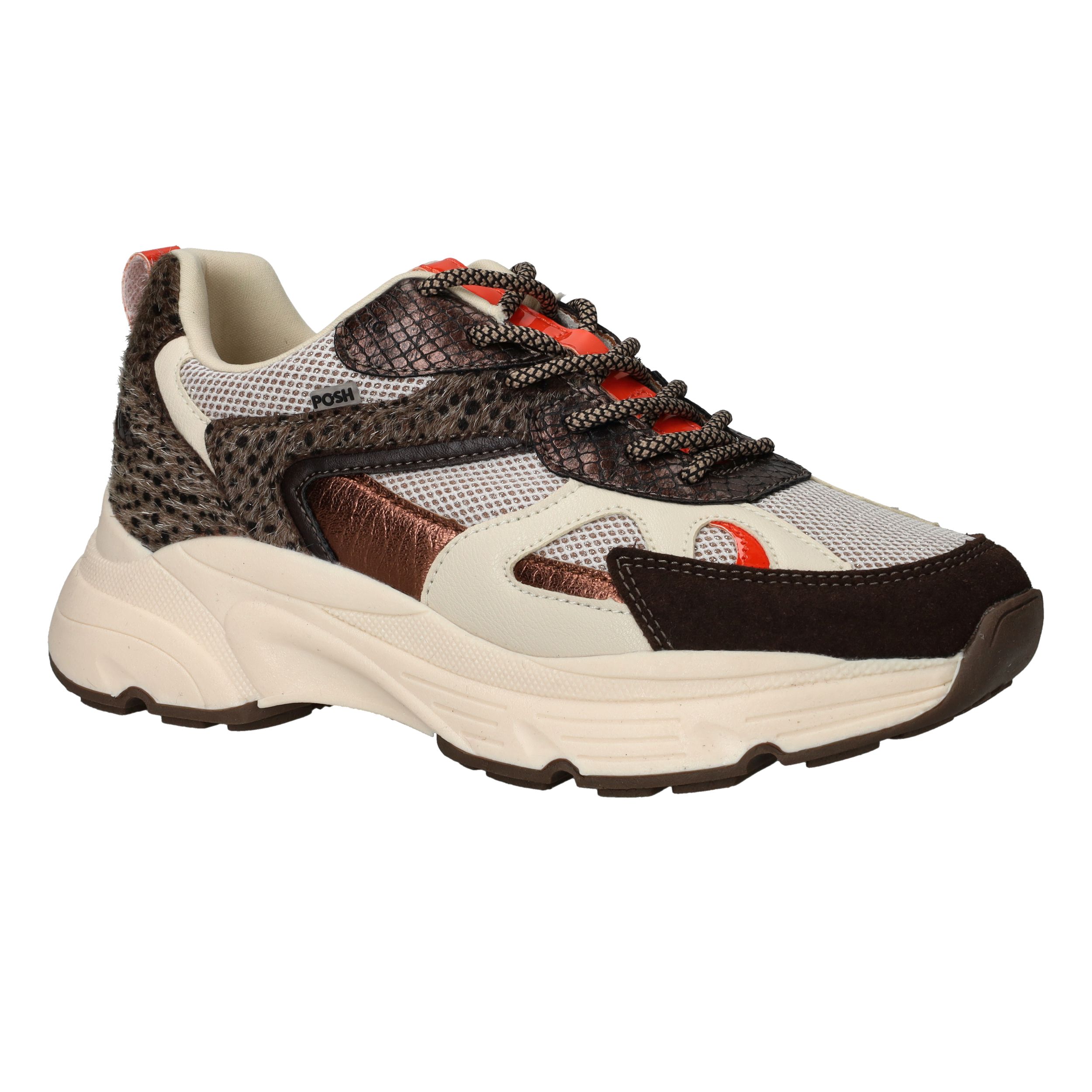 Deze trendy sneaker van POSH by Poelman valt op door de combinatie van neutrale kleuren en speelse panterdetails. Perfect voor dames die houden van een sportieve look met een vrouwelijke touch. Het stevige model en de dikke zool zorgen voor comfort én stijl, elke dag opnieuw.