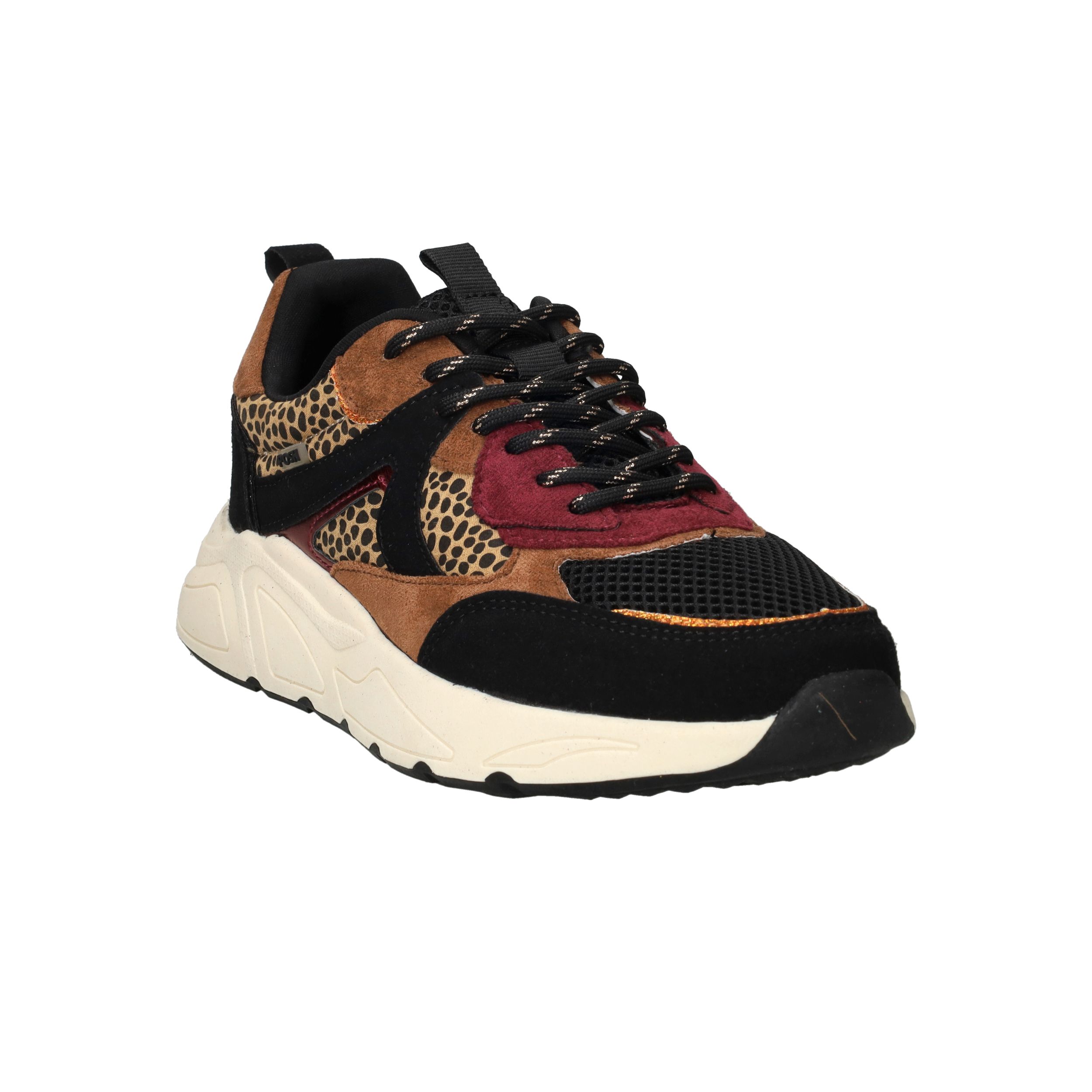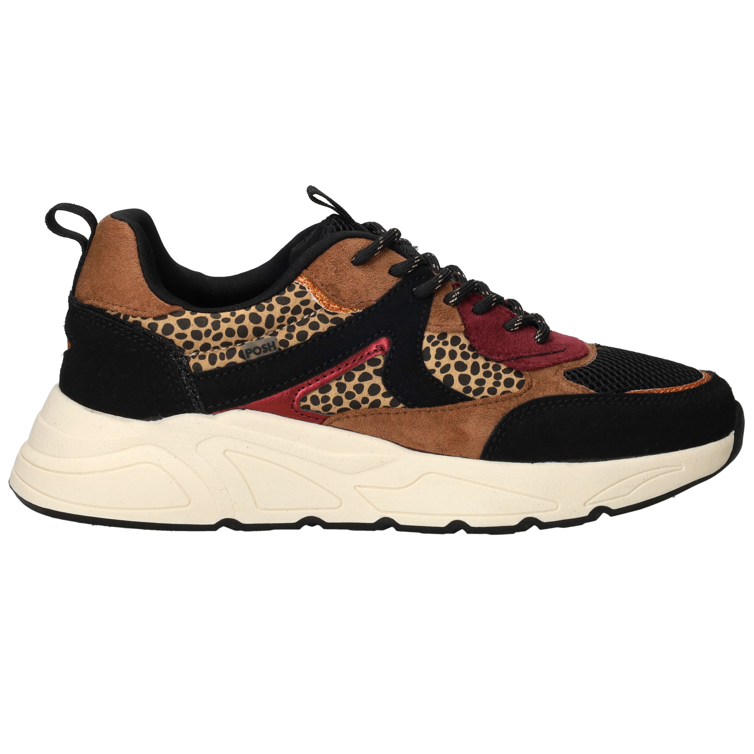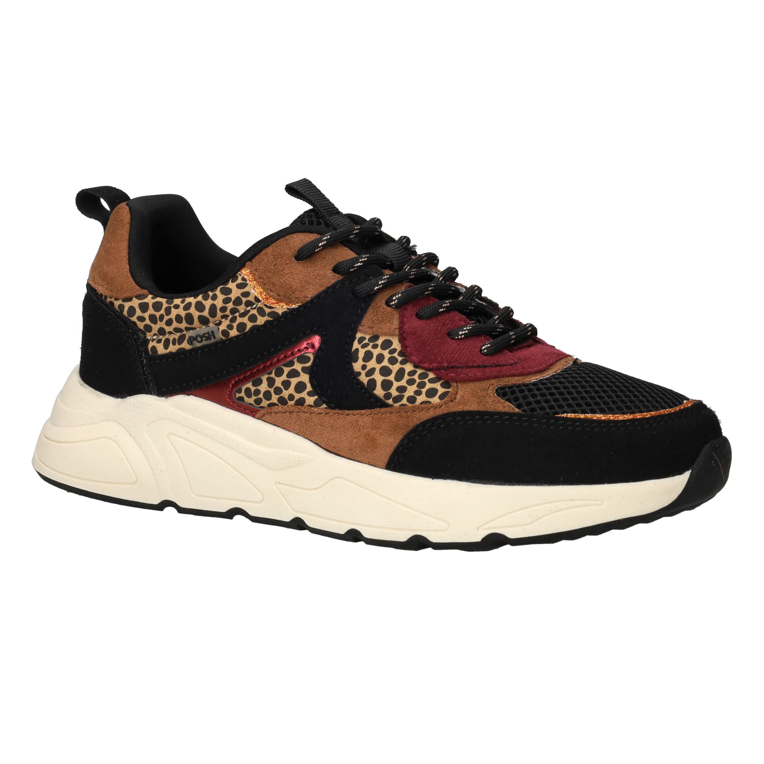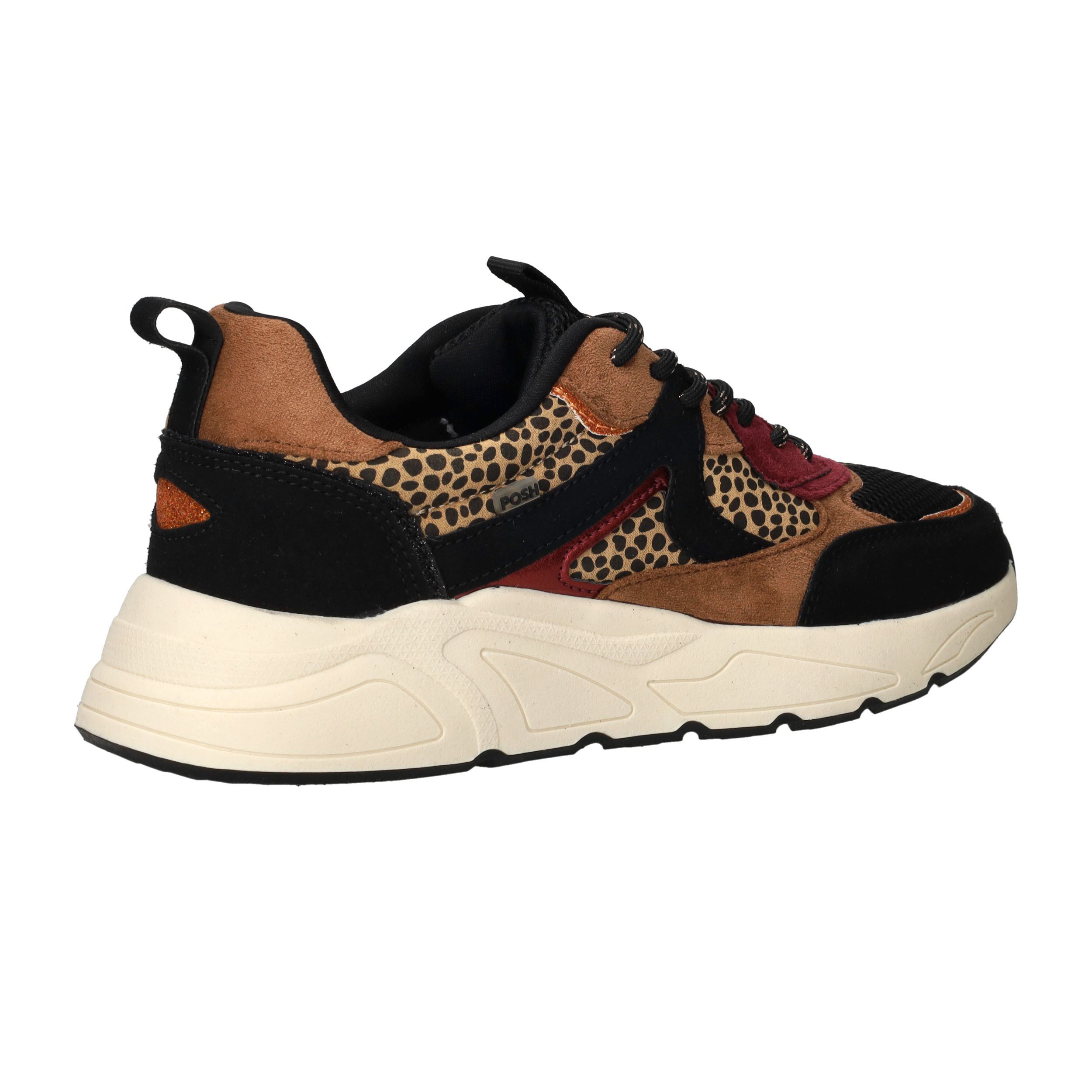 Deze sneaker van POSH by Poelman is dé eyecatcher voor elke stoere en modieuze dame. De combinatie van panterprint, zwart en warme bruintinten maakt deze damessneaker uniek en uitgesproken. Ideaal om jouw casual outfit een speelse upgrade te geven!