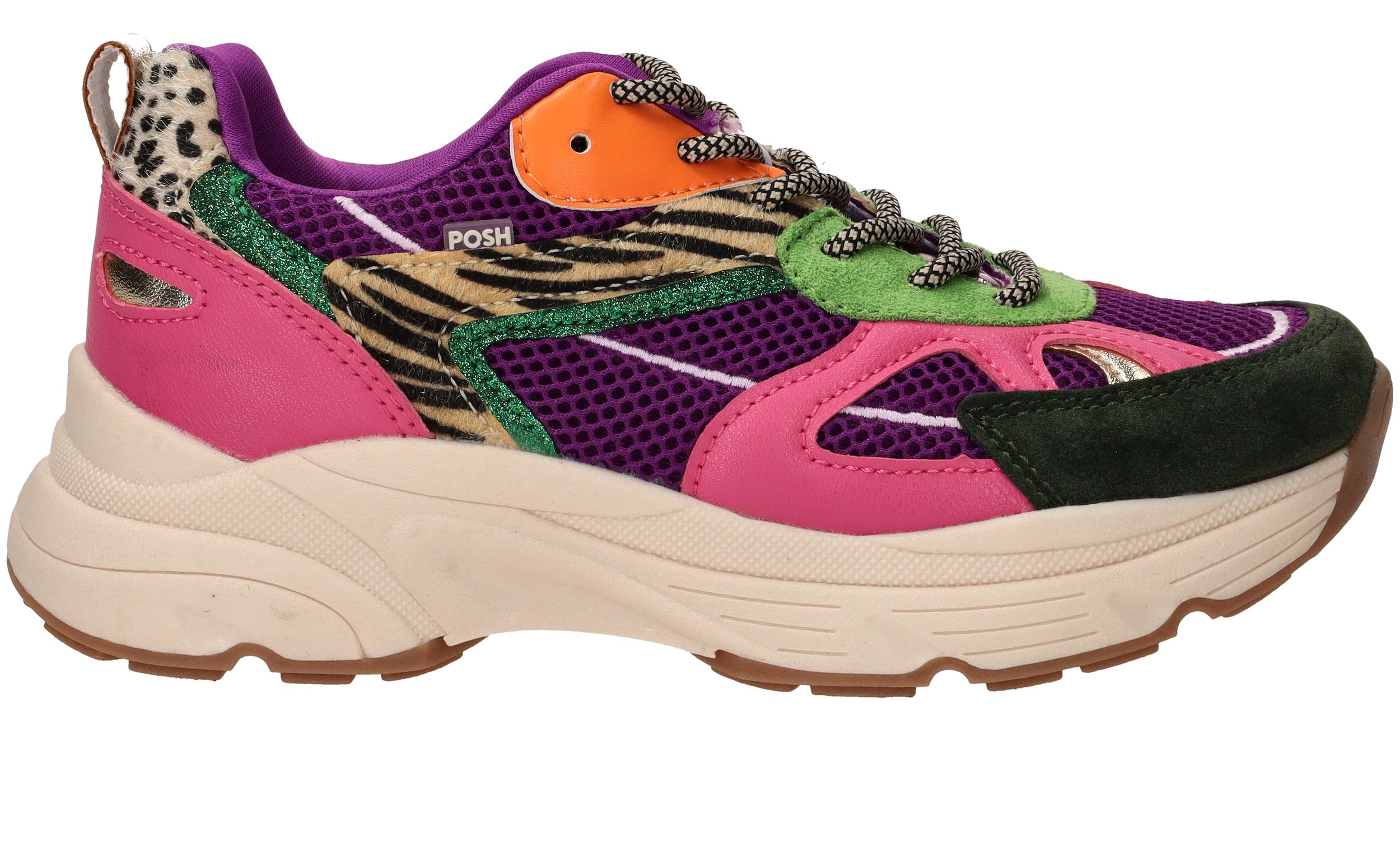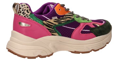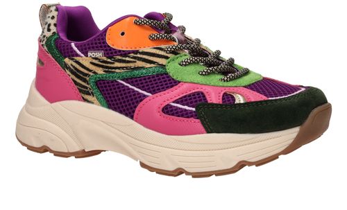 Vrolijke sneaker voor meiden in diverse multikleuren met dierenprint van het merk POSH by Poelman.