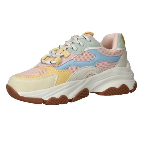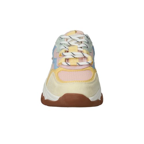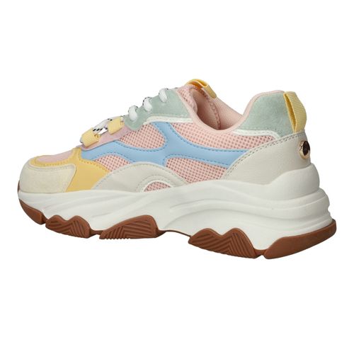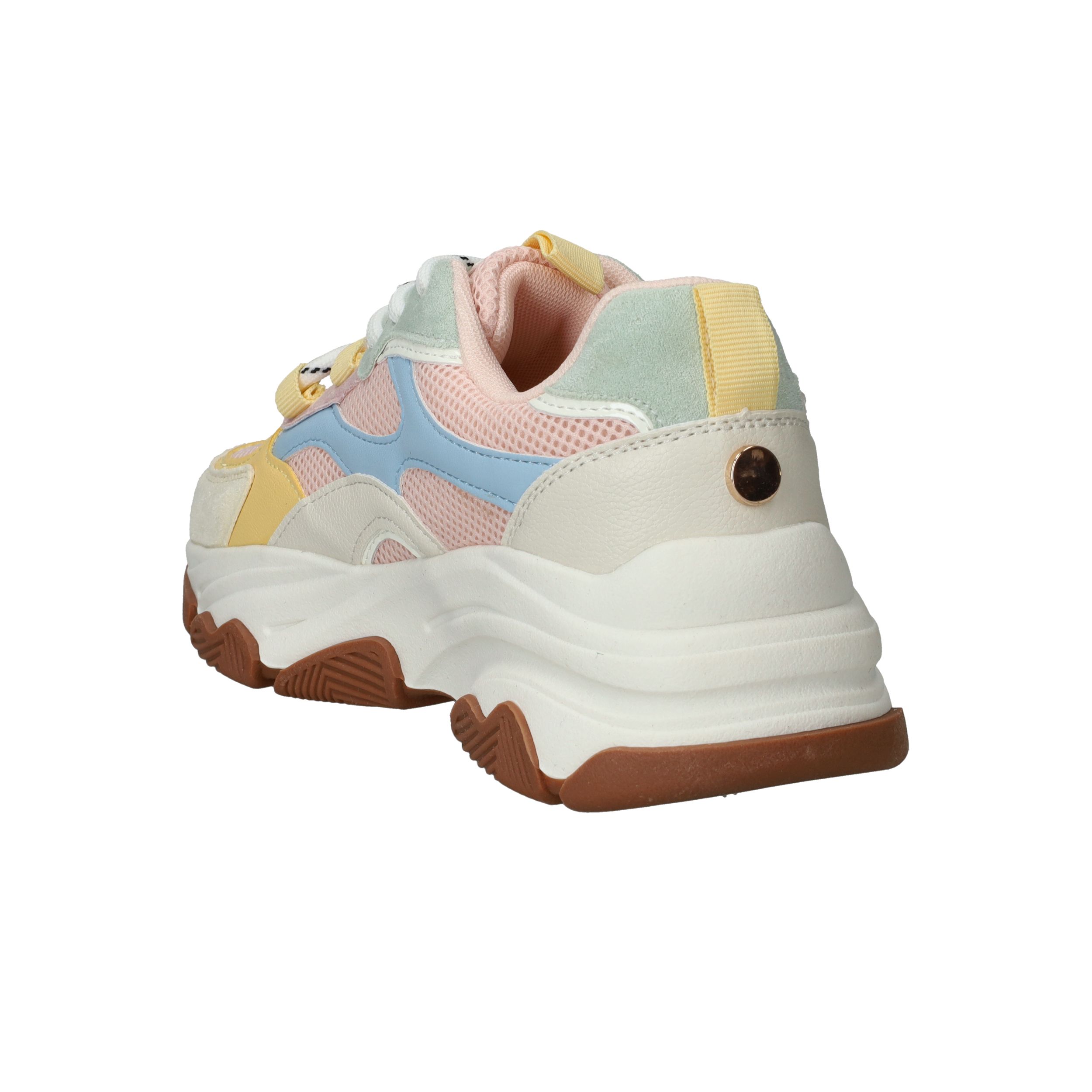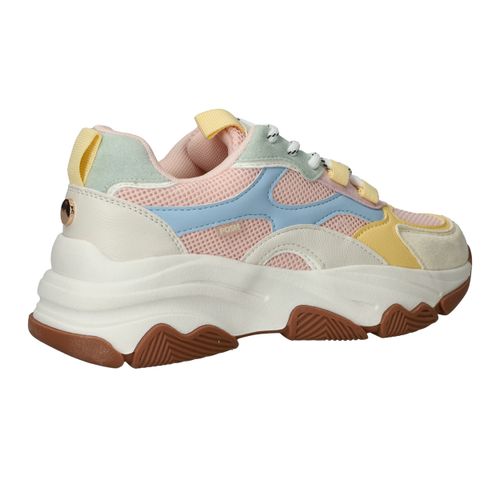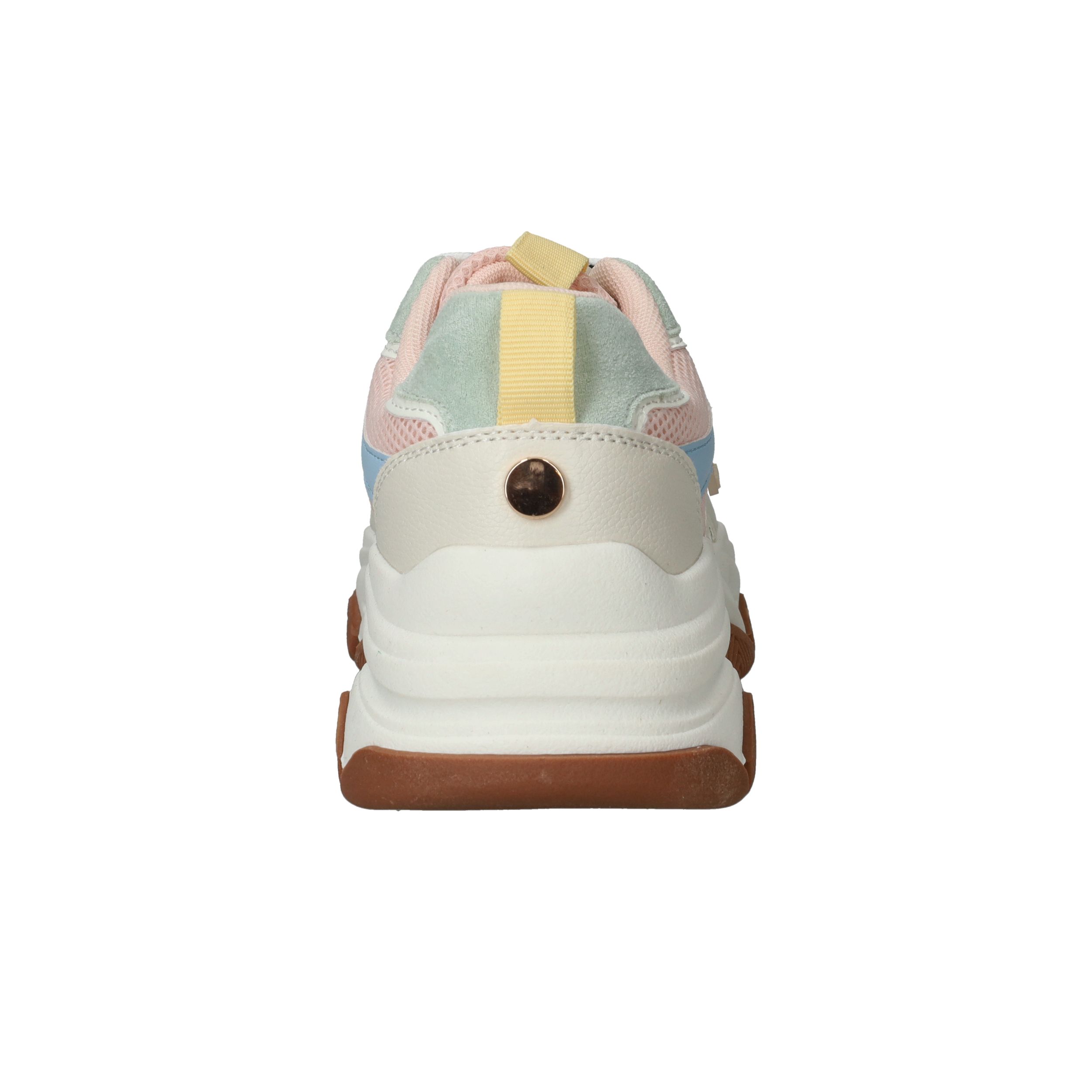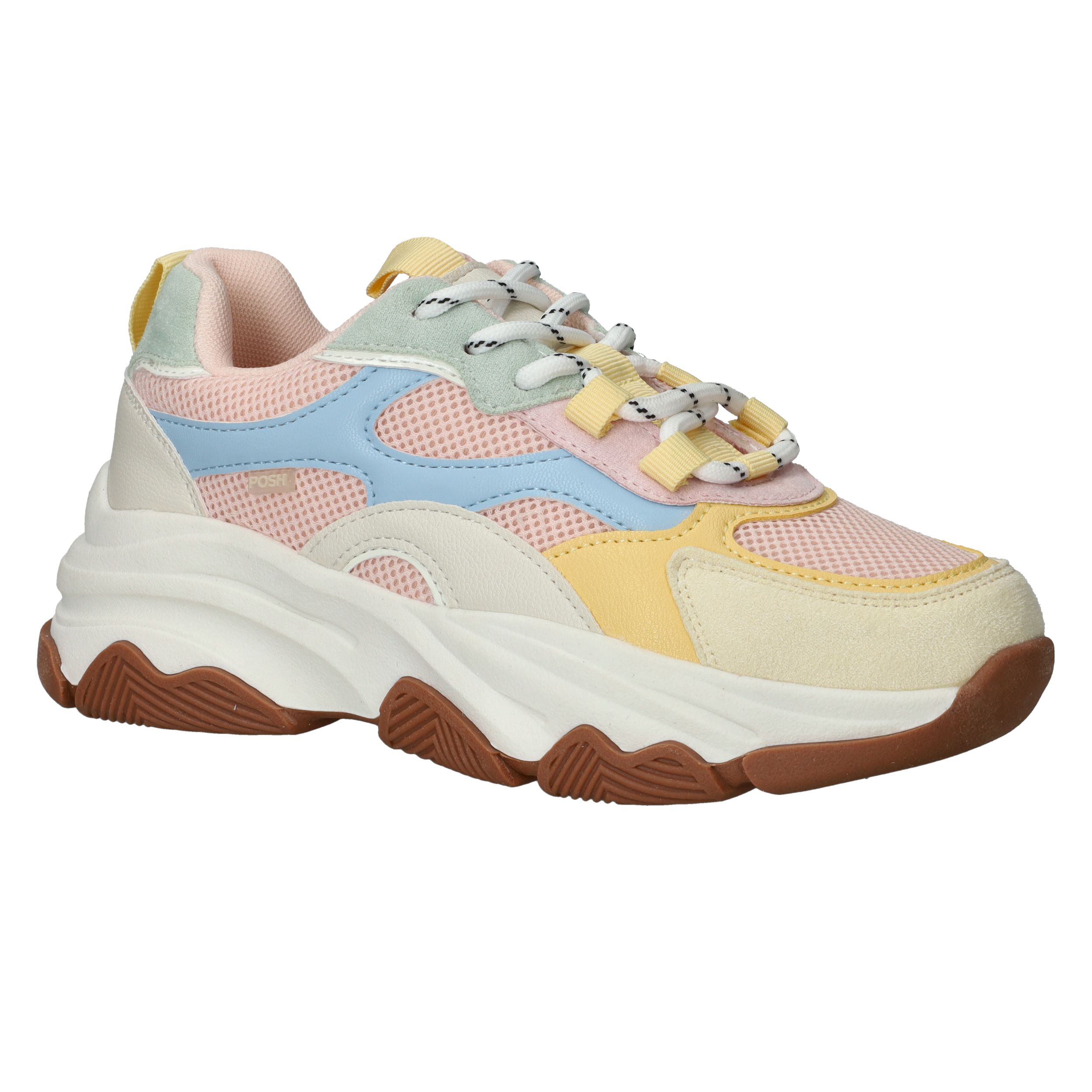 Stap de zon tegemoet met deze opvallende chunky sneaker van Posh by Poelman! De sneaker voor meiden heeft een speelse mix van pastelkleuren zoals zachtroze, mintgroen en zonnig geel.