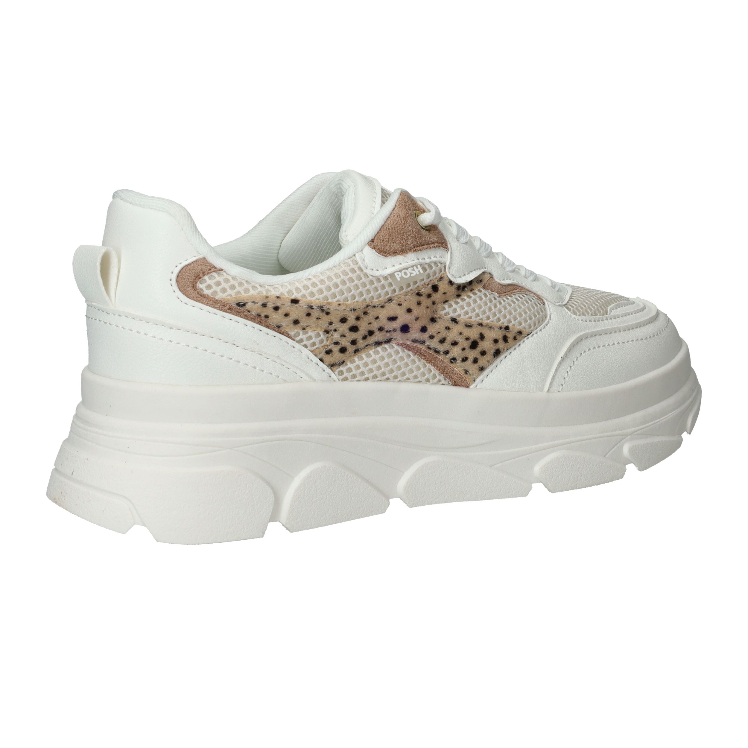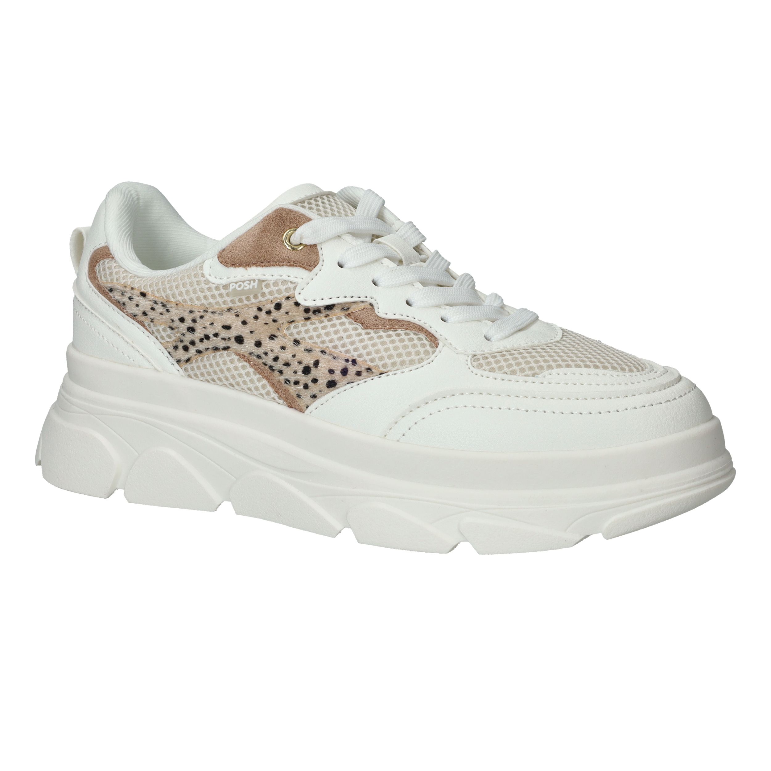 Deze POSH by Poelman sneaker combineer je makkelijk met al je outfits. De beige sneaker is afgewerkt met een dierenprintje en heeft een toffe chunky zool.