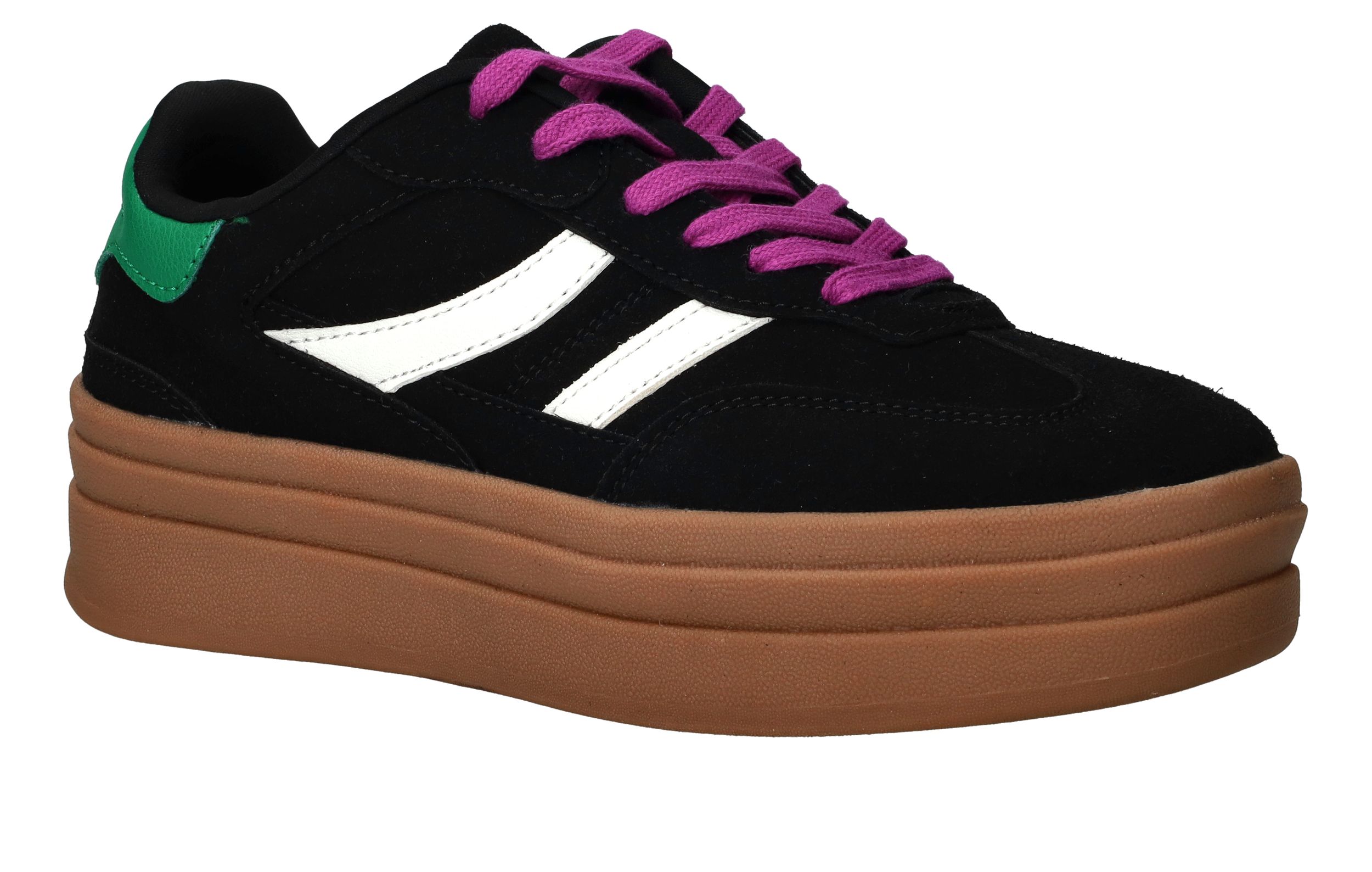 Gave POSH By Poelman sneaker met platformzool! De zwarte damessneaker heeft toffe kleuraccenten en is geschikt om alle seizoenen te dragen.