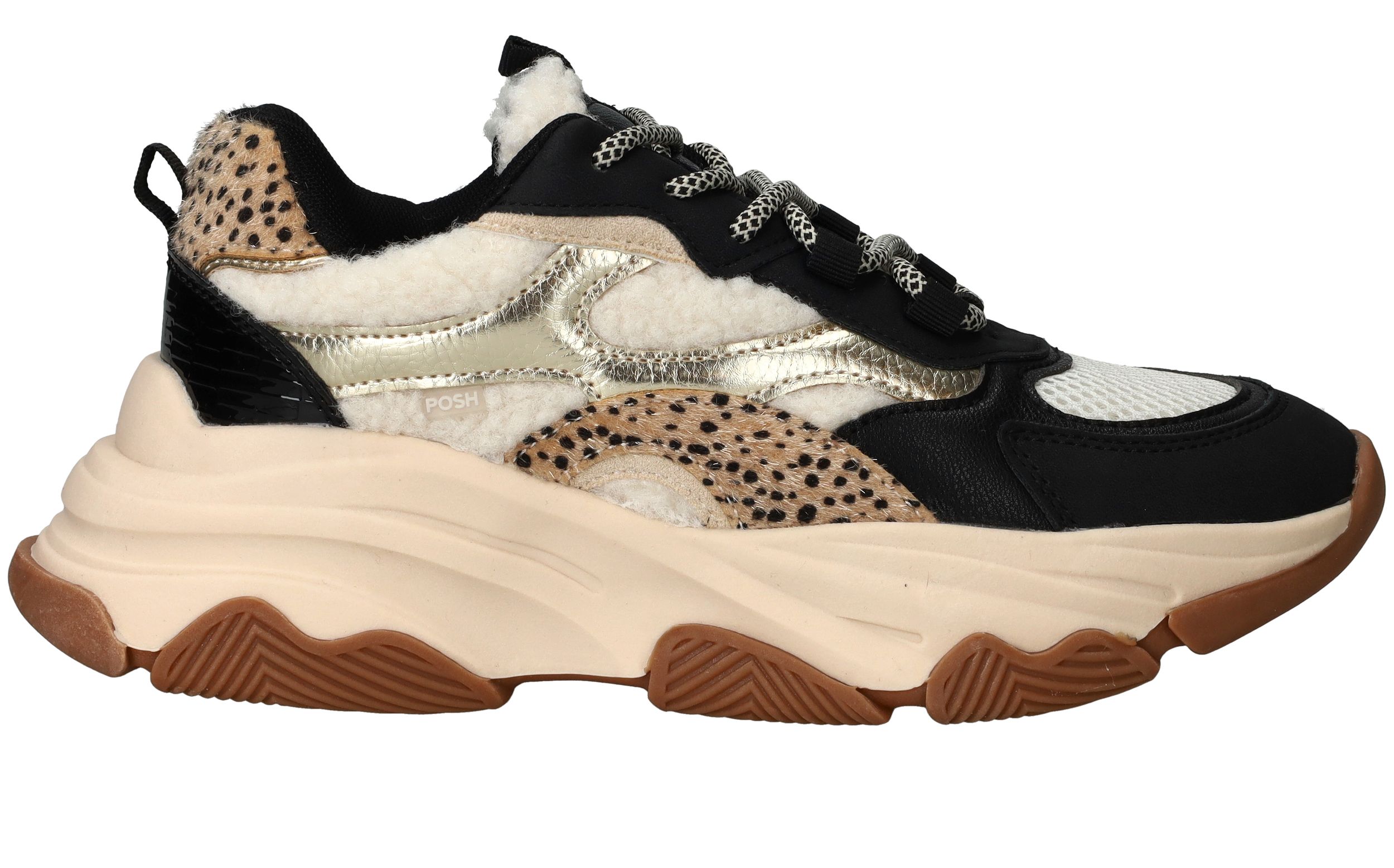 Gave chunky sneaker van het merk POSH By Poelman. Deze zwart met beige damessneaker combineer je makkelijk met al je outfits.