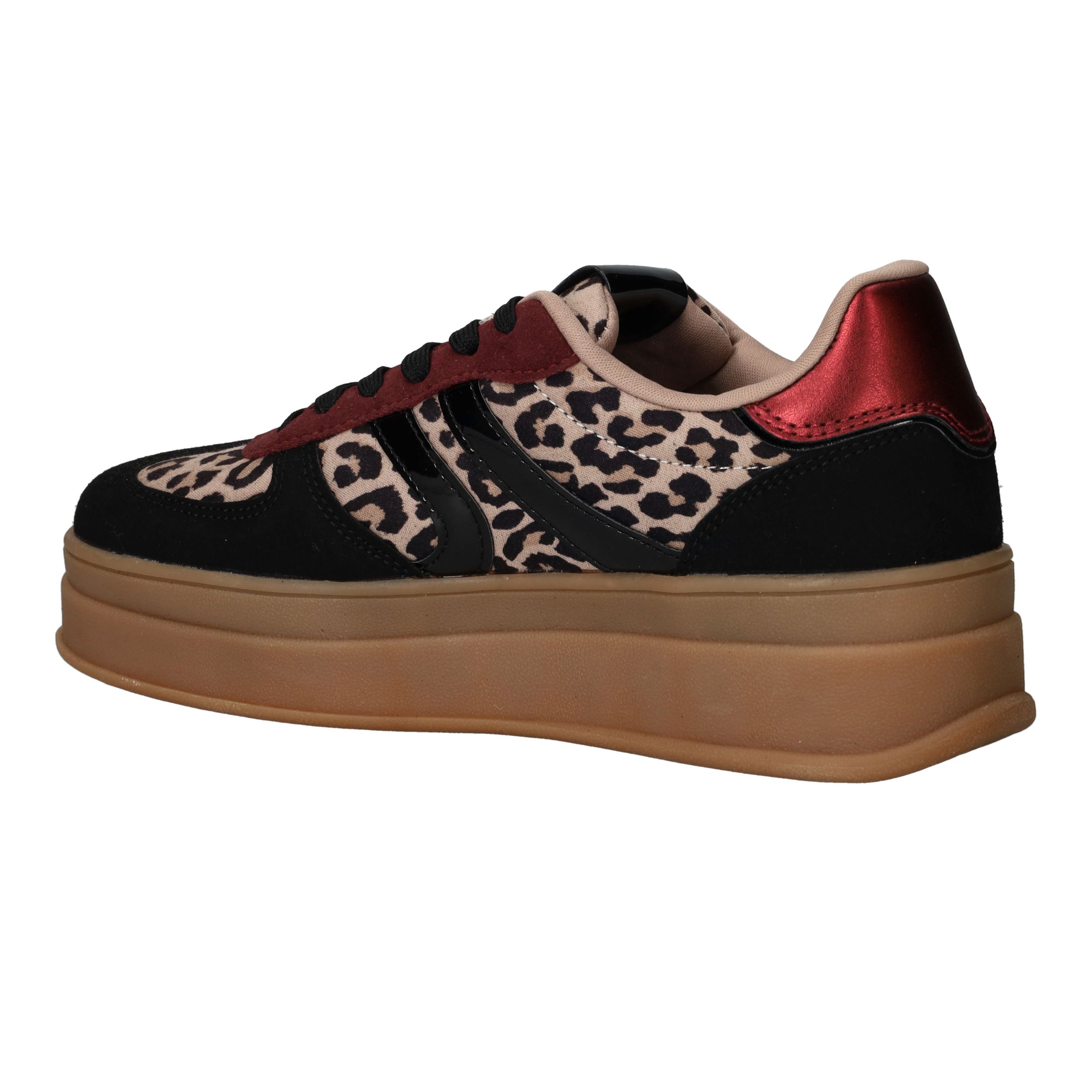 Deze sneaker van POSH by Poelman is een echte eyecatcher dankzij de panterprint, bordeauxrode accenten en de stevige plateauzool. De combinatie van zwart, crème en opvallend dierenprint maakt deze damessneaker niet alleen trendy, maar ook heel comfortabel. Perfect voor vrouwen die durven op te vallen met hun stijl.