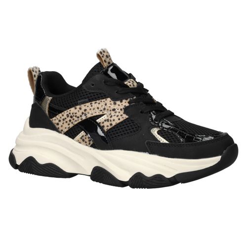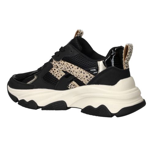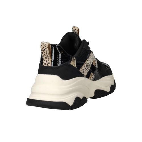 Deze zwarte sneaker van POSH by Poelman is dé blikvanger in je garderobe. Het speelse design met panterdetails en de comfortabele chunky zool maken dit model perfect voor dames die houden van stijl én gemak. Ideaal voor een casual dagje uit of om je outfit een stoere touch te geven.