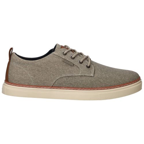 De heren veterschoenen van PS Poelman in een elegante beige kleur ademen een relaxte, maar verzorgde stijl. Deze schoenen, uitgevoerd in canvas, zijn perfect voor een casual look en voelen licht aan de voeten. Ze bieden een prettige, rustige afwikkeling van de voet, wat zorgt voor comfort bij elke stap. Het design is tijdloos en makkelijk te combineren, waardoor deze schoenen snel een vast onderdeel van jouw garderobe zullen worden.- De schoenen sluiten met veters zodat de pasvorm goed aan te passen is aan de voet.