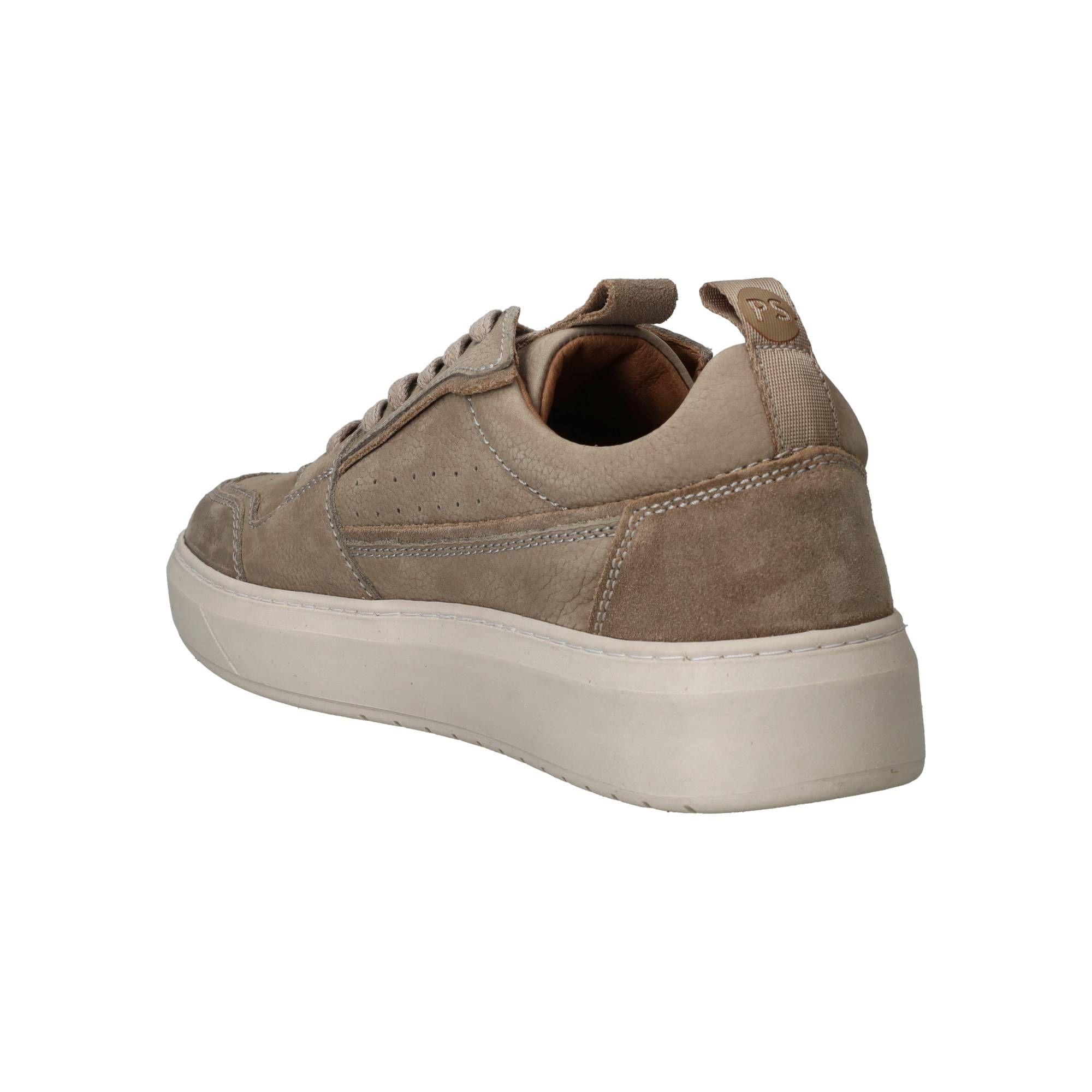 Deze taupekleurige heren sneakers van PS Poelman zijn een fijne aanvulling voor elke dag. De schoenen stralen een moderne, maar toch tijdloze stijl uit met hun rustige taupe tint en zijn gemaakt van soepel leer. Ze sluiten perfect aan bij veel outfits en je voelt direct de prettige pasvorm wanneer je ze aantrekt. De zorgvuldige afwerking zorgt voor een comfortabele drukverdeling, waardoor je voeten de hele dag door ontspannen aanvoelen, of je nu veel loopt of staat.