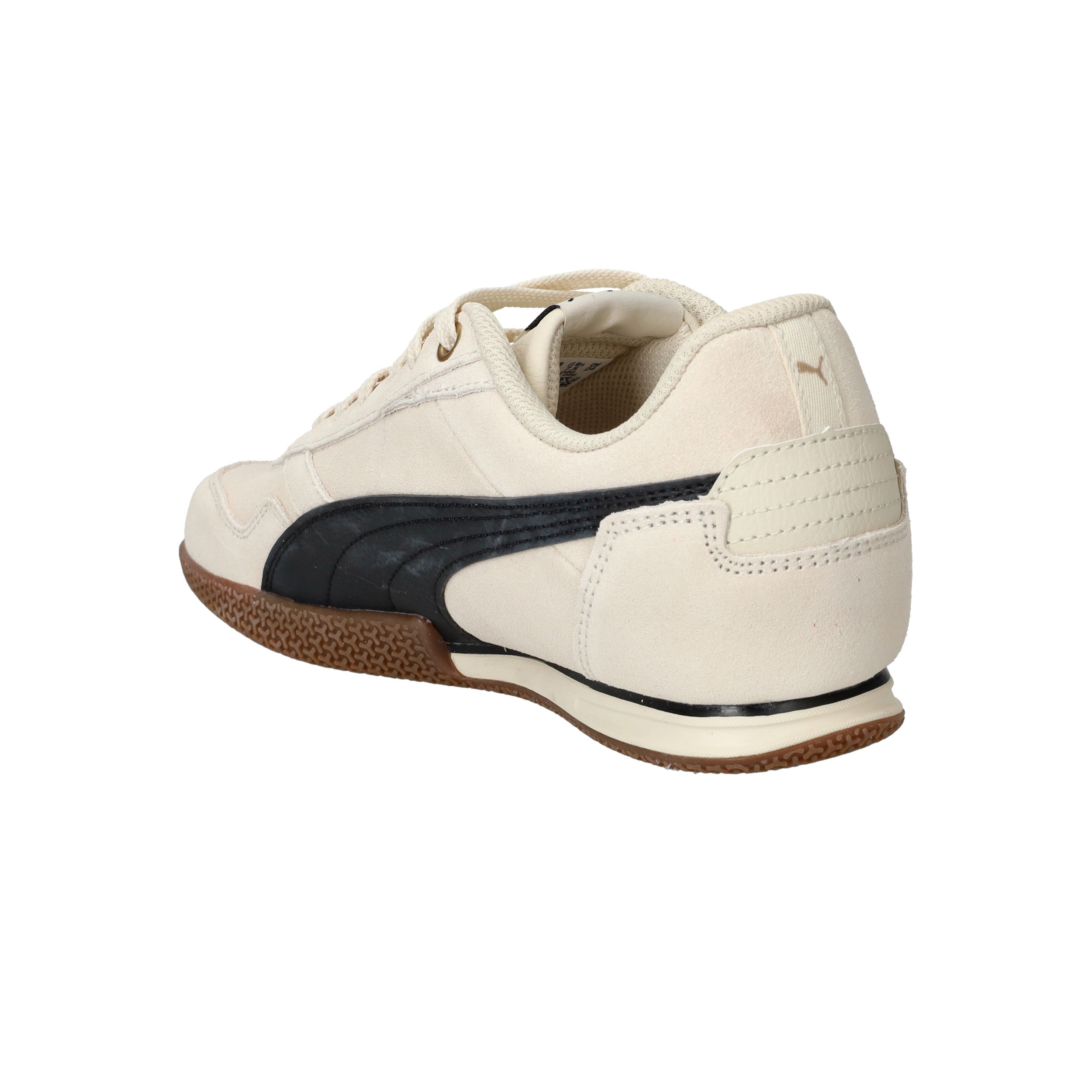 De sneaker Puma Bella Donna SD is een stijlvolle knipoog naar retro sportswear, maar met een moderne twist. Deze damessneaker combineert een beige bovenwerk van suède met een stoer zwart detail van kunstleer. De comfortabele Puma voering van textiel zorgt voor een prettige pasvorm en maakt deze sneaker perfect voor dagelijks gebruik.