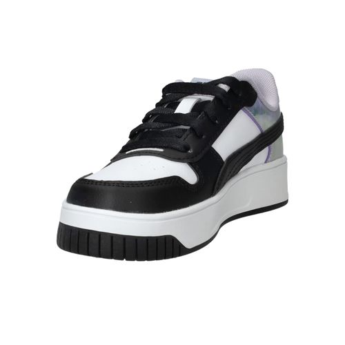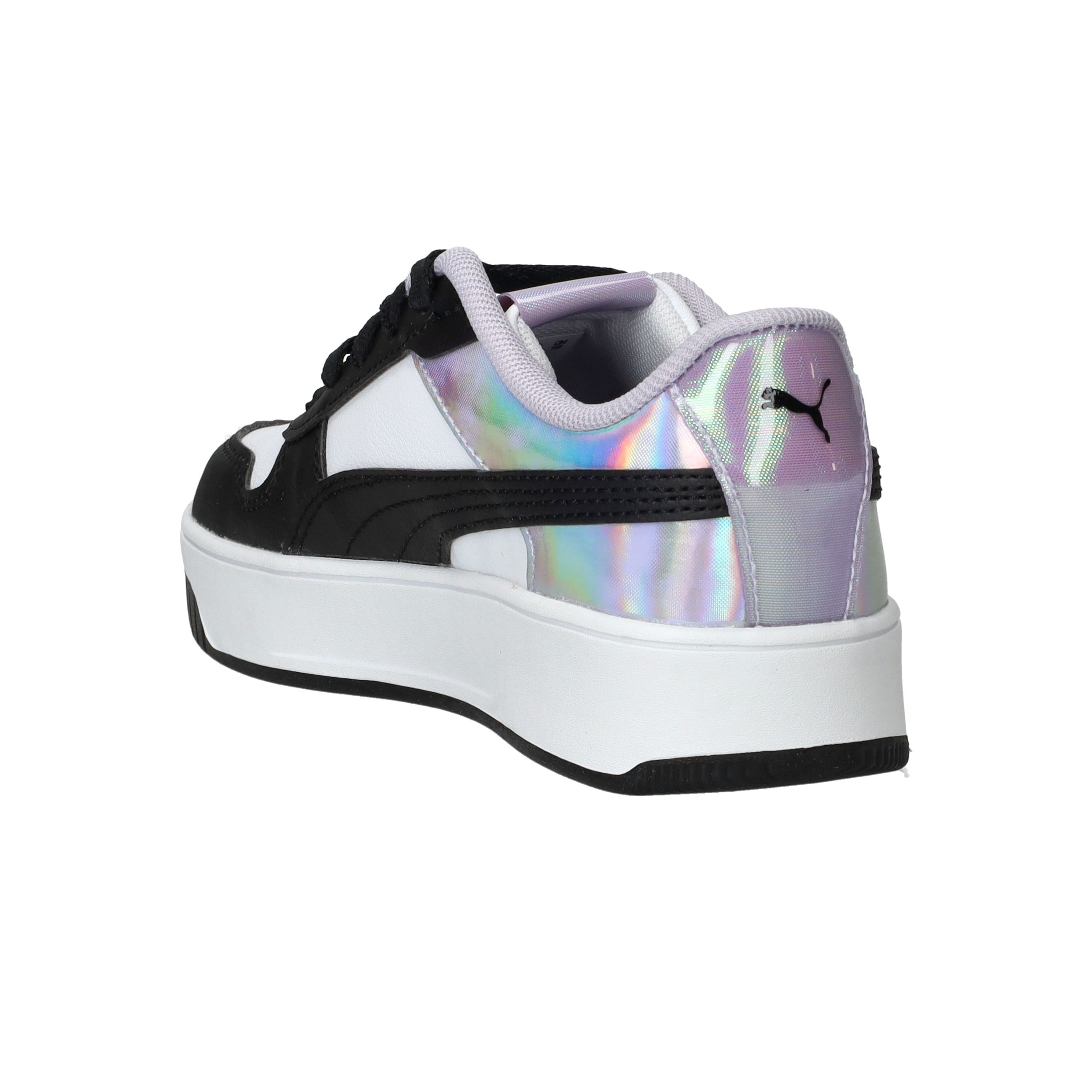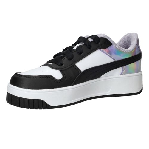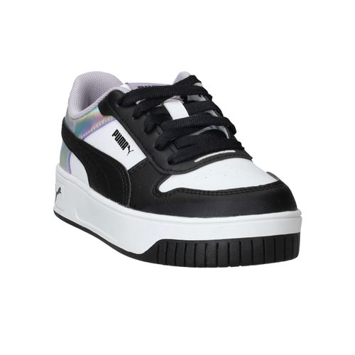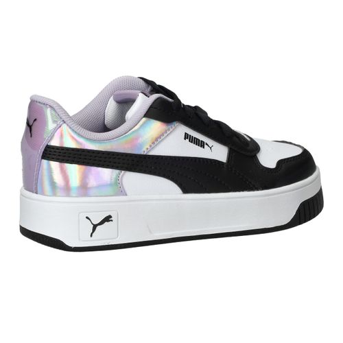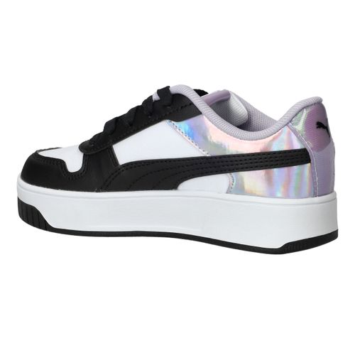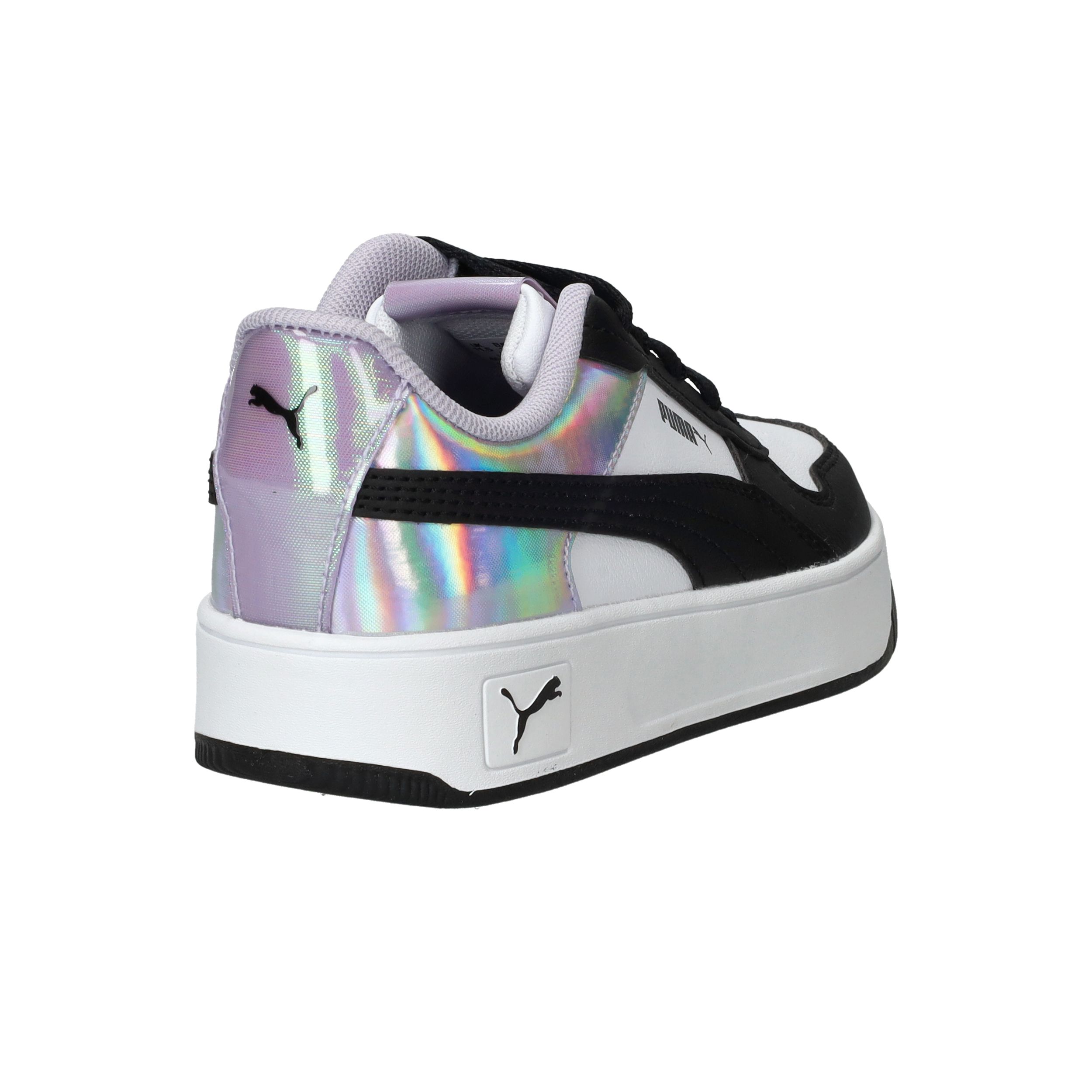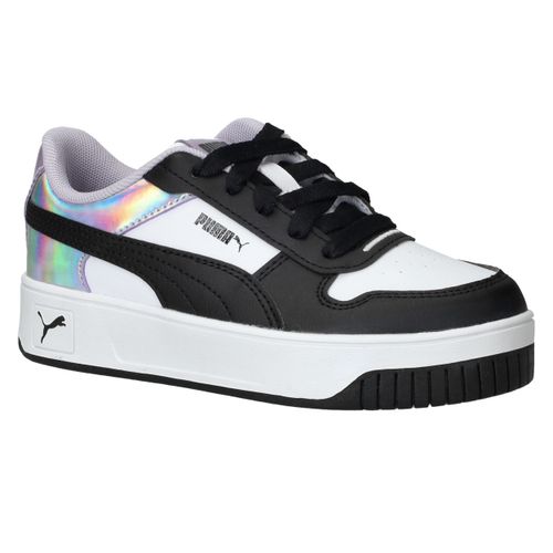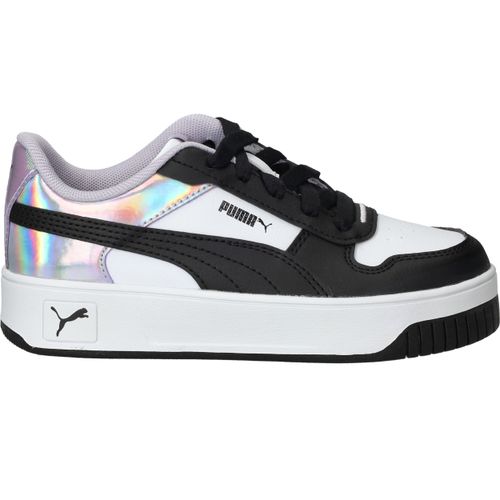 De sneakers van Puma combineren een stoere look met een futuristische twist dankzij de metallic details op het kunstleer. Deze meisjessneakers in zwart en wit zijn comfortabel en lichtgewicht, ideaal voor schooldagen of speelplezier. De zachte textielen voering zorgt voor een fijn draaggevoel de hele dag.