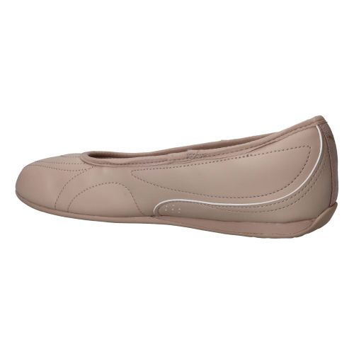 De Puma Catch Soleil Topcat ballerina's in een zachte roze tint zijn een heerlijke keuze voor dames ballerina's. Deze schoenen van Puma zijn niet alleen mooi om te zien, maar bieden ook een fijn gevoel aan de voeten gedurende de dag. Ze omhelzen je voeten en voelen licht aan, waardoor je bijna vergeet dat je schoenen draagt. De subtiele vormgeving en de mooie kleur maken ze gemakkelijk te combineren met verschillende outfits, van een zomerse jurk tot een nette broek. De pasvorm zorgt voor een gelijkmatige drukverdeling, wat bijdraagt aan een ontspannen loopgevoel. Het kunstleer vormt zich prettig naar de voet, en de zachte voering geeft extra comfort.- Deze instappers hebben geen sluiting, waardoor je er zo instapt en ze heerlijk licht aanvoelen.