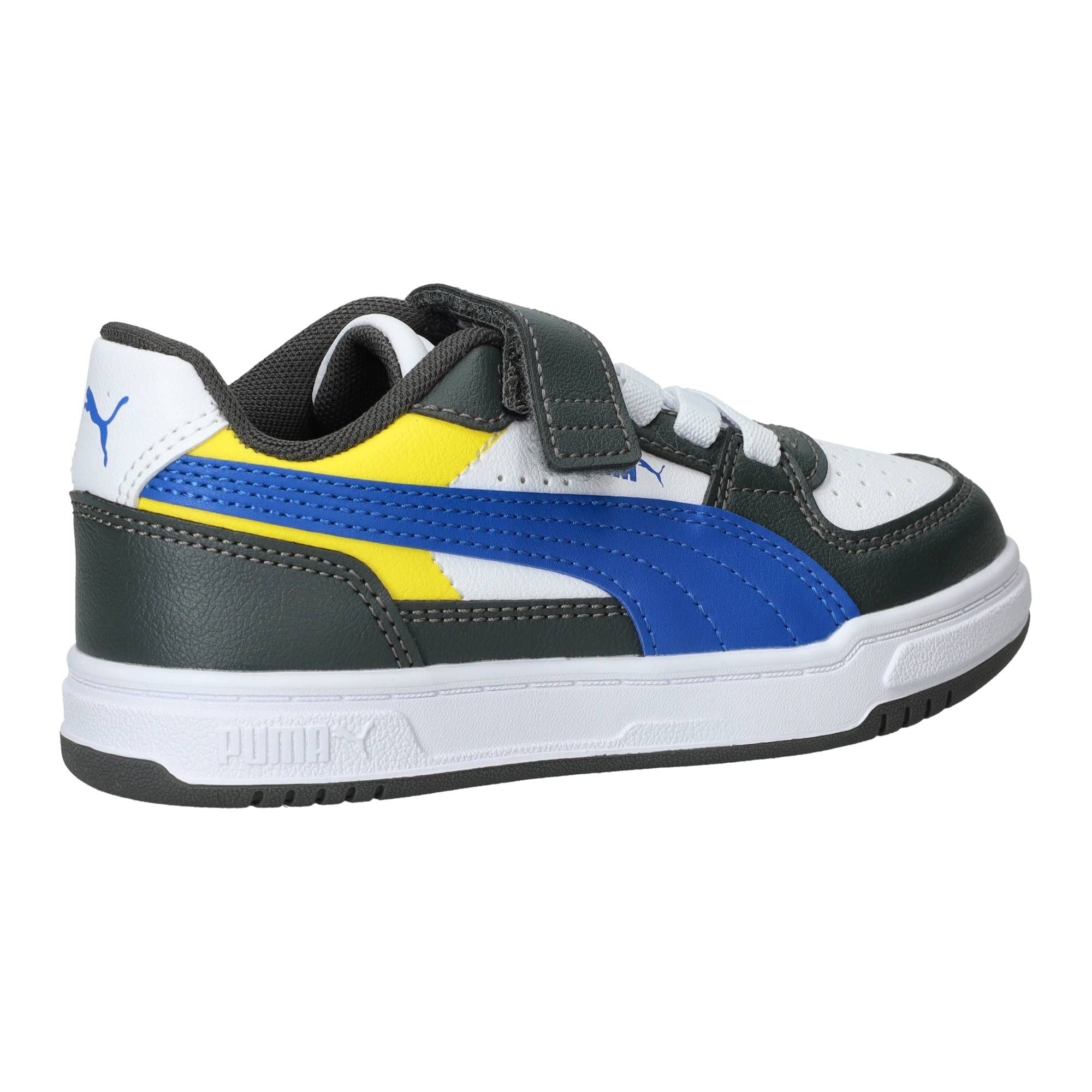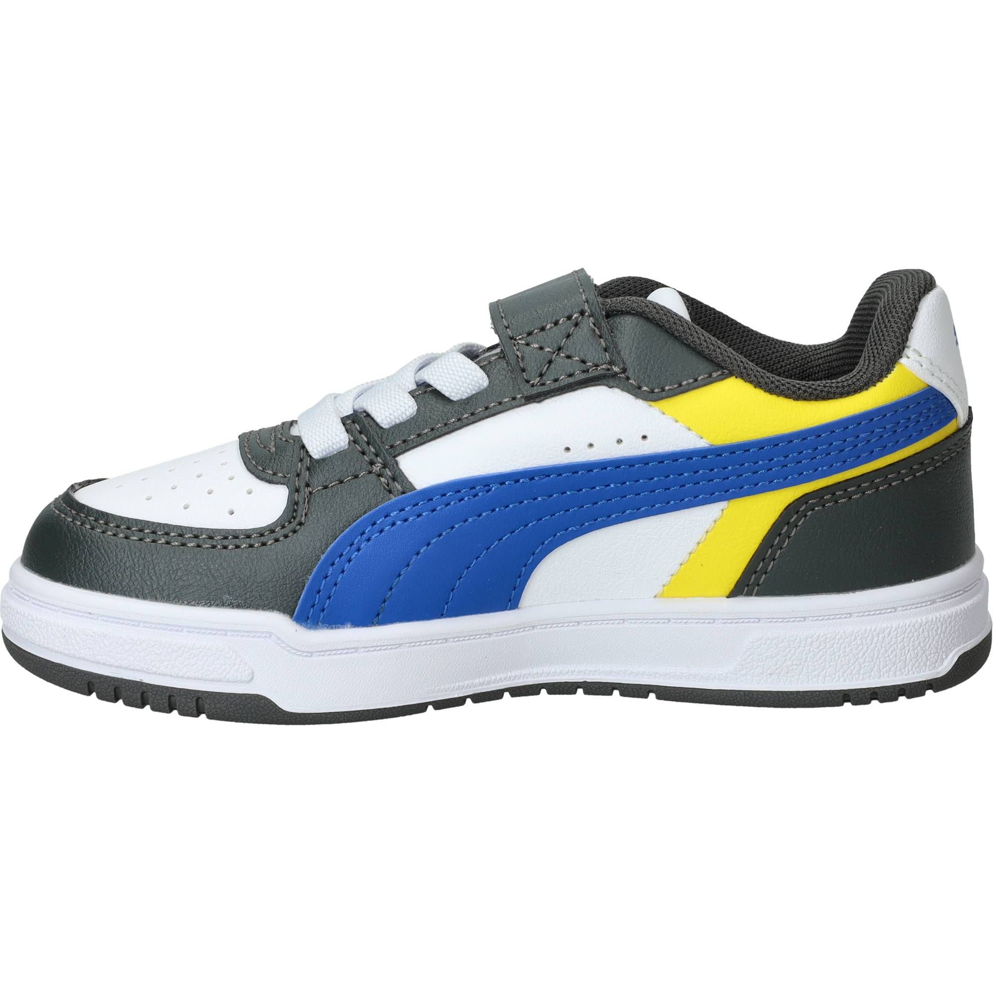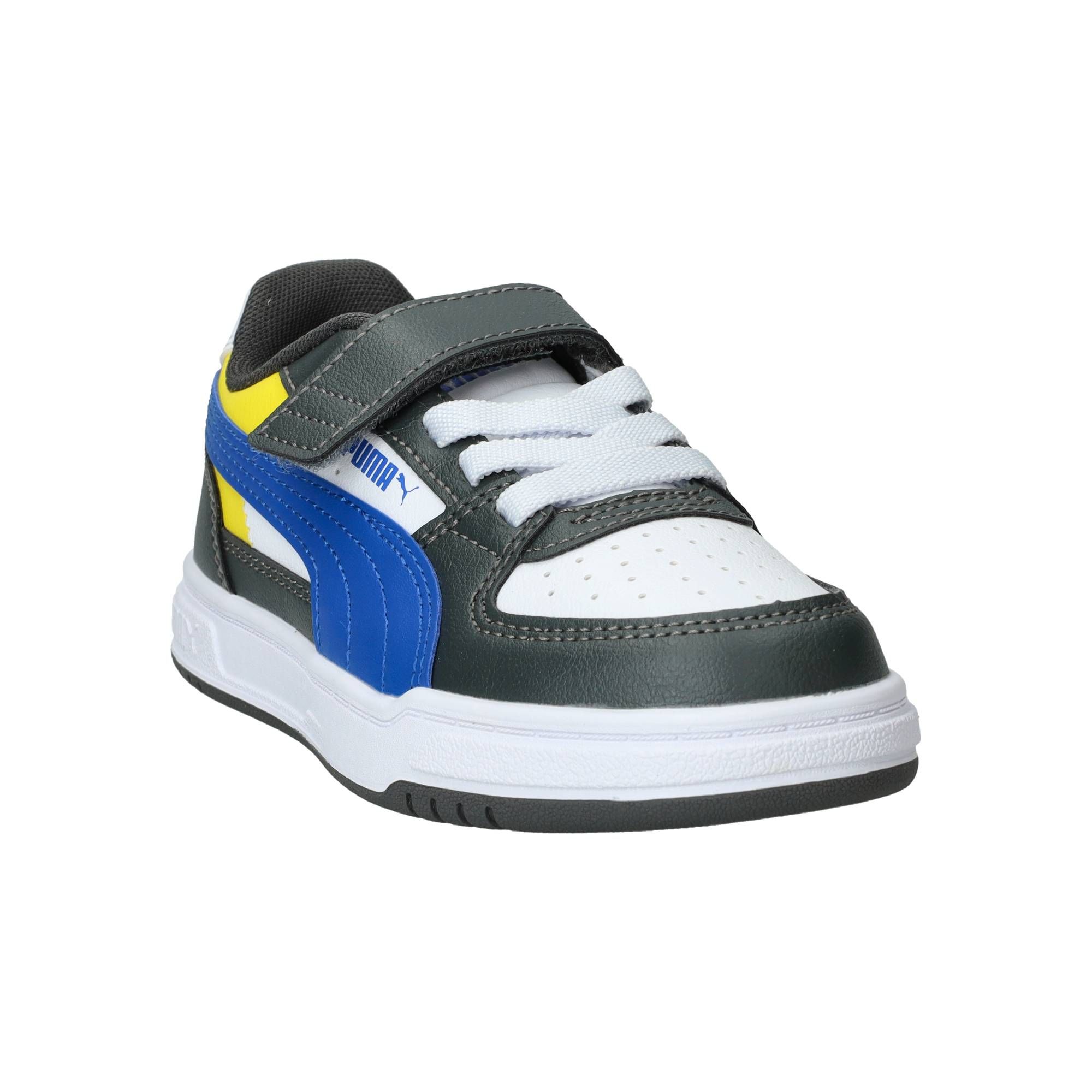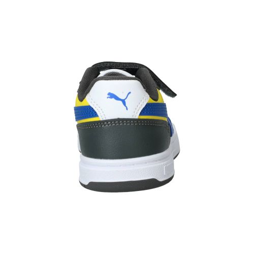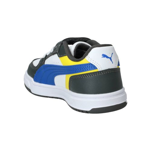 De jongens sneakers van Puma, de Caven III Block, stralen een sportieve energie uit met hun opvallende multi-kleurige design. Deze schoen combineert verschillende tinten en vlakken, wat hem een frisse en moderne uitstraling geeft. Het is een stevige, maar toch soepele schoen die comfortabel aanvoelt, of je nu rent, speelt of gewoon staat. Ze bieden een fijne demping, waardoor de impact van elke stap netjes wordt opgevangen en je voeten minder snel vermoeid raken.- De klittenbandsluiting zorgt ervoor dat de schoen makkelijk aan en uit te trekken is en je de pasvorm eenvoudig kunt aanpassen, zodat de schoen altijd stevig om de voet zit.