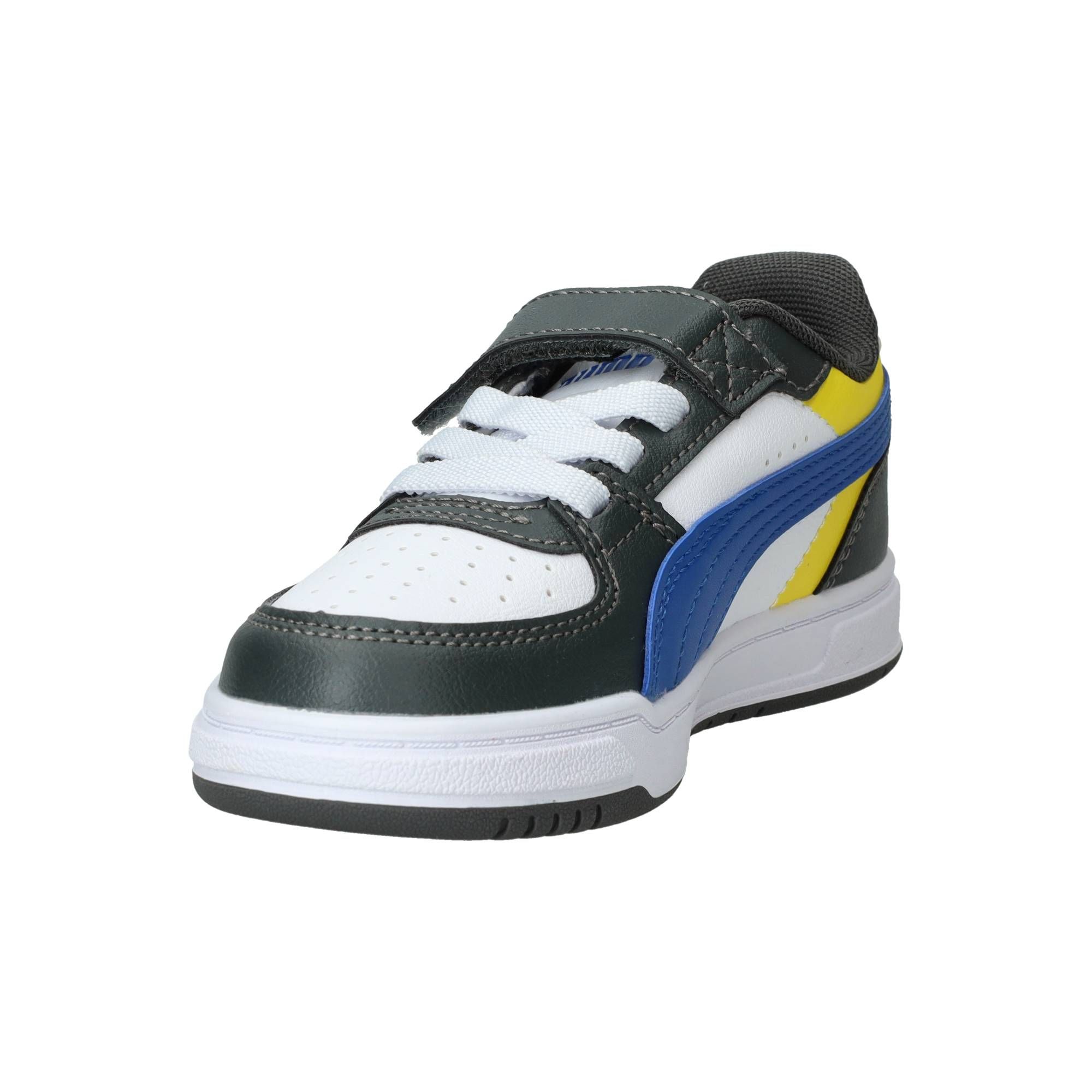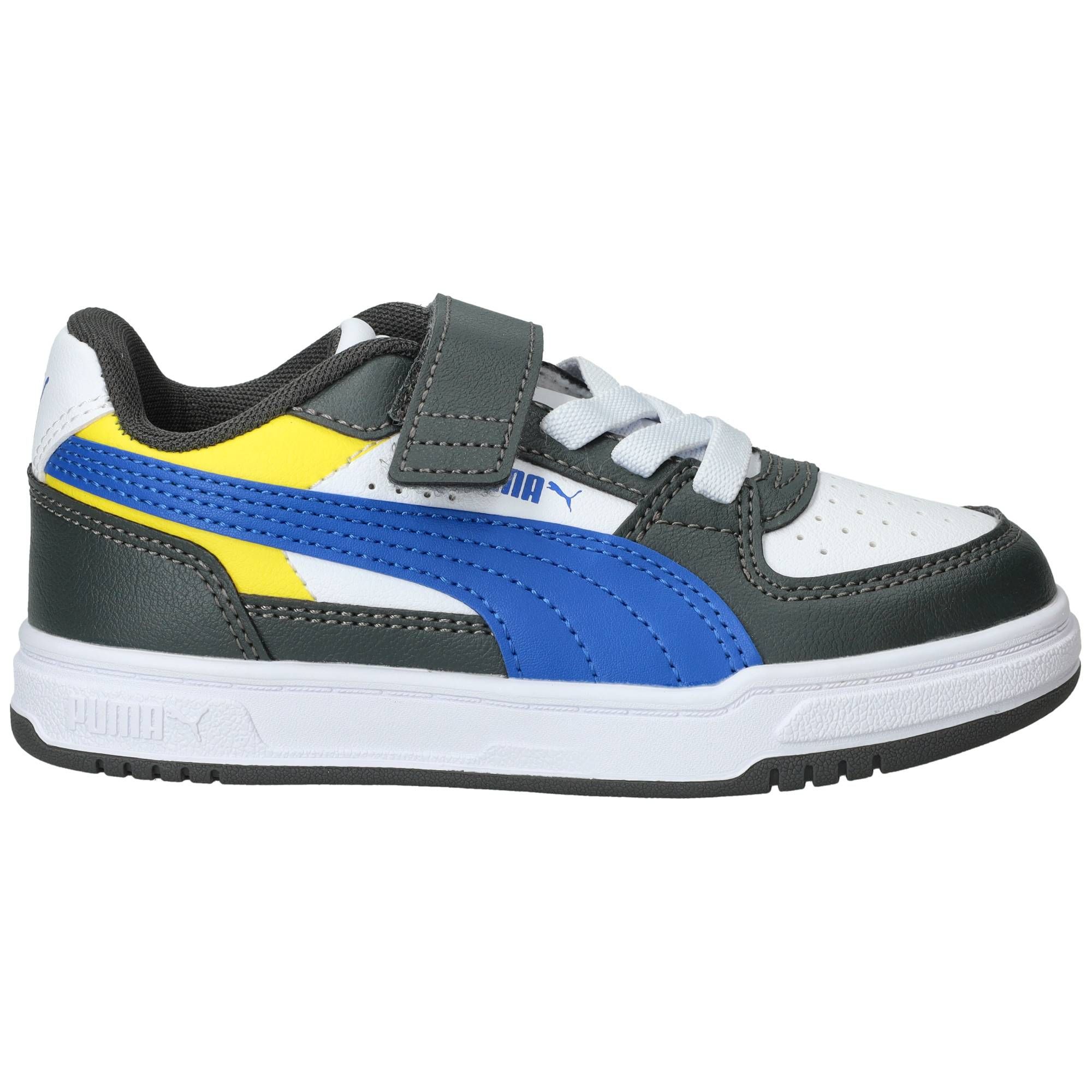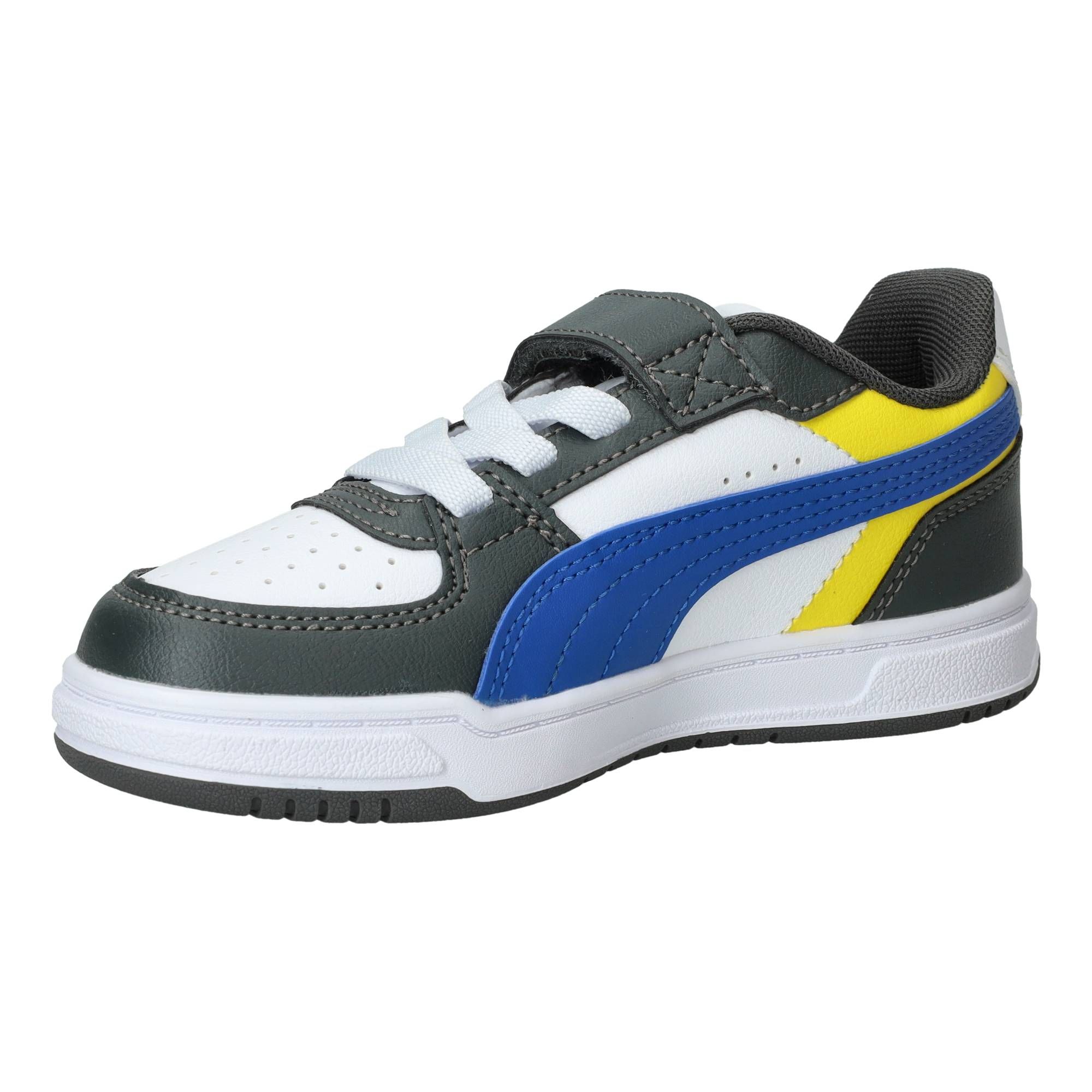 De jongens sneakers van Puma, de Caven III Block, stralen een sportieve energie uit met hun opvallende multi-kleurige design. Deze schoen combineert verschillende tinten en vlakken, wat hem een frisse en moderne uitstraling geeft. Het is een stevige, maar toch soepele schoen die comfortabel aanvoelt, of je nu rent, speelt of gewoon staat. Ze bieden een fijne demping, waardoor de impact van elke stap netjes wordt opgevangen en je voeten minder snel vermoeid raken.- De klittenbandsluiting zorgt ervoor dat de schoen makkelijk aan en uit te trekken is en je de pasvorm eenvoudig kunt aanpassen, zodat de schoen altijd stevig om de voet zit.