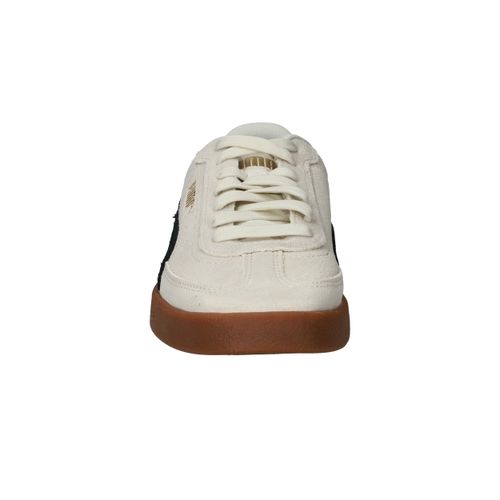 - Gemaakt van hoogwaardig beige suède met contrasterende zwarte details voor een subtiele retrolook.