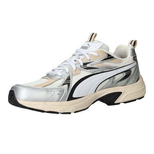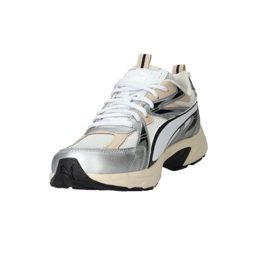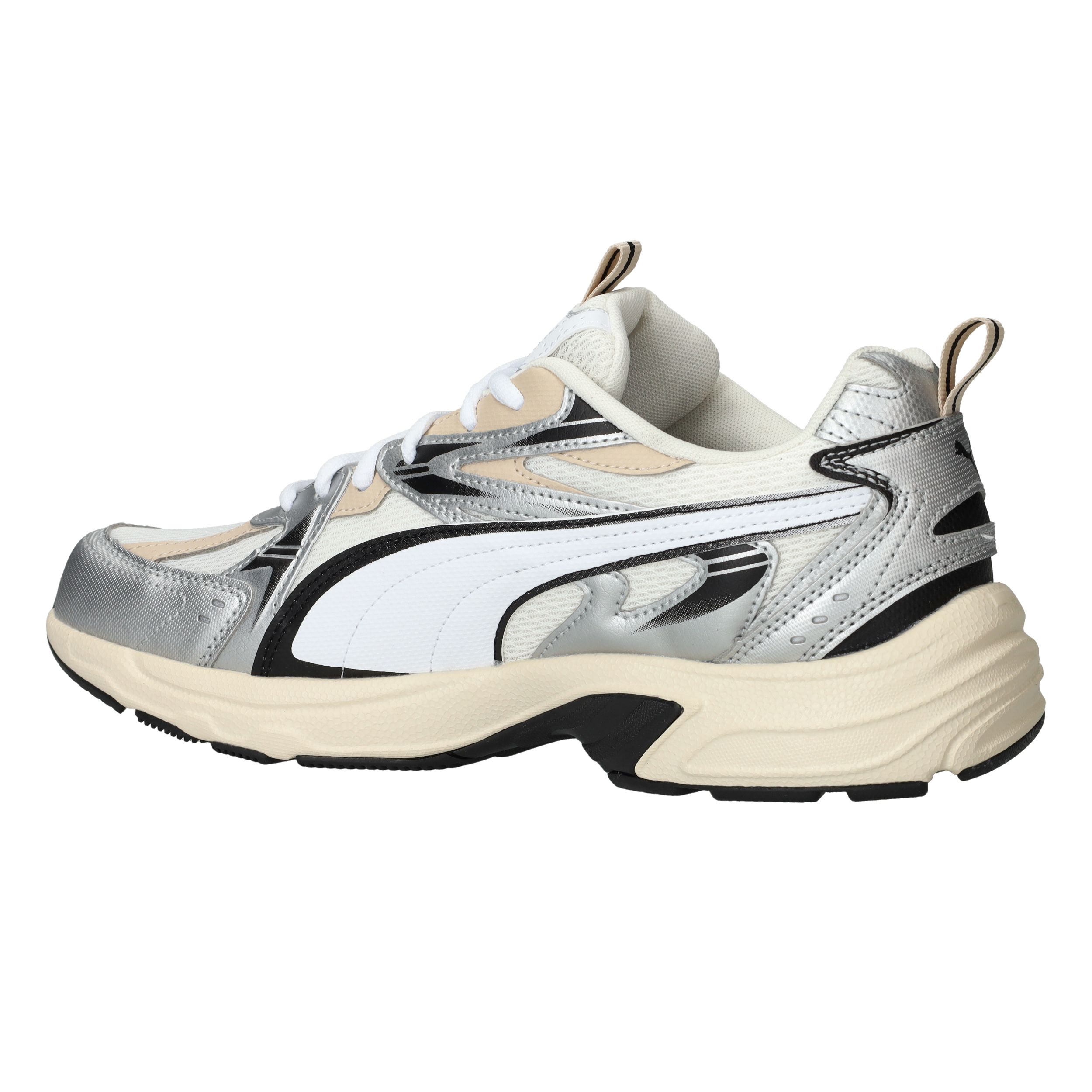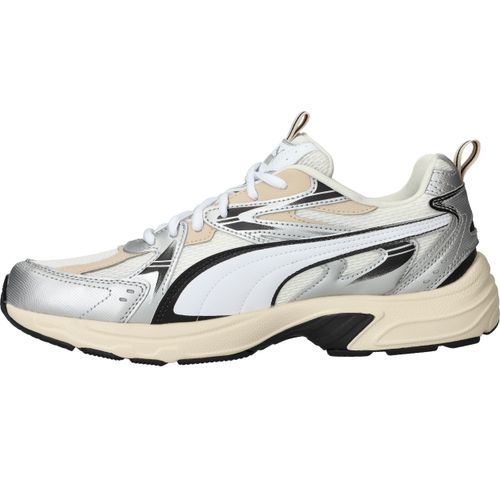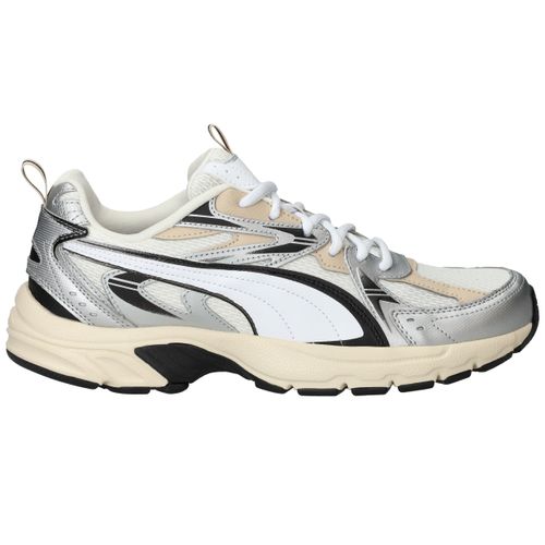 Met de sneaker Puma Milenio Tech kies je voor een sportieve en futuristische uitstraling in één. Deze Puma herensneaker combineert zilver, zwart en beige in een opvallend design. Dankzij het lichte bovenwerk van textiel en synthetisch materiaal en de comfortabele pasvorm is dit model ideaal voor dagelijks gebruik. De zachte textielen voering zorgt voor ademend draagcomfort bij elke stap.