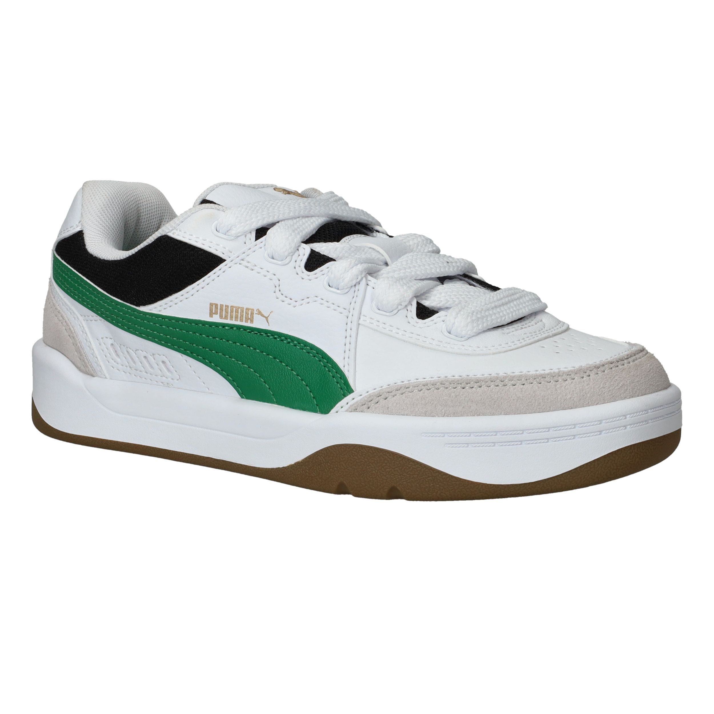 De Puma Park Lifestyle SK8 sneakers zijn perfect voor jongens die houden van sportieve schoenen met een frisse look. De combinatie van wit en groen geeft deze sneaker een stoere uitstraling, terwijl het gebruik van leer en kunstleer zorgt voor stevigheid en comfort. De zachte textielen voering en normale voetbreedte G maken deze sneaker geschikt voor elke dag.