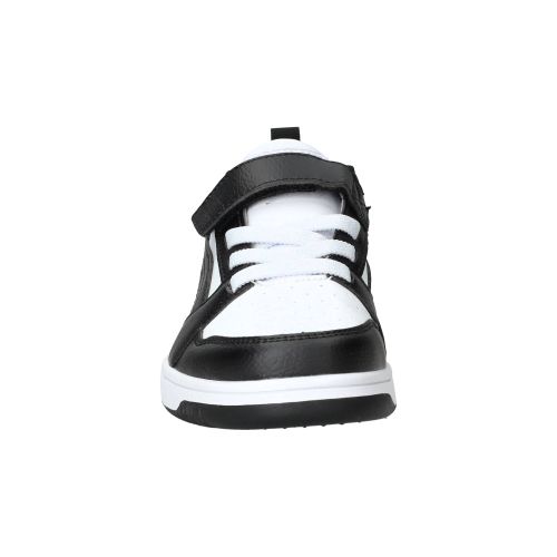 De Puma Rebound V6 Lo sneakers voor jongens zijn een stijlvolle en comfortabele keuze voor elke dag. Deze schoen, van het bekende merk Puma, heeft een stoere zwarte kleur met witte accenten, waardoor hij gemakkelijk te combineren is met verschillende outfits. Het design is geïnspireerd op klassieke basketbalschoenen, wat je terugziet in de robuuste uitstraling en de stevige bouw. Het bovenwerk van kunstleer is duurzaam en eenvoudig te onderhouden. Tijdens het dragen ervaar je een prettige demping die zorgt voor een zachte landing, wat bijdraagt aan het comfort gedurende de hele dag. De vetersluiting maakt het mogelijk om de schoen perfect aan jouw voet aan te passen, zodat je altijd een stevige en comfortabele pasvorm hebt. De textielen voering zorgt voor een aangenaam gevoel aan de binnenkant. Deze sneakers zijn ideaal voor een actieve dag, of je nu naar school gaat, speelt met vrienden of een uitje hebt.