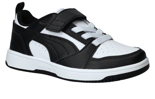 De Puma Rebound V6 Lo sneaker is een stoere en comfortabele jongenssneaker in het zwart met wit. Deze kleurcombinatie zorgt ervoor dat hij makkelijk door te dragen is in alle seizoenen en perfect staat onder een stoere jeans!