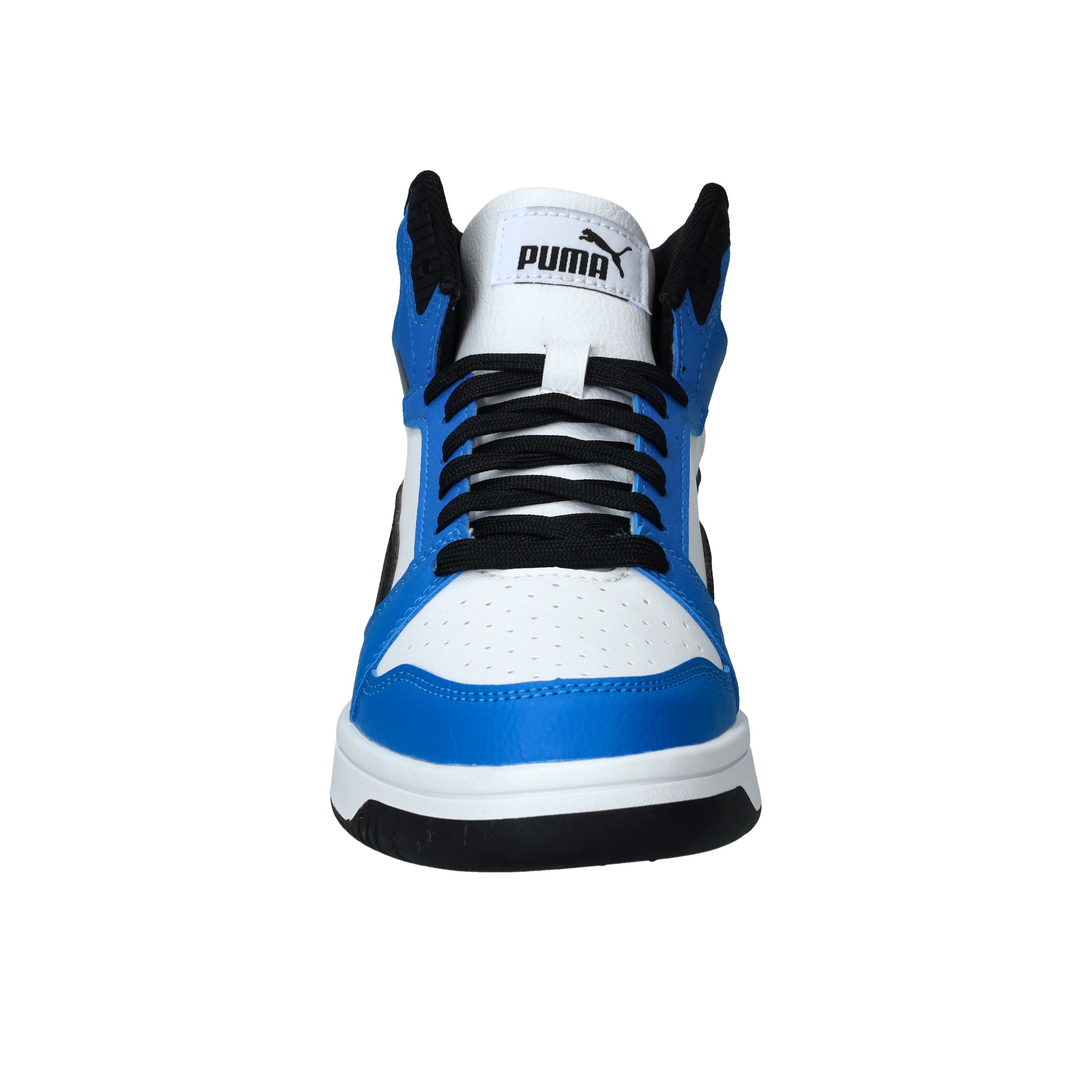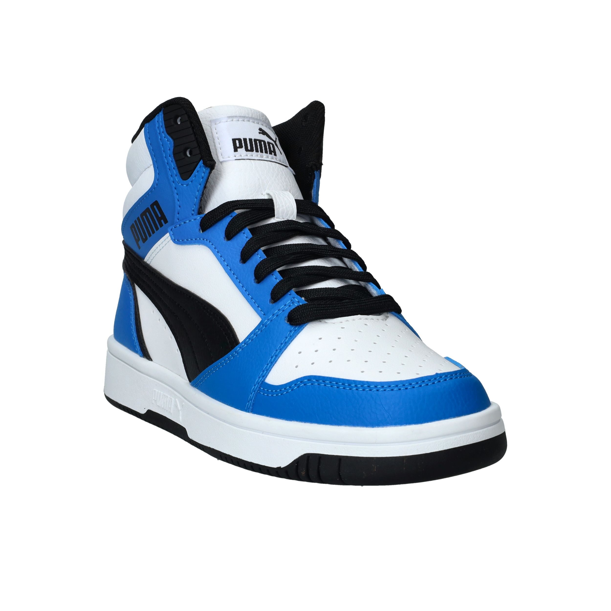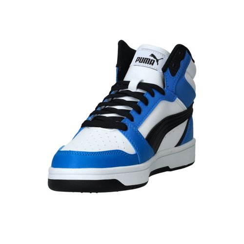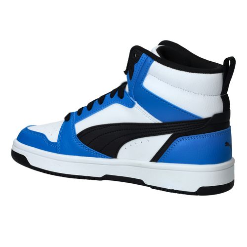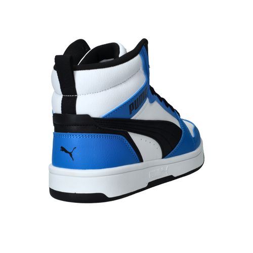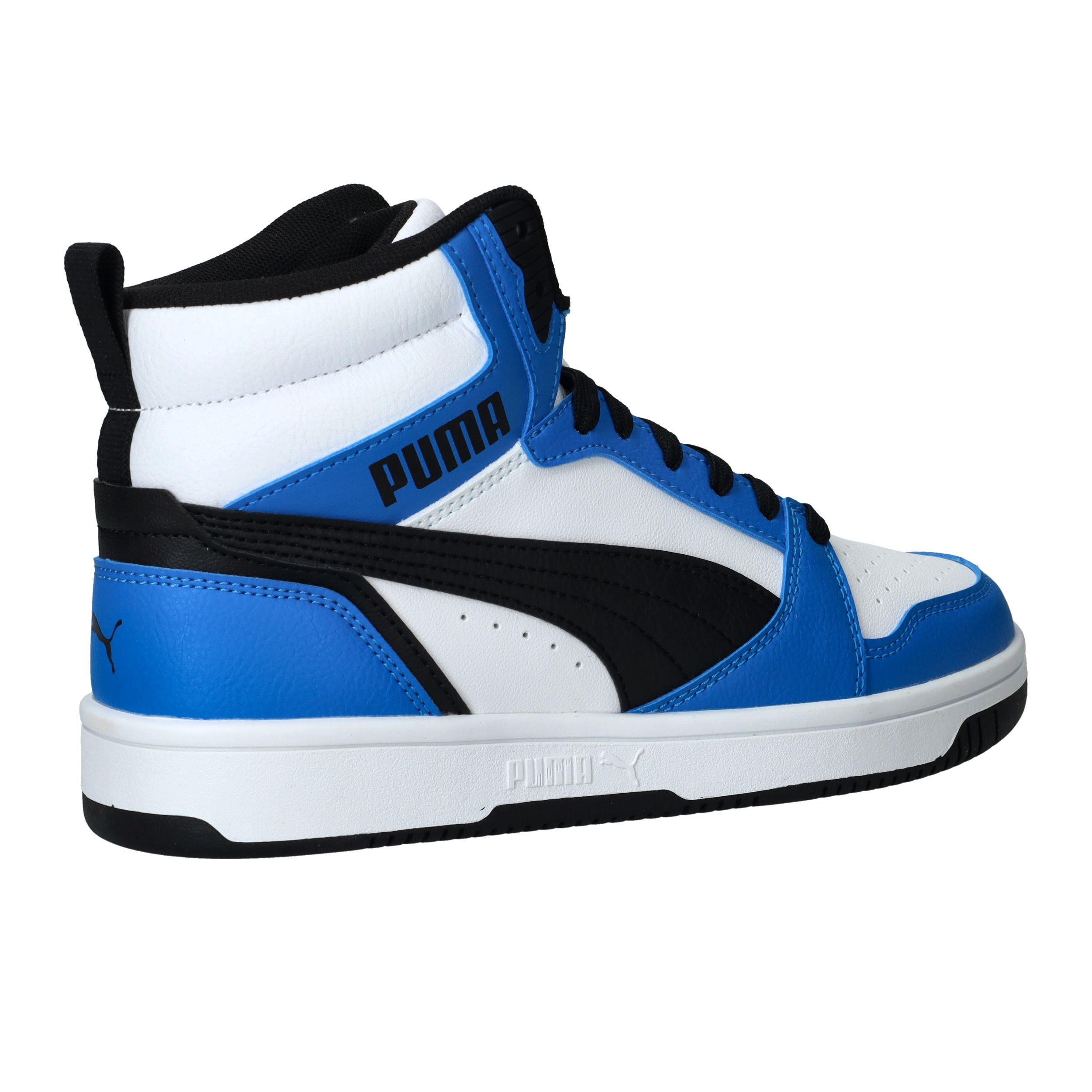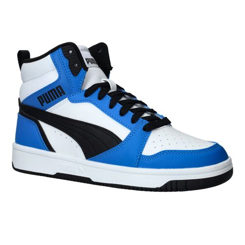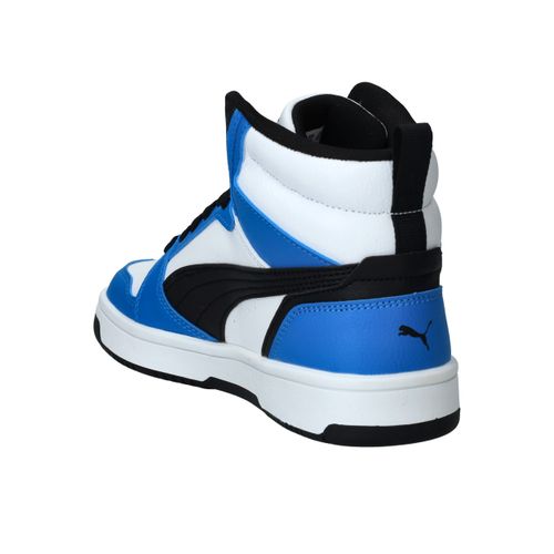 De Puma Rebound V6 Mid is een stoere sneaker met het uiterlijk van een echte basketbalschoen. Deze sneaker in zwart, wit en blauw biedt zowel stijl als ondersteuning. Perfect voor school, sport of vrije tijd!