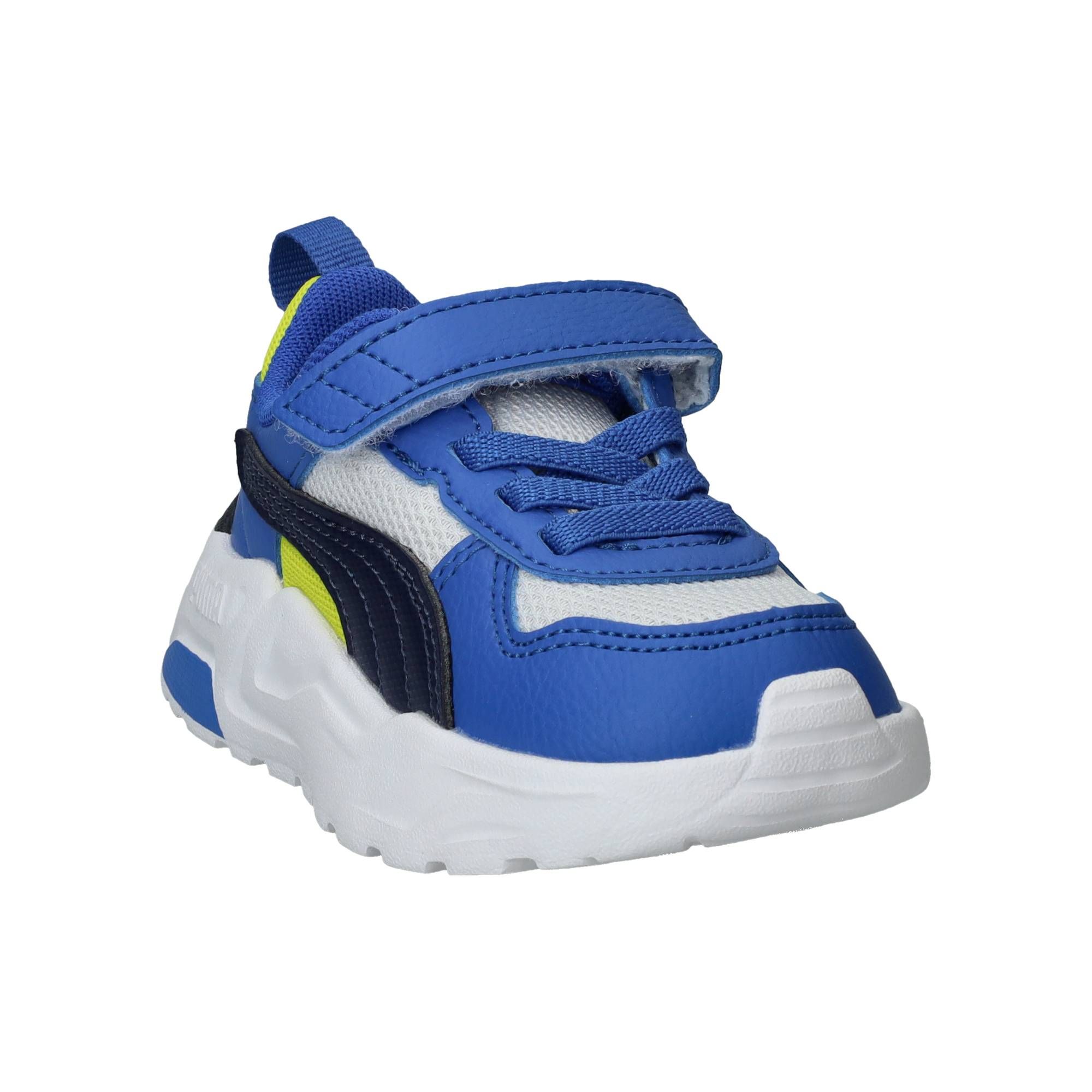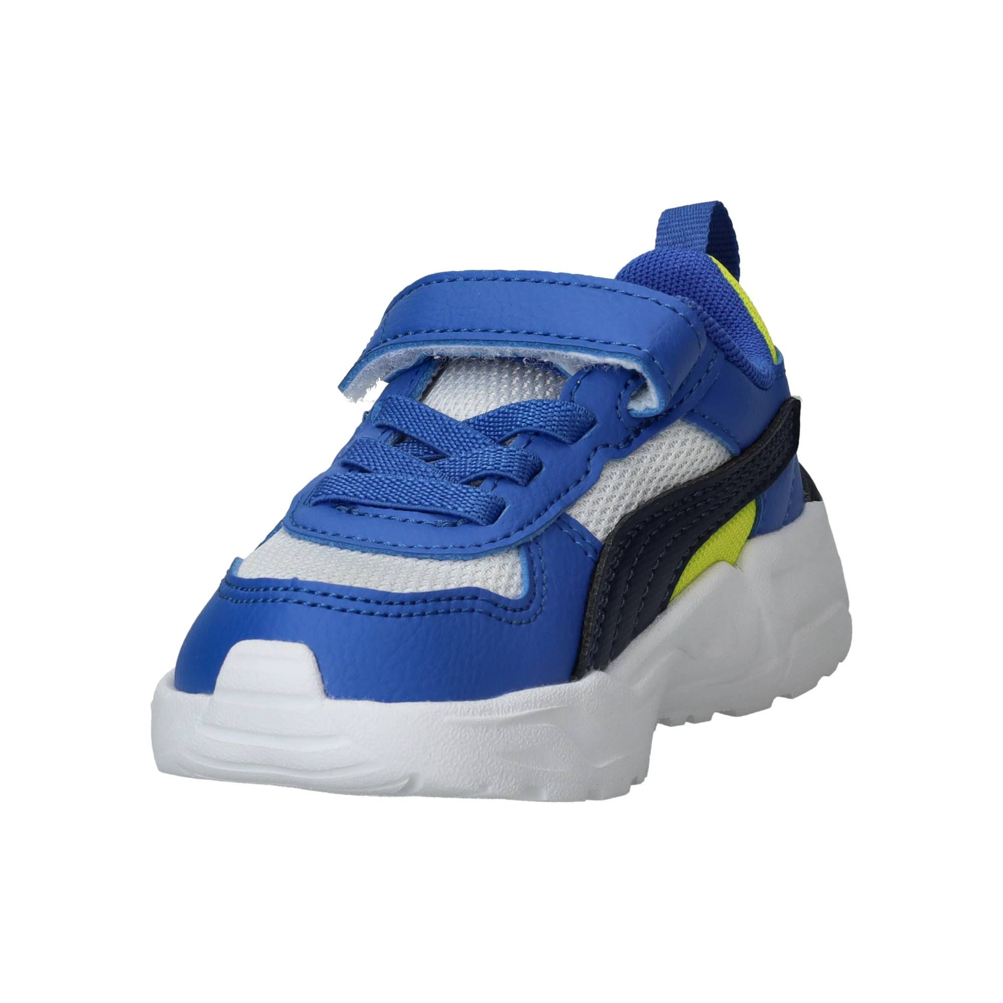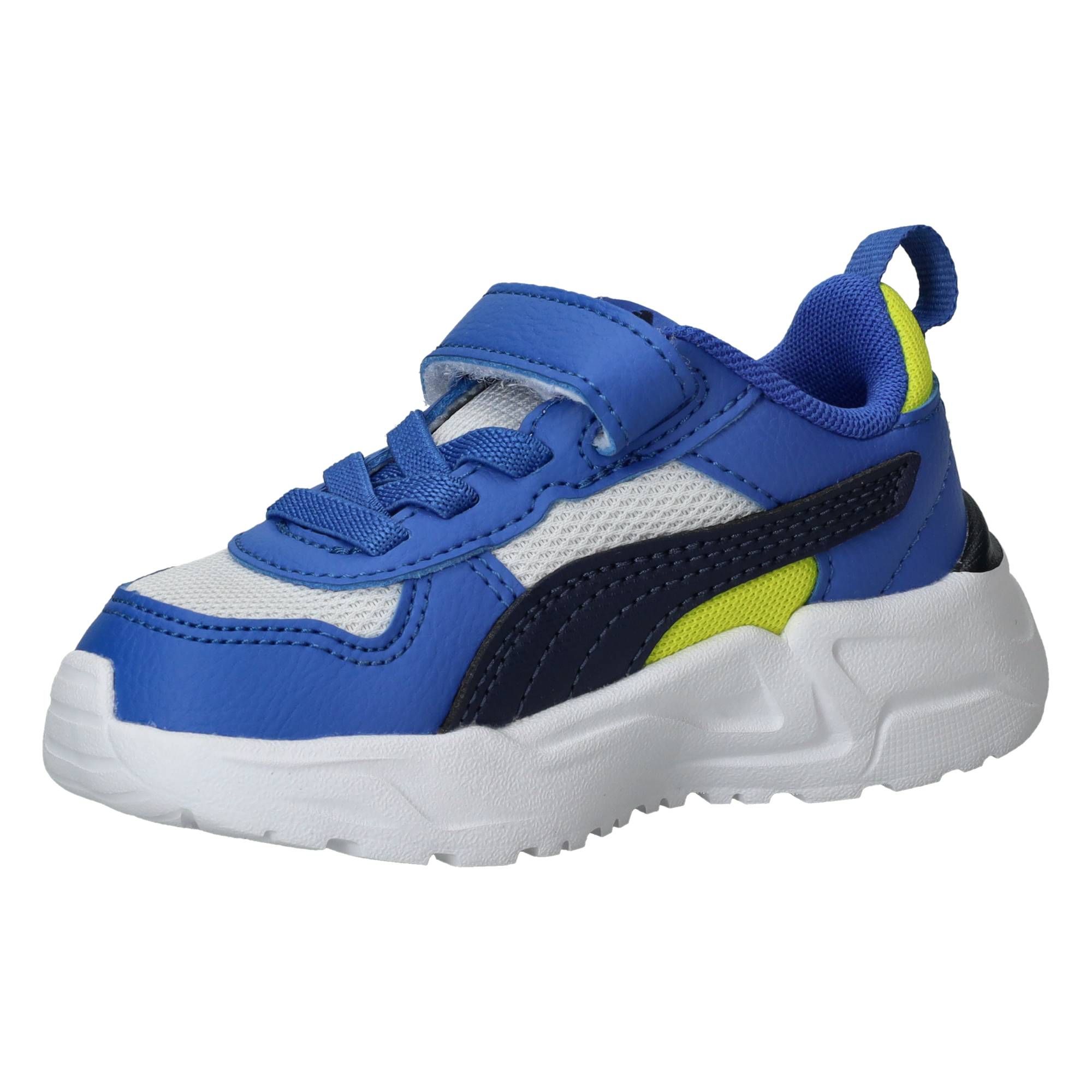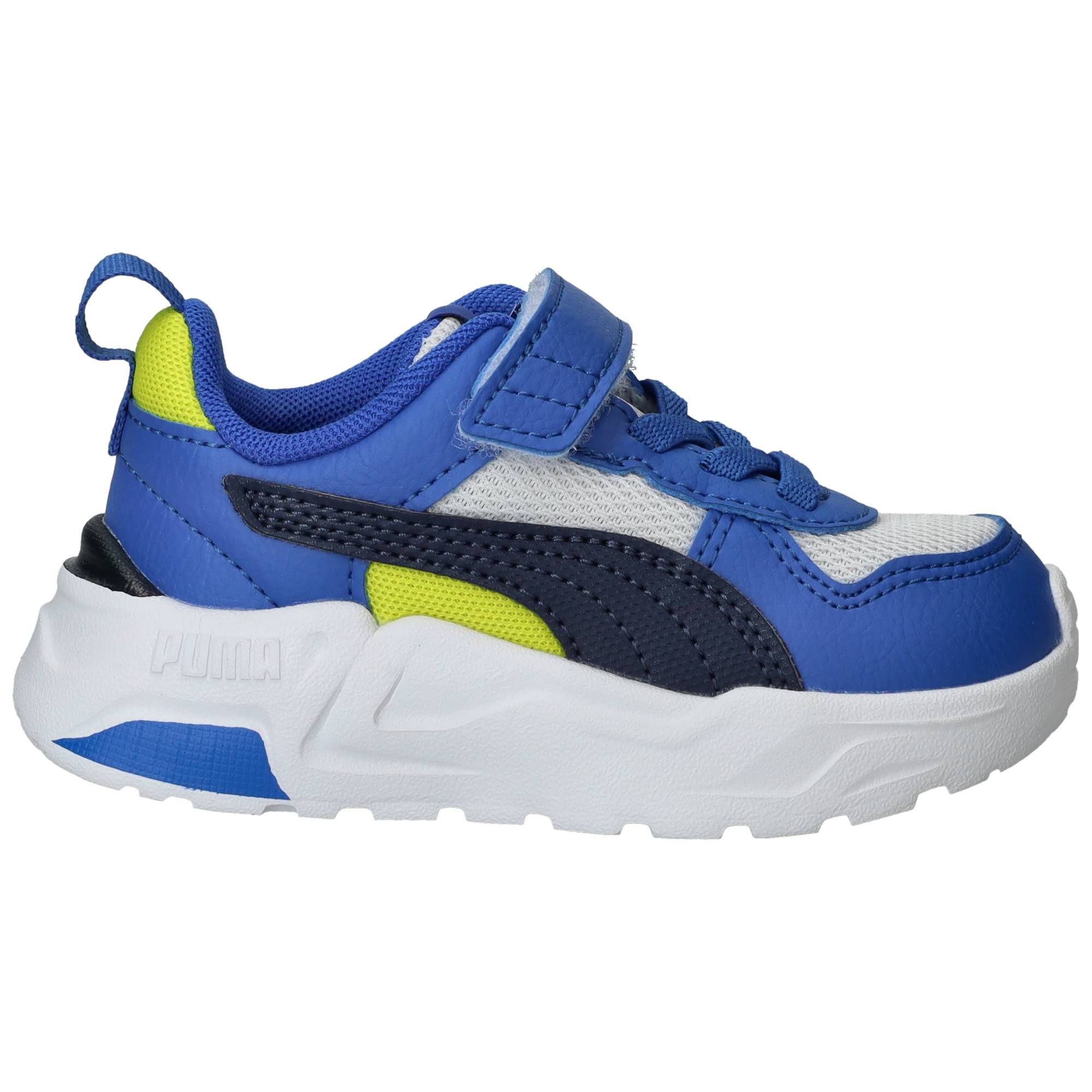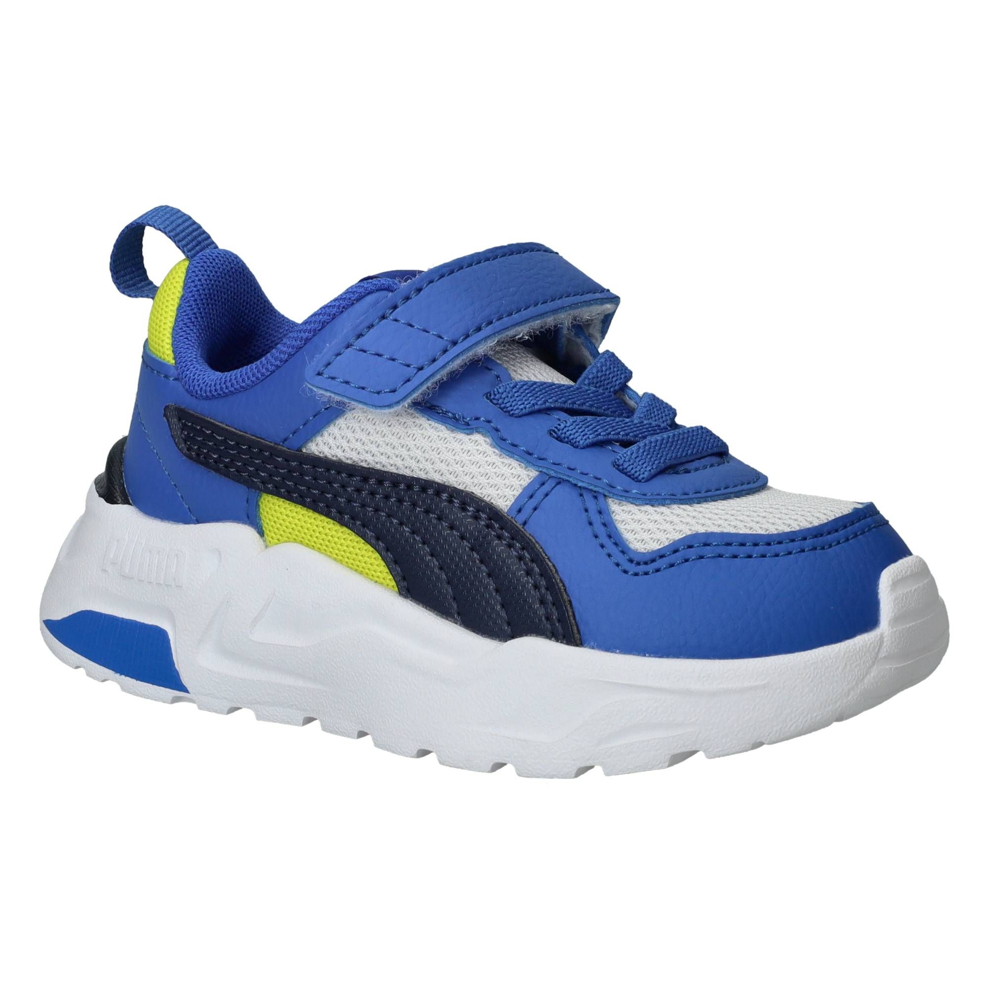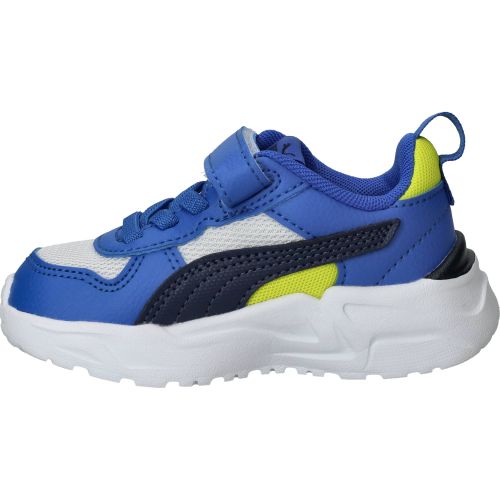 De jongens sneakers trekken direct de aandacht met hun sportieve blauwe kleur, gecombineerd met frisse witte en zwarte accenten. Het ontwerp van deze Puma Trinity 2 LT is modern en dynamisch, perfect voor actieve jongens. Ze lopen heerlijk licht en bieden een fijne ondersteuning, waardoor elke stap comfortabel aanvoelt. De zachte demping zorgt voor een prettige schokabsorptie, wat bijdraagt aan een ontspannen loopgevoel, zelfs tijdens de meest energieke avonturen.- De handige klittenbandsluiting zorgt voor een snelle en eenvoudige aanpassing, zodat de schoen altijd stevig en comfortabel zit.