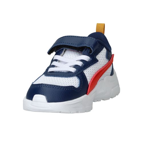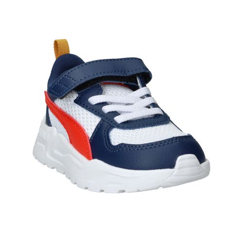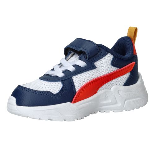 De jongenssneaker Puma Trinity Lite is een sportieve en kleurrijke keuze voor actieve jongens. De combinatie van blauw, wit en rood geeft de schoen een energieke uitstraling. Dankzij het lichte en ademende textiel is hij perfect voor eindeloos speelplezier en comfort de hele dag door.