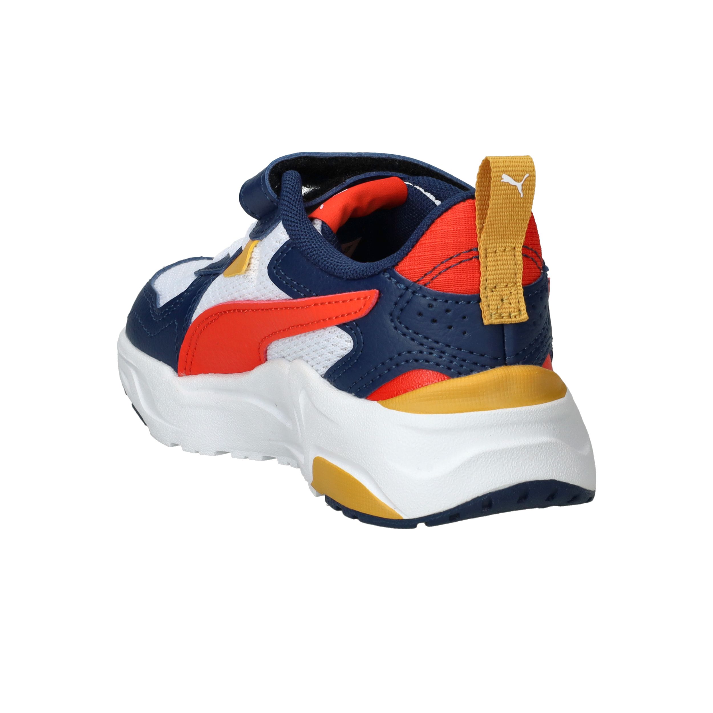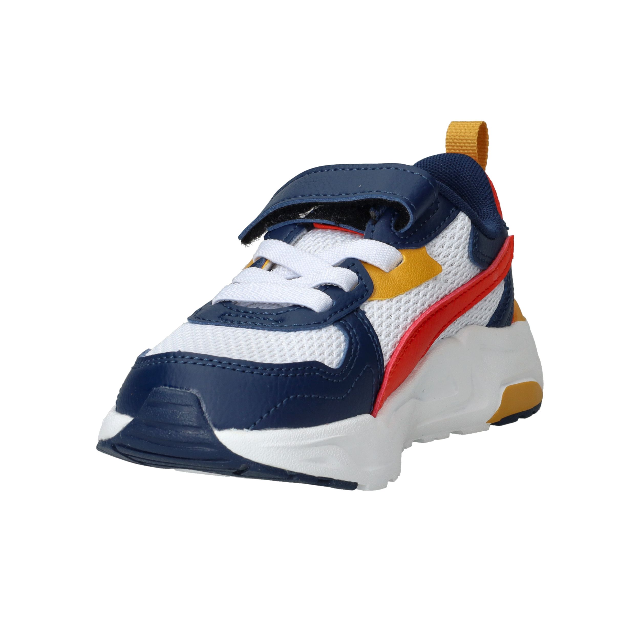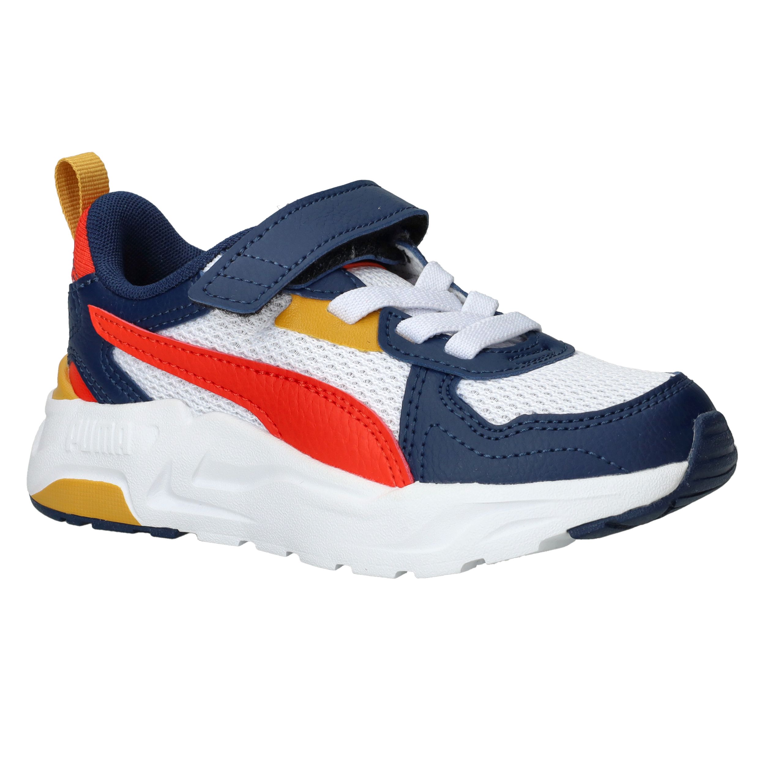 Deze jongenssneaker van Puma combineert sportieve stijl met ultiem comfort. De frisse kleurencombinatie van wit, blauw, rood en geel geeft een speelse en energieke look. Dankzij het ademende textiel en de lichte zool is deze sneaker perfect voor elke actieve dag.
