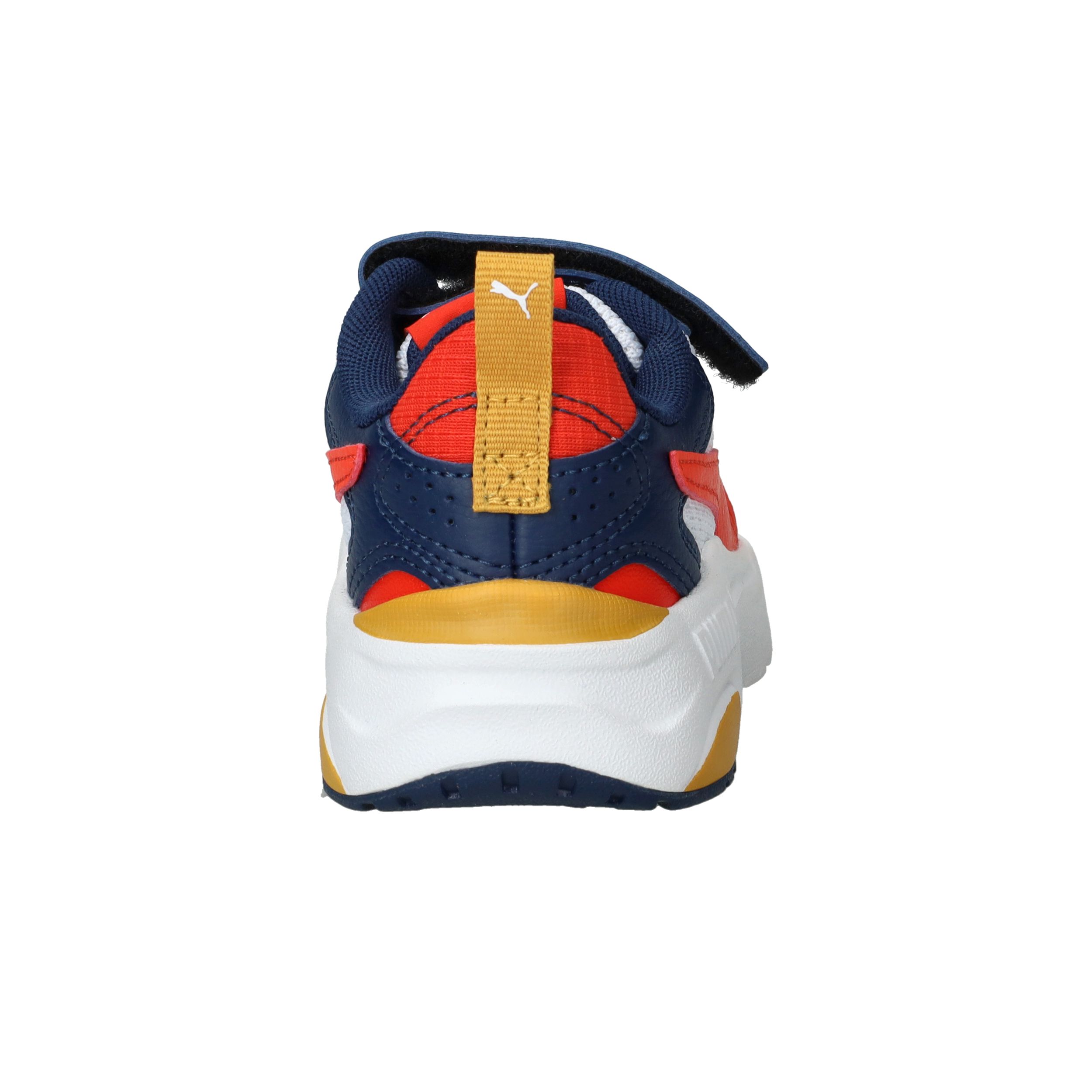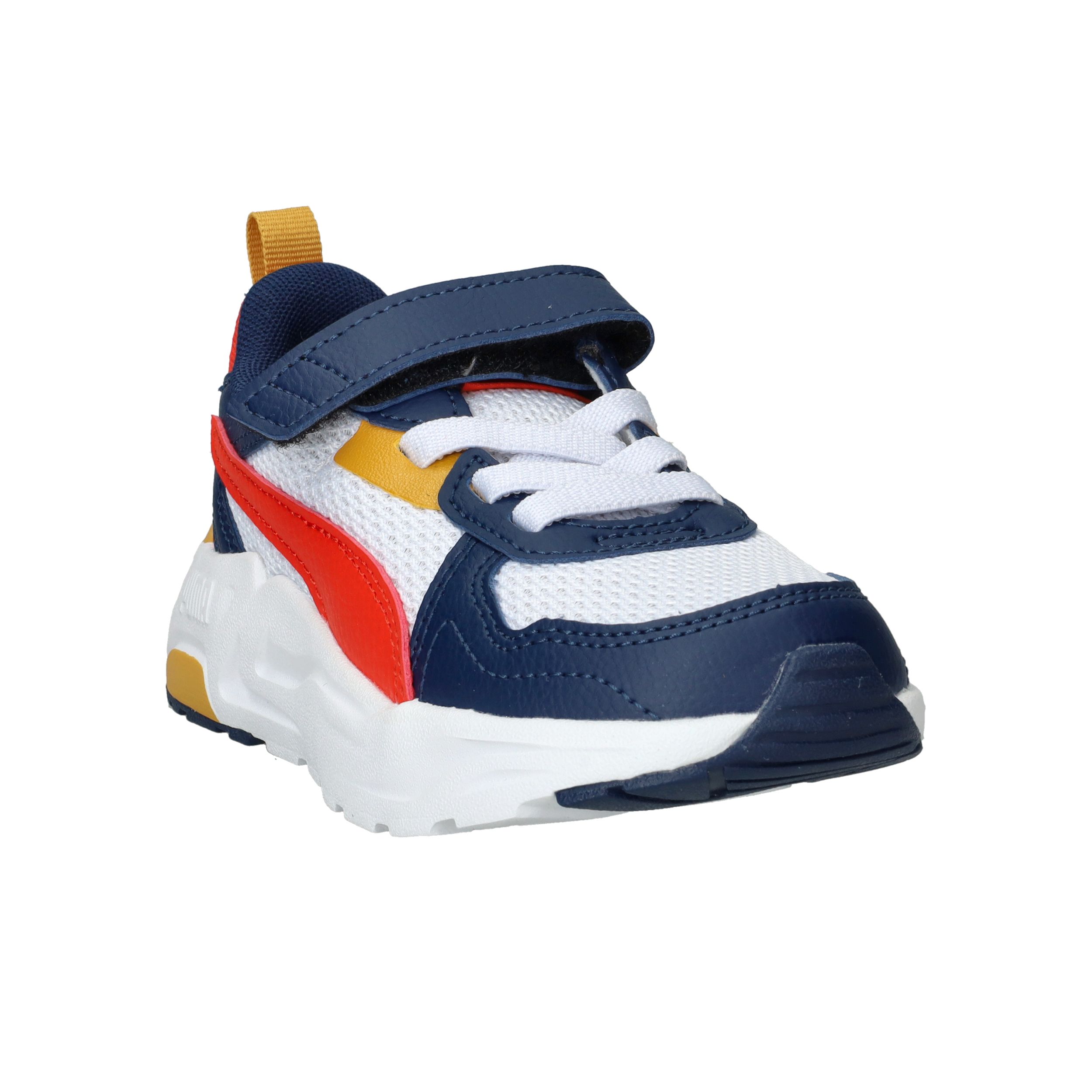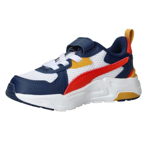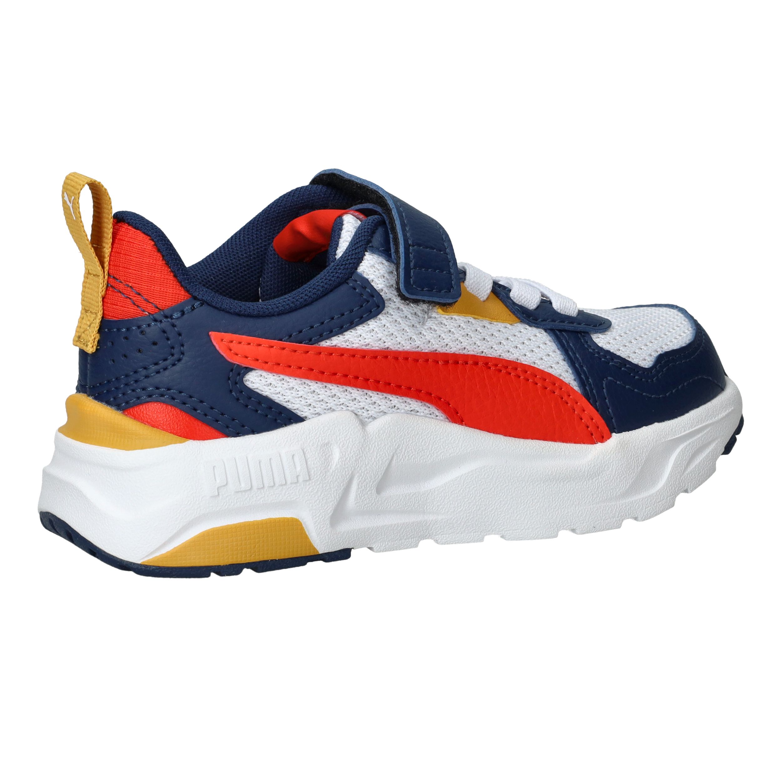 Deze jongenssneaker van Puma combineert sportieve stijl met ultiem comfort. De frisse kleurencombinatie van wit, blauw, rood en geel geeft een speelse en energieke look. Dankzij het ademende textiel en de lichte zool is deze sneaker perfect voor elke actieve dag.