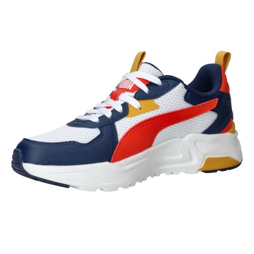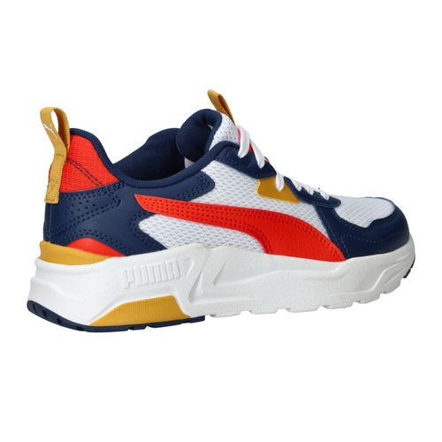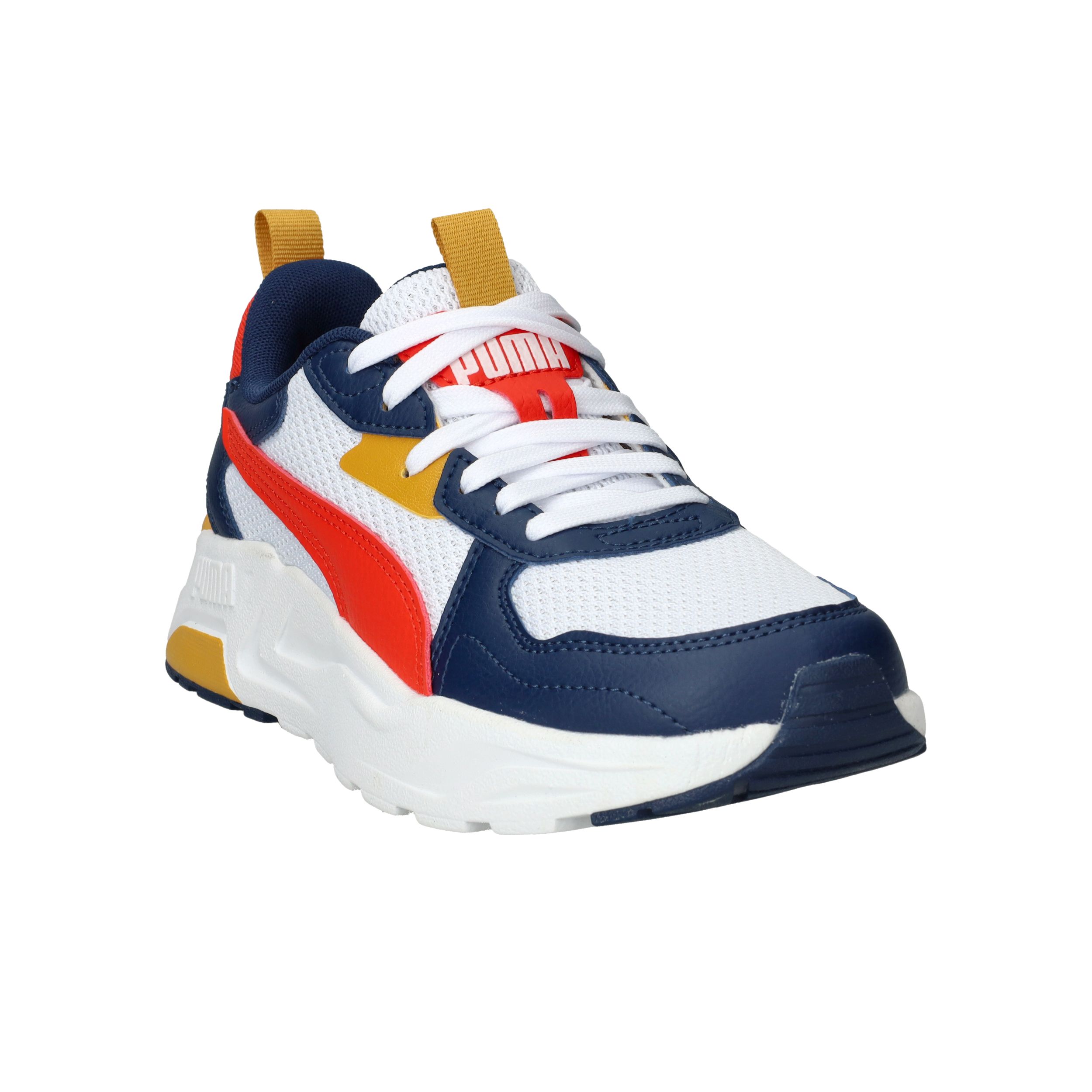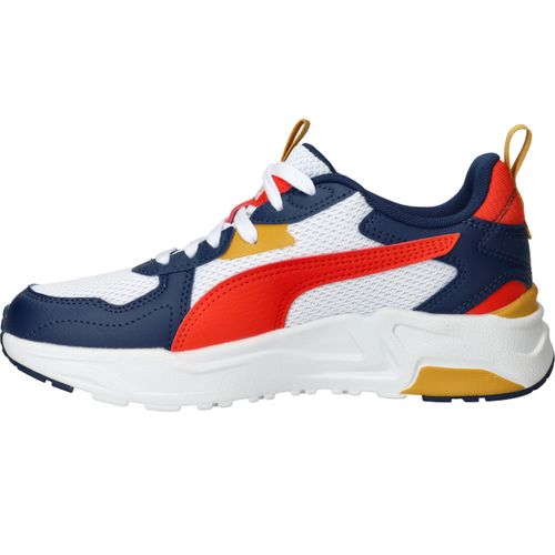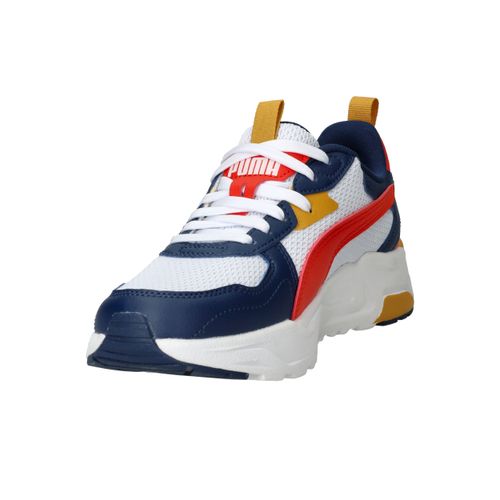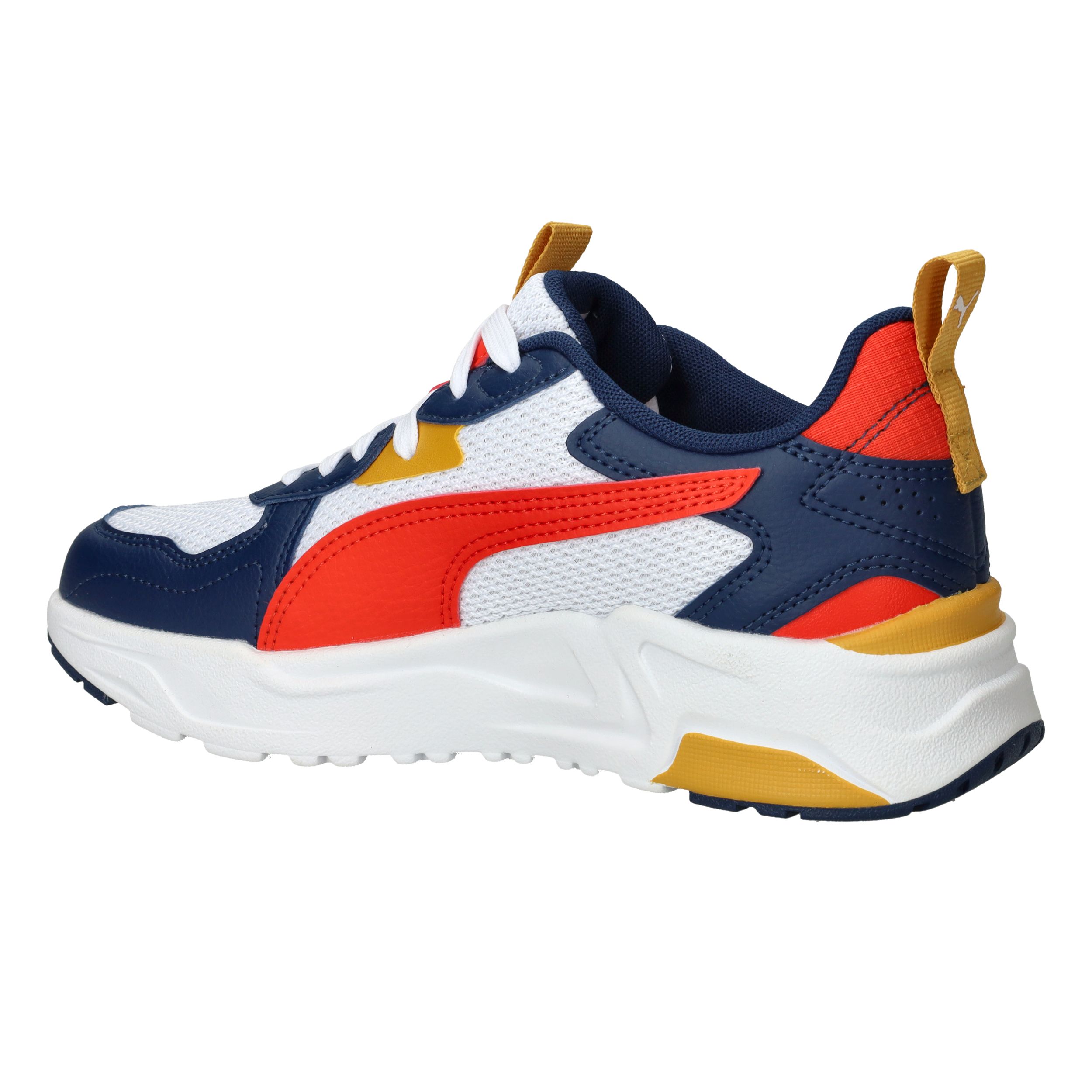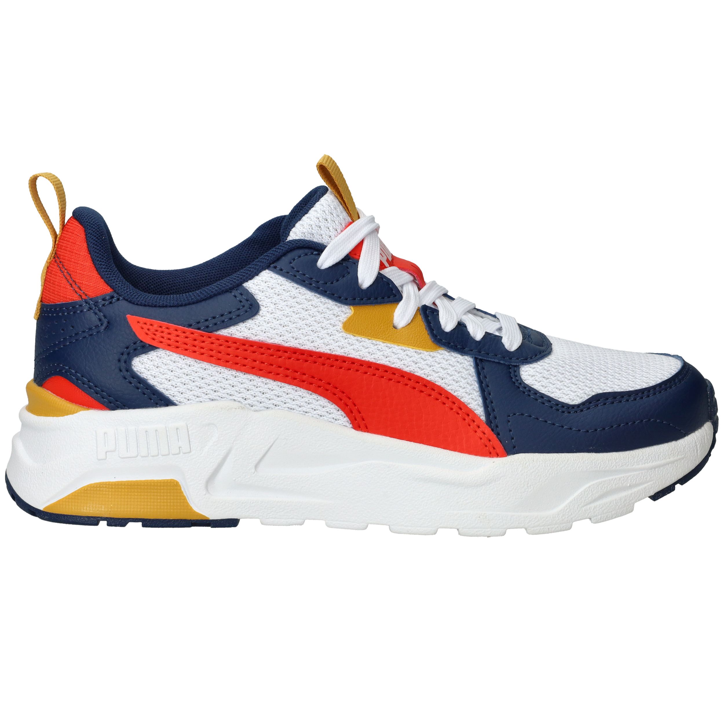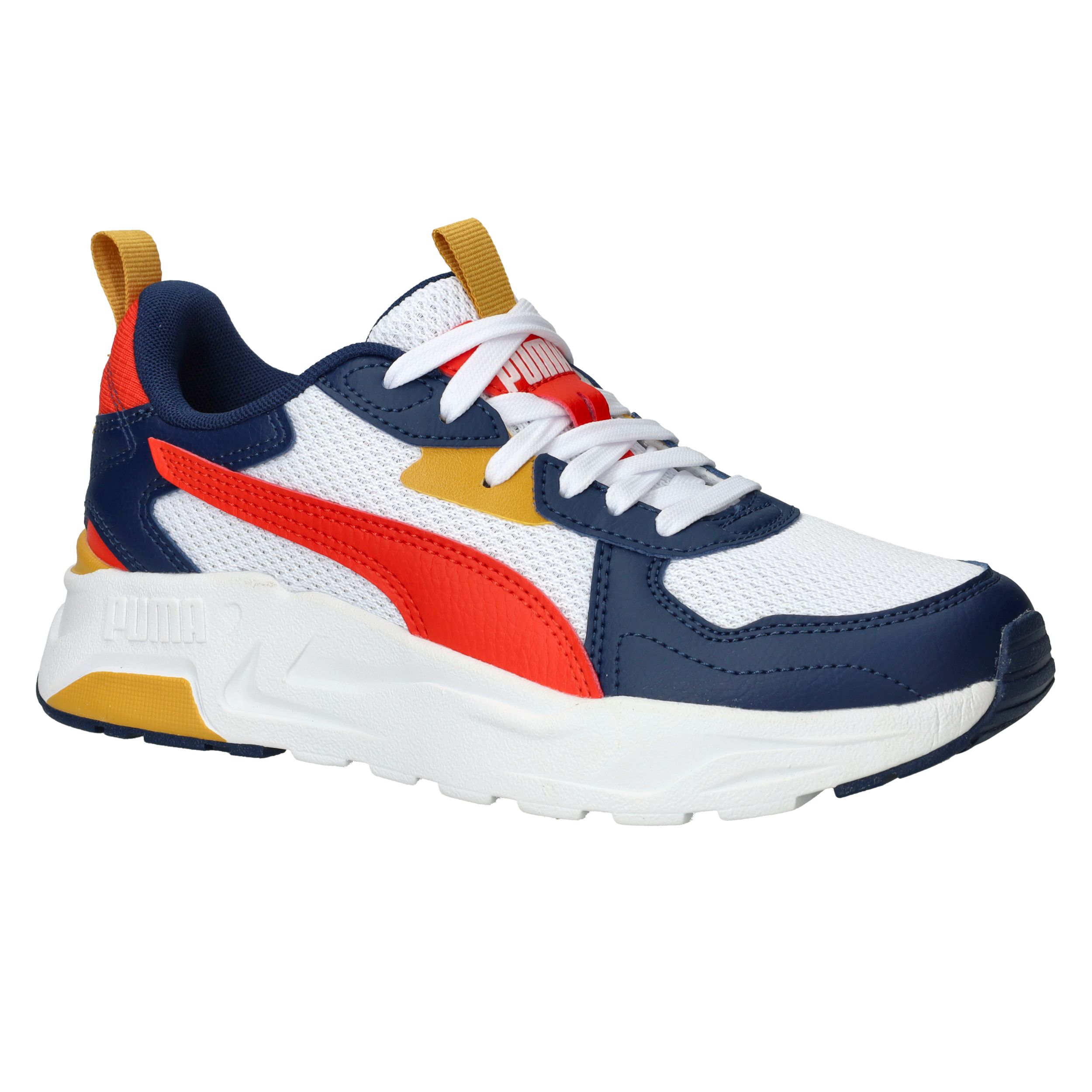 Met deze jongenssneaker van Puma zit je altijd goed. De combinatie van wit, rood, blauw en geel zorgt voor een opvallende en sportieve look. De comfortabele pasvorm en lichtgewicht materialen maken hem ideaal voor dagelijks gebruik en spelplezier.