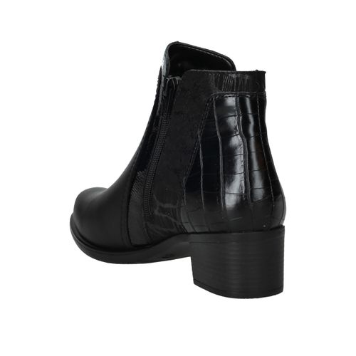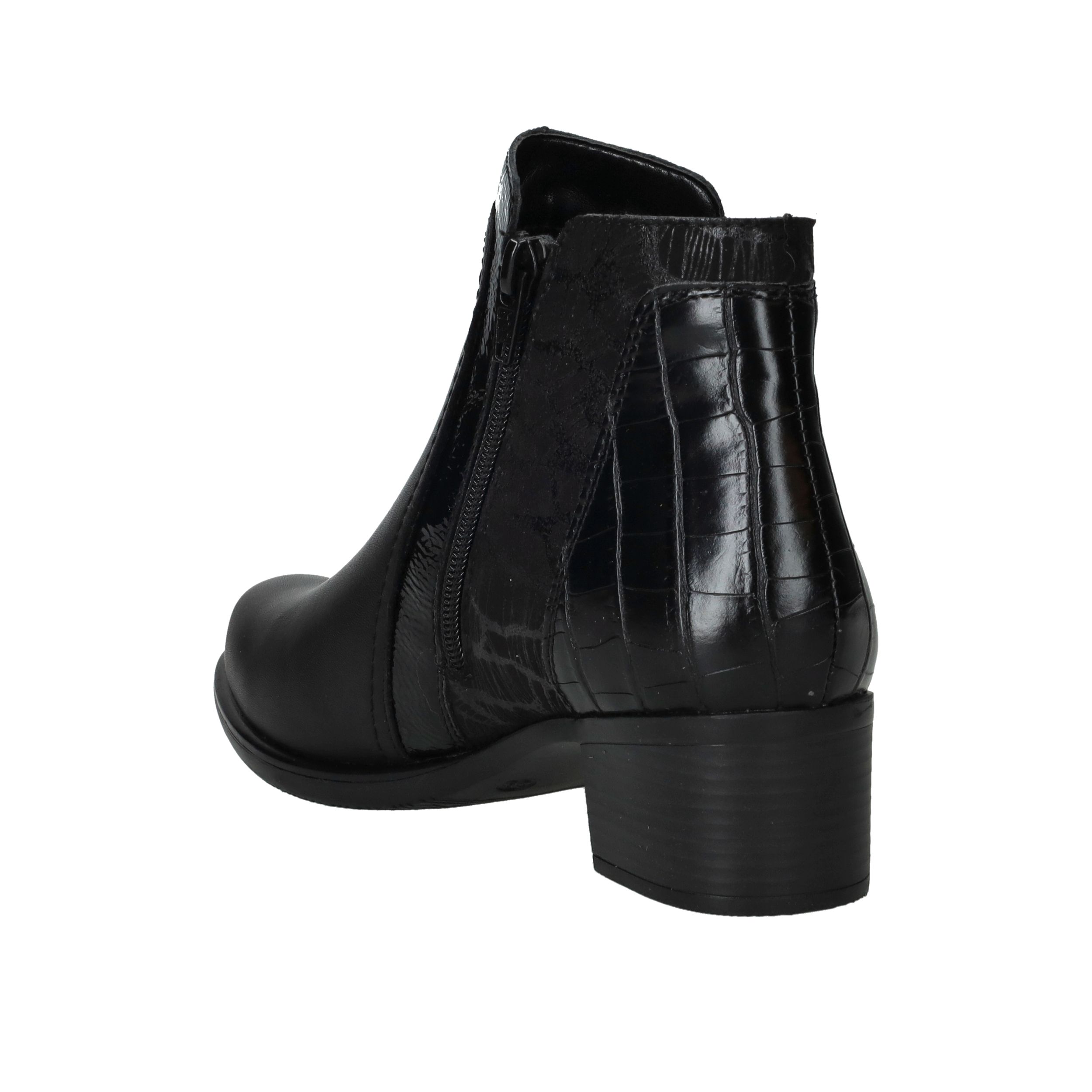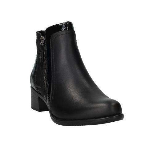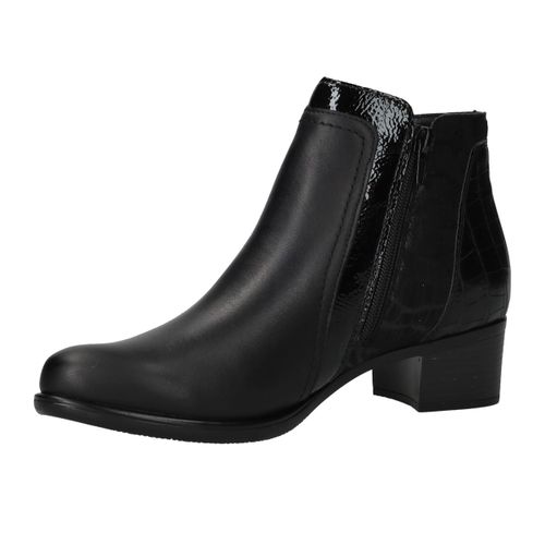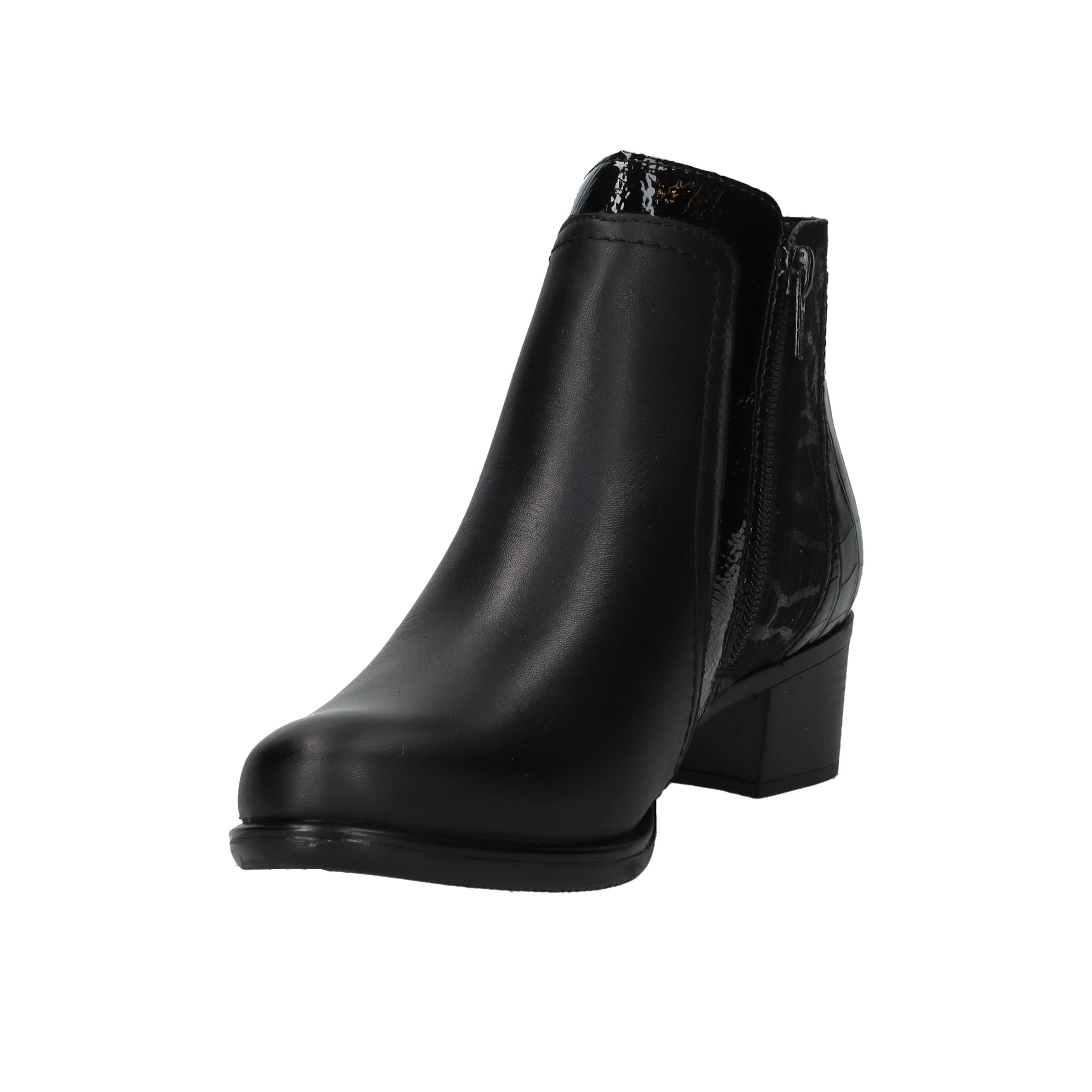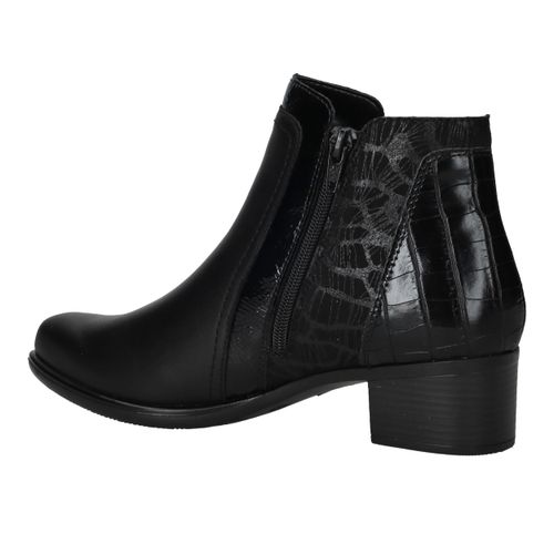 Deze elegante Remonte enkellaarsjes in zwart leer en textiel zijn een veelzijdige en stijlvolle keuze. Het subtiele contrast tussen het gladde leer en het textiele detail geeft de laarsjes een unieke en moderne uitstraling. De stevige hak biedt stabiliteit en comfort, terwijl de comfortabele voetbreedte G zorgt voor een fijne pasvorm. Perfect voor dames die mode en praktisch gemak willen combineren.