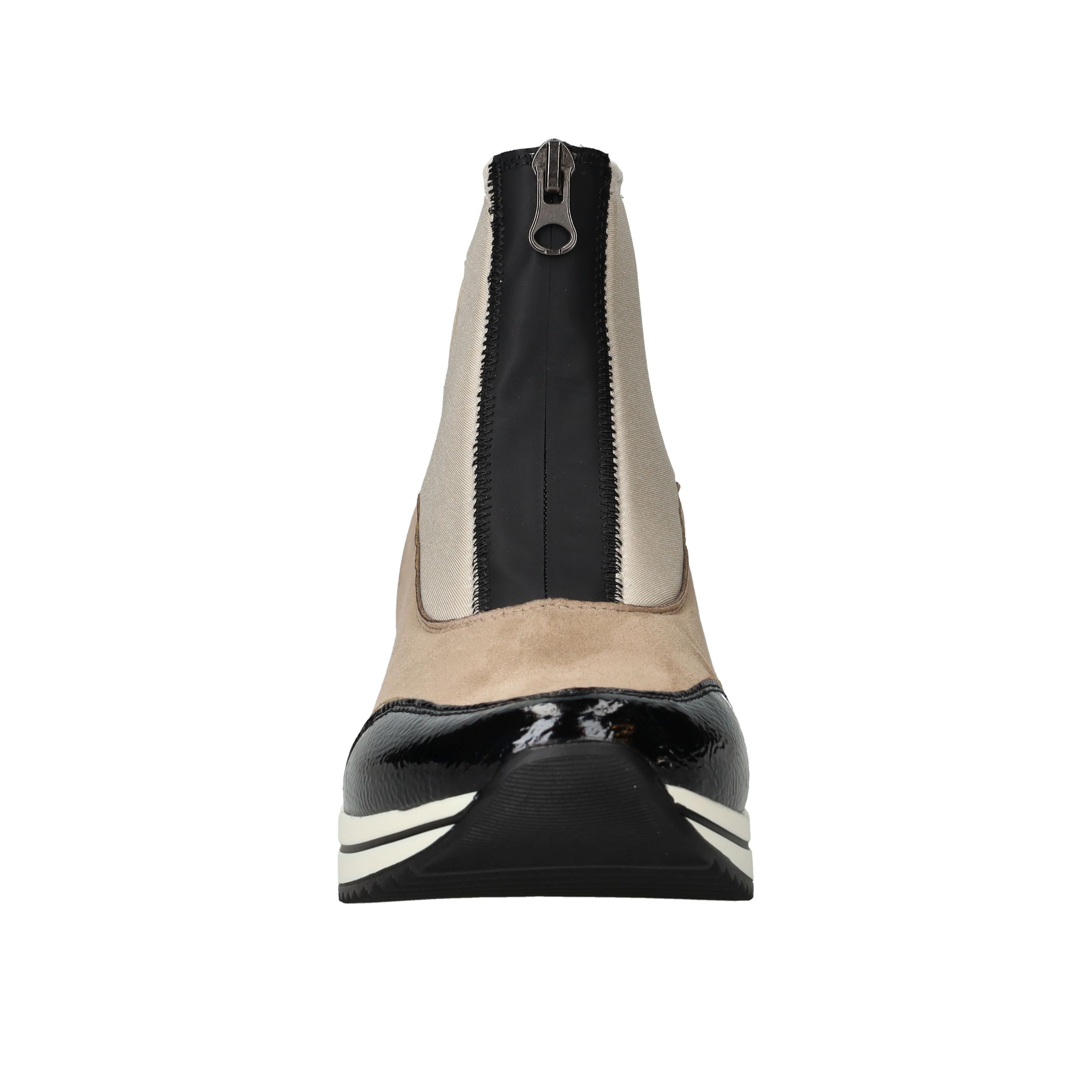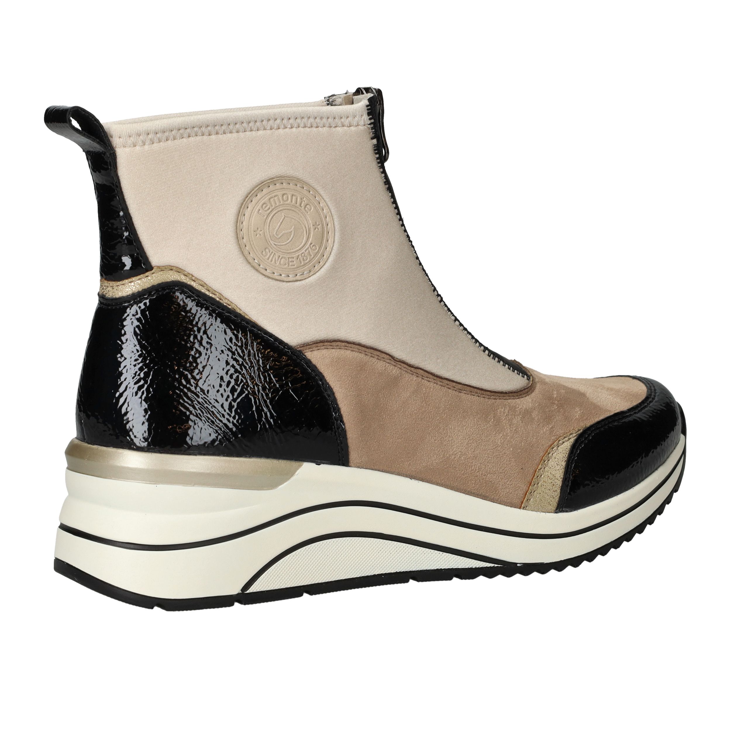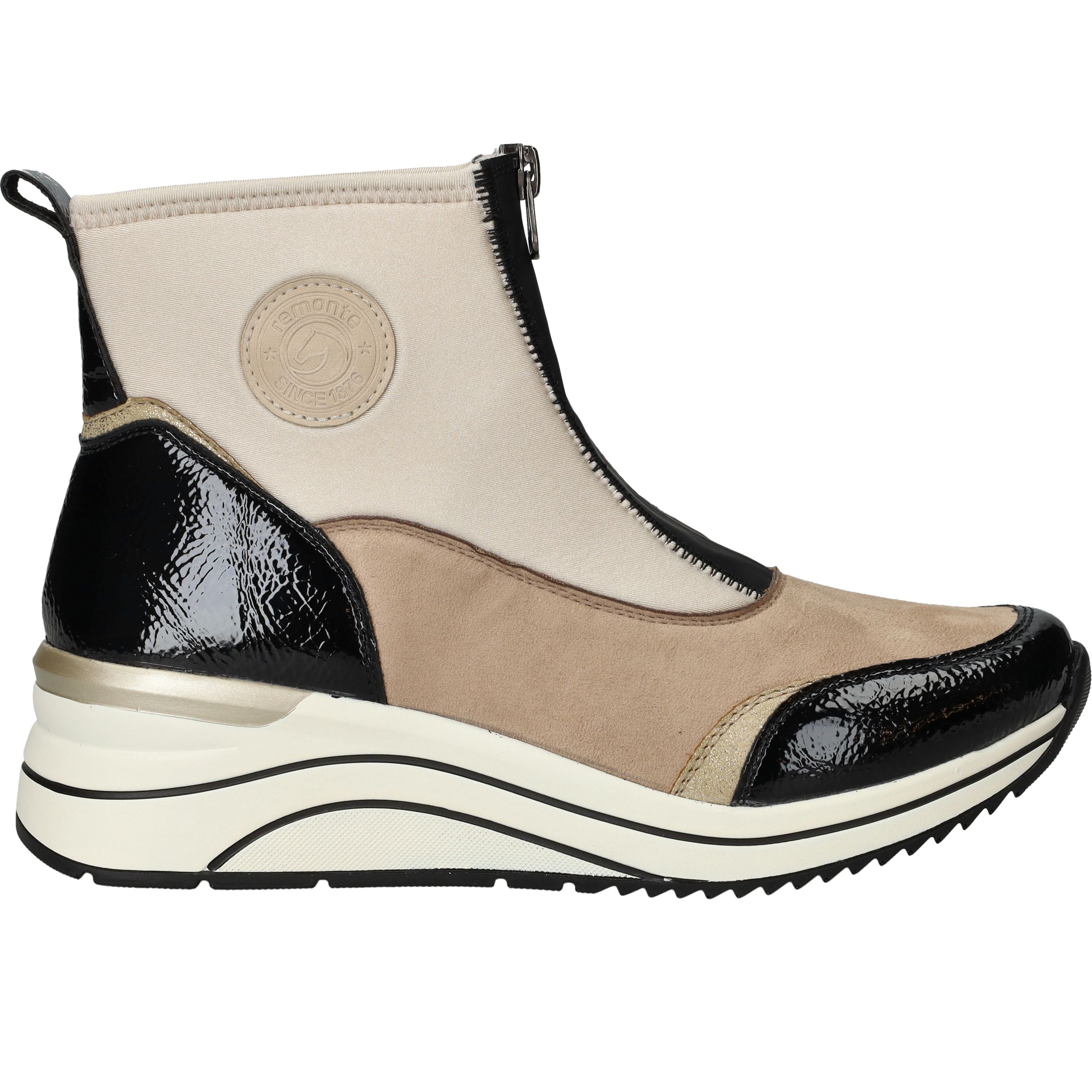 Met deze beige boot van Remonte combineer je moeiteloos stijl met comfort én duurzaamheid. De schoen is volledig vegan en heeft een moderne voorrits, waardoor je er makkelijk in stapt. Dankzij de comfortabele voetwijdte H en de dempende zool loop je er de hele dag heerlijk op rond. De kleurcombinatie van beige en zwart maakt deze boot een echte blikvanger.