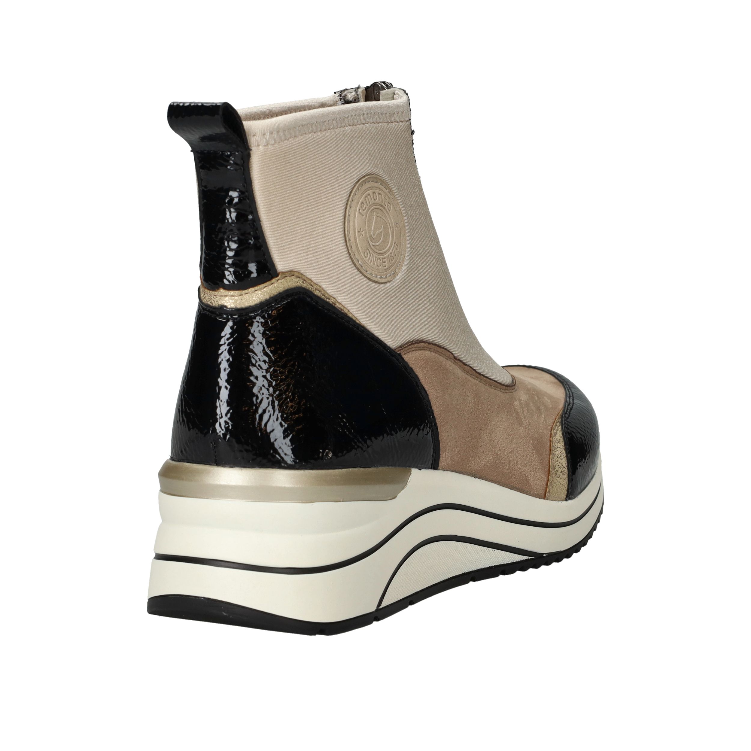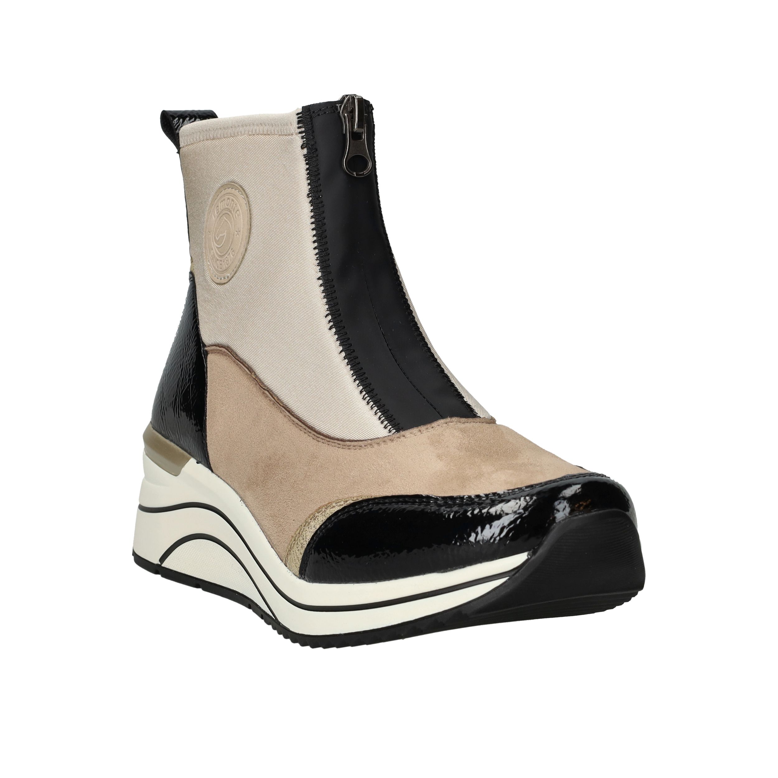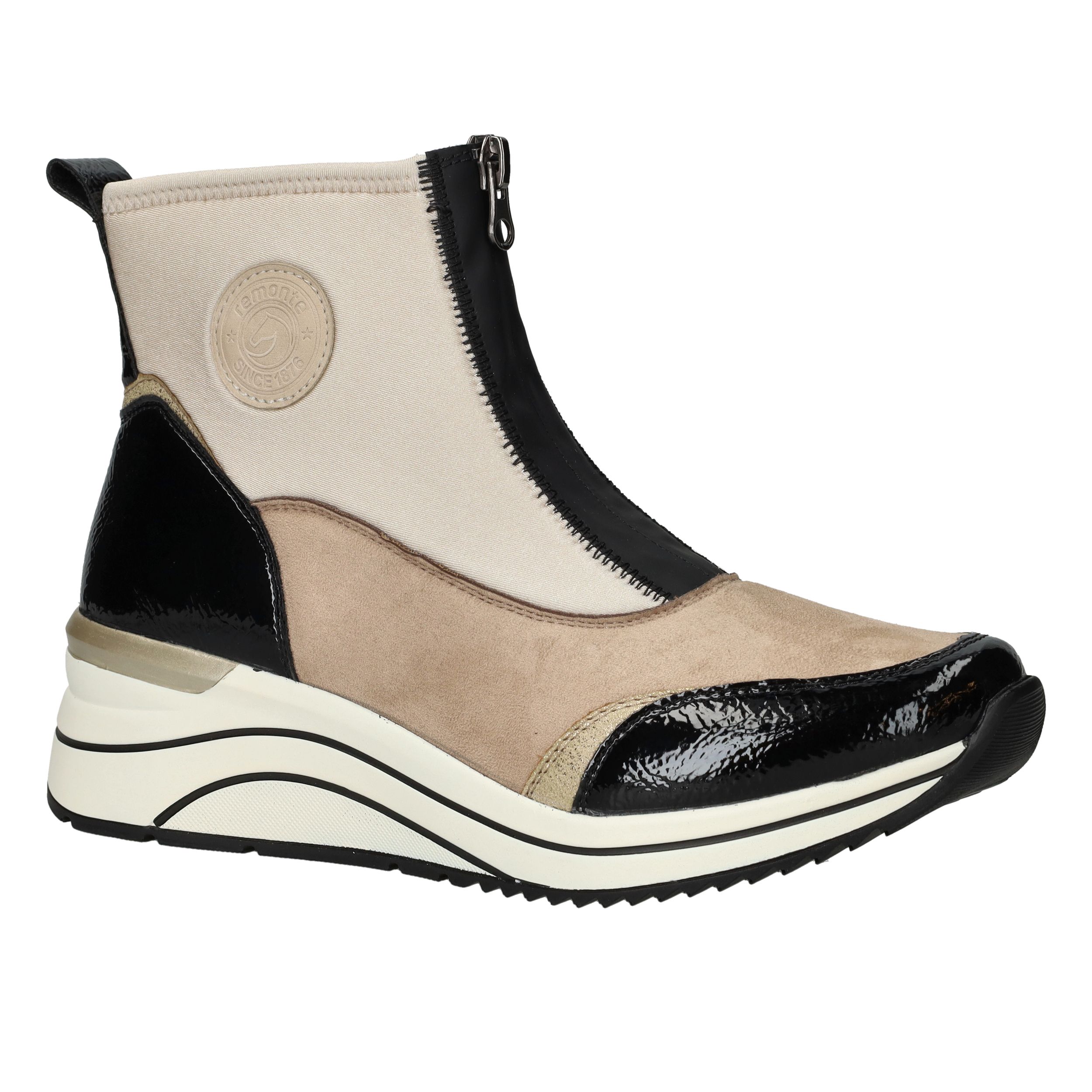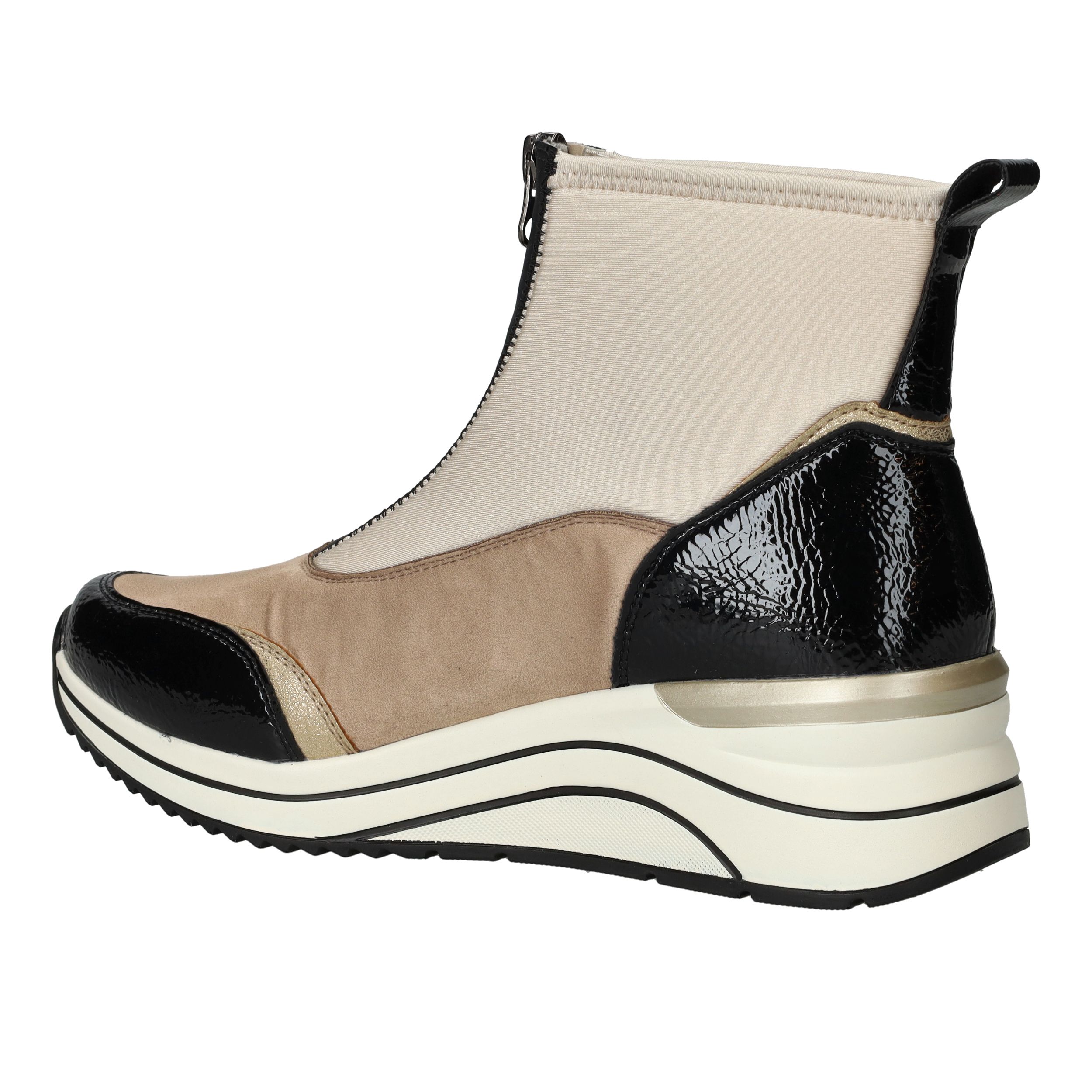 Met deze beige boot van Remonte combineer je moeiteloos stijl met comfort én duurzaamheid. De schoen is volledig vegan en heeft een moderne voorrits, waardoor je er makkelijk in stapt. Dankzij de comfortabele voetwijdte H en de dempende zool loop je er de hele dag heerlijk op rond. De kleurcombinatie van beige en zwart maakt deze boot een echte blikvanger.