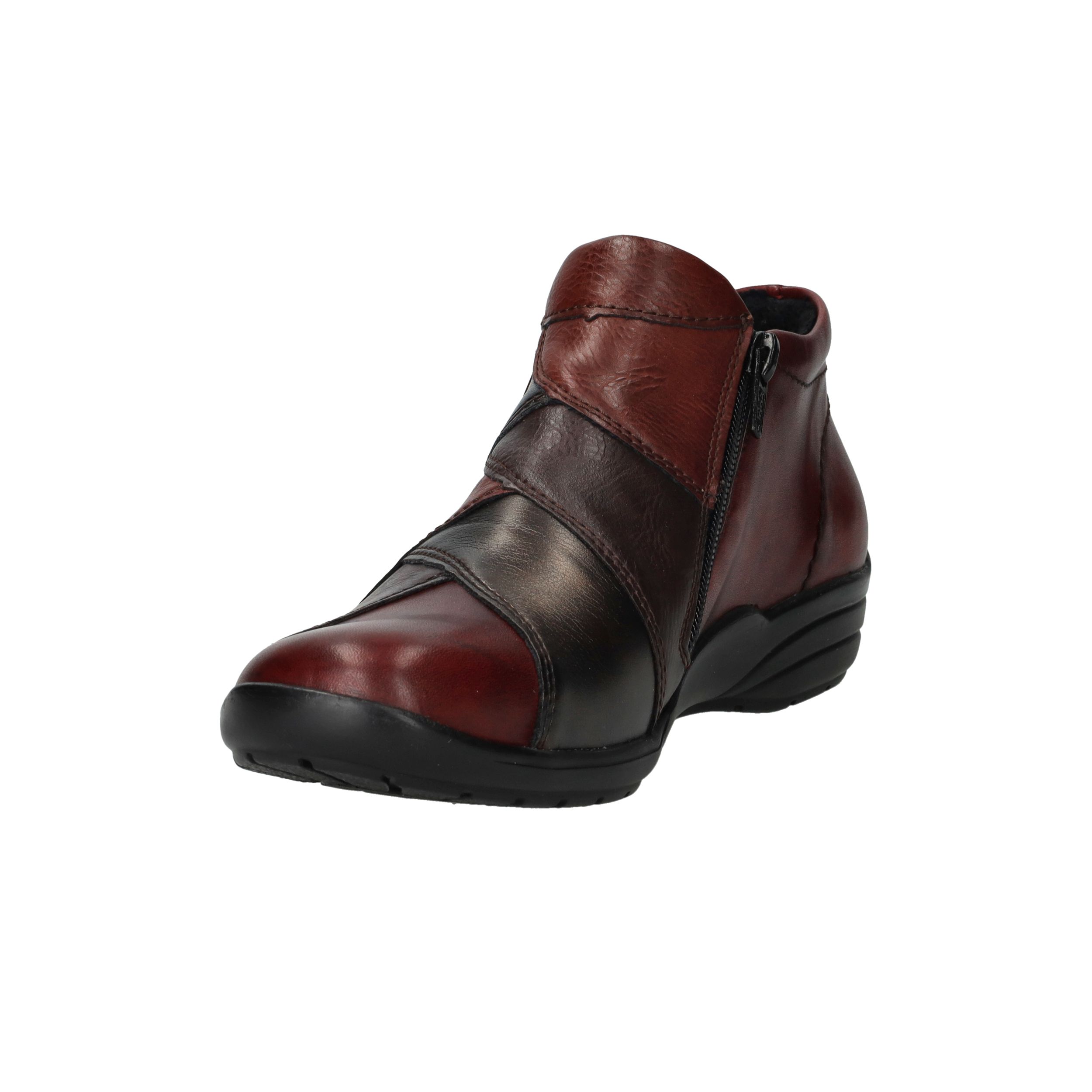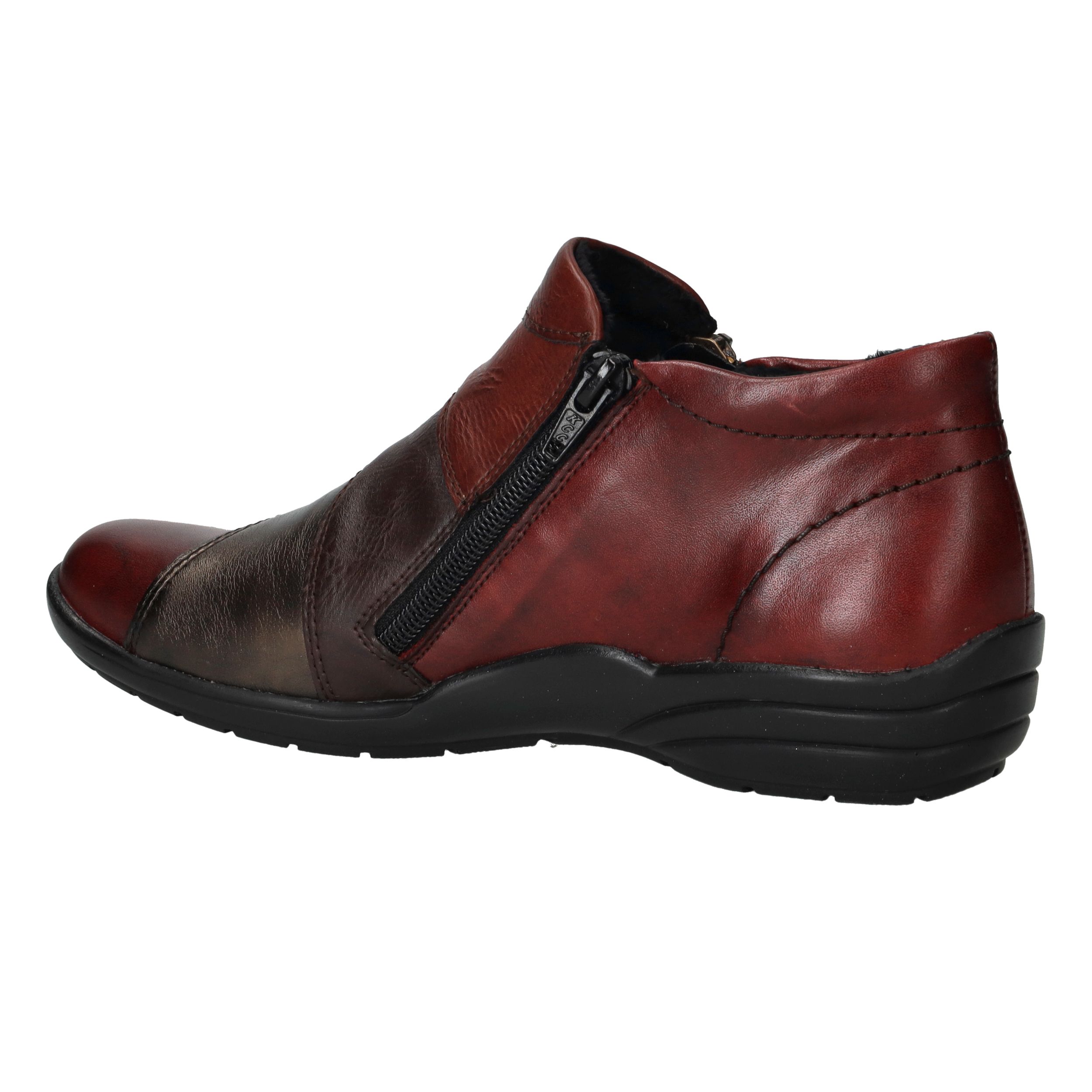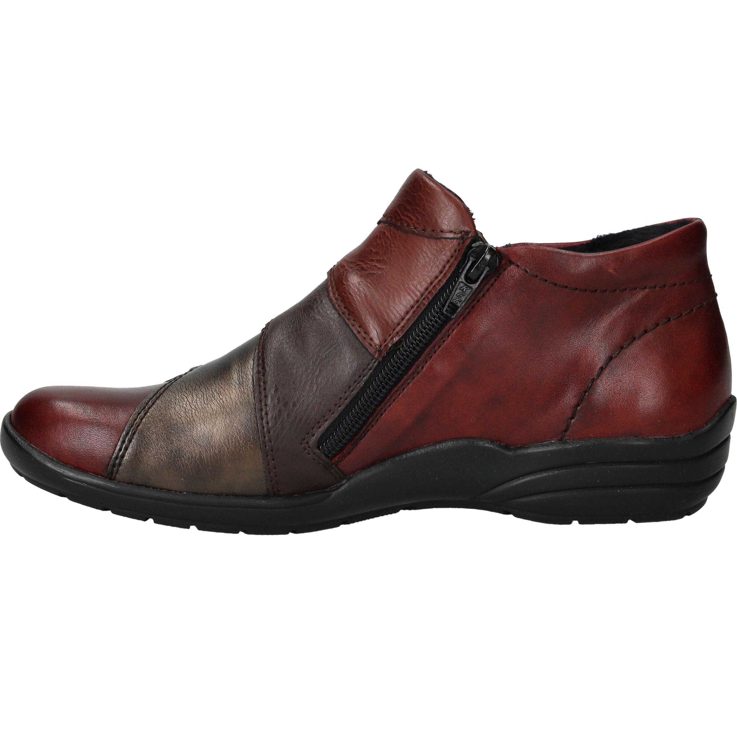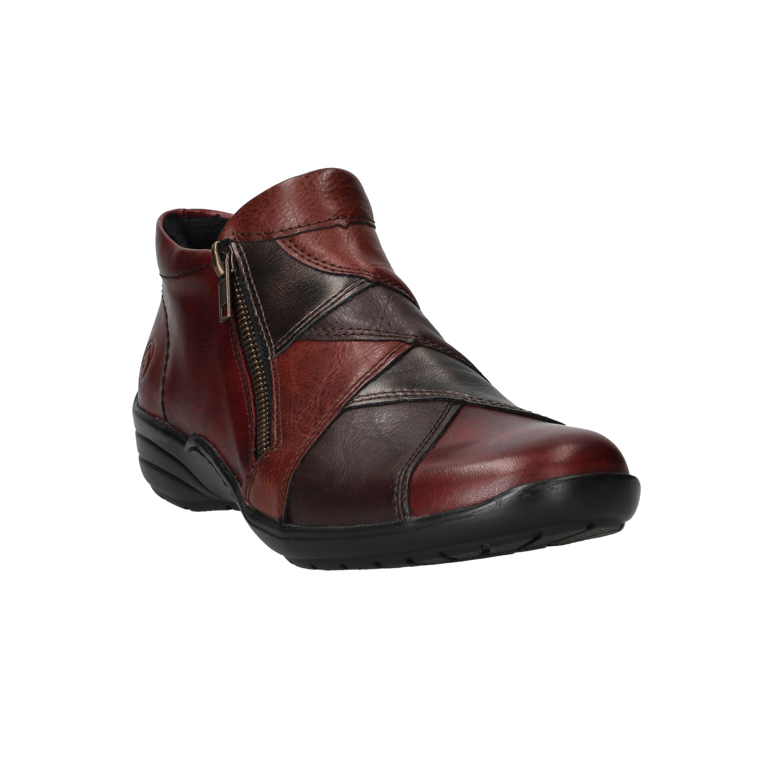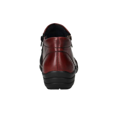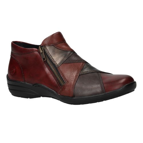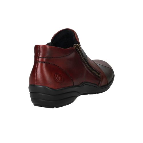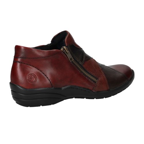 Deze comfortabele instappers van Remonte combineren een opvallend rood-zwart kleurenspel met hoog draagcomfort. De schoen is gemaakt van een combinatie van leer en kunstleer en heeft voetwijdte H voor extra ruimte. Dankzij de ritssluiting trek je deze instappers gemakkelijk aan en uit.