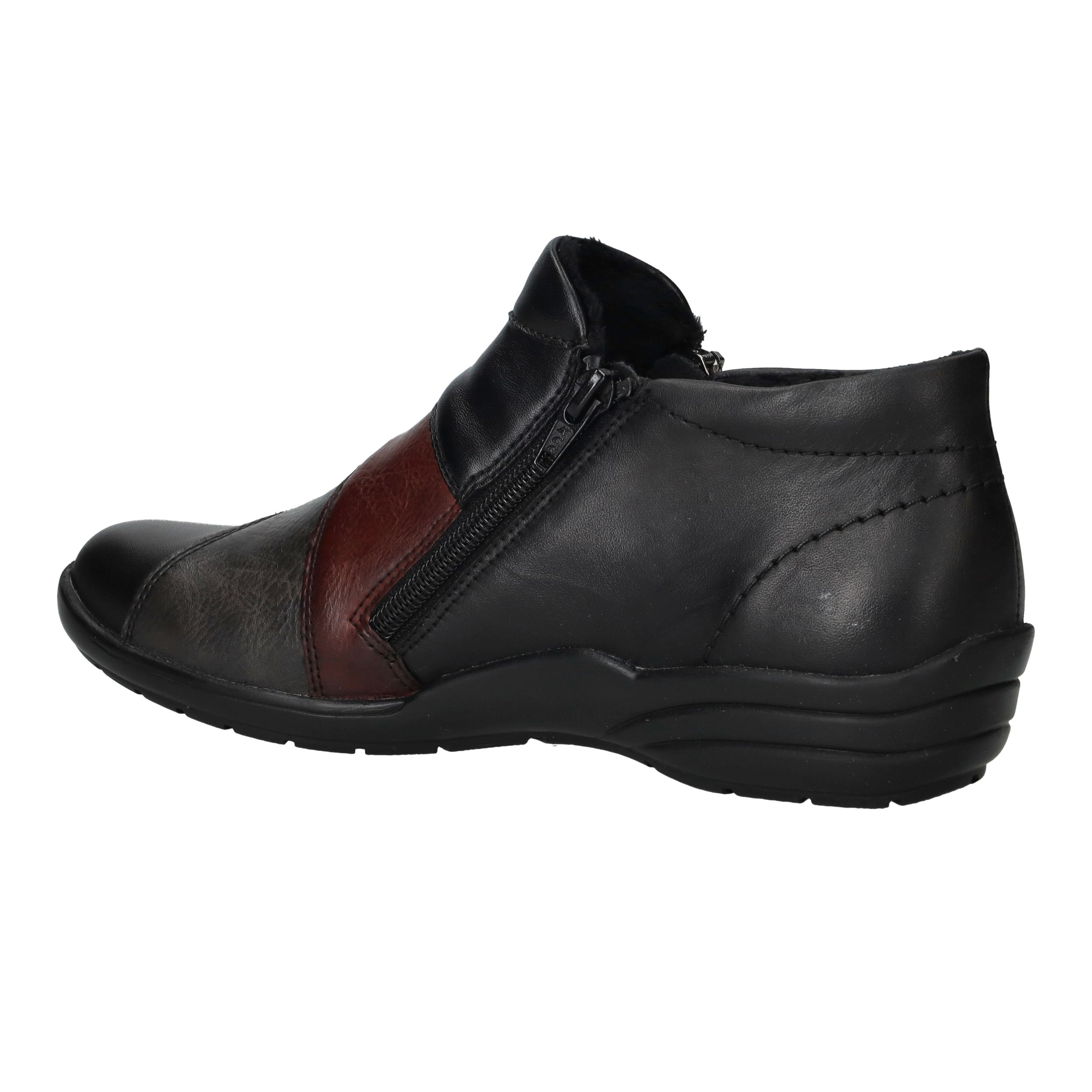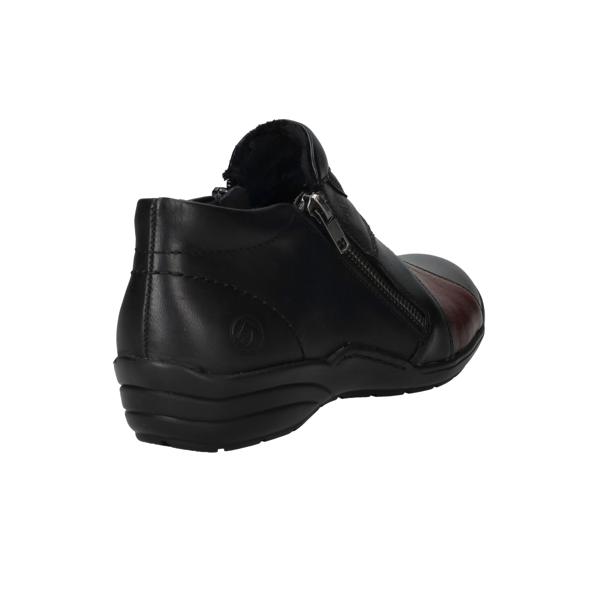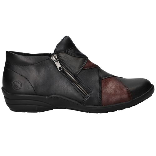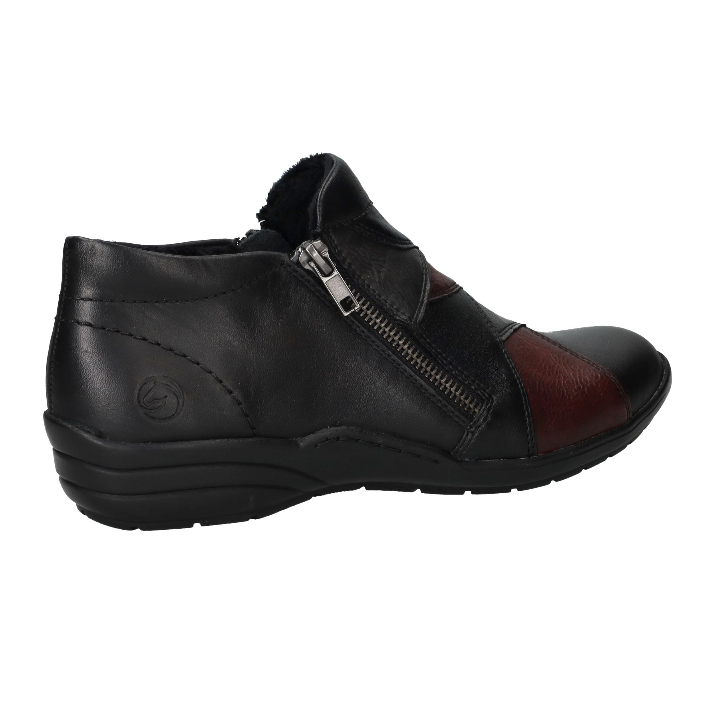 Deze comfortabele instappers van Remonte combineren gemak, stijl en comfort. De zwarte instapper met rode accenten is gemaakt van een combinatie van leer en kunstleer, en heeft voetwijdte H voor extra ruimte en comfort.