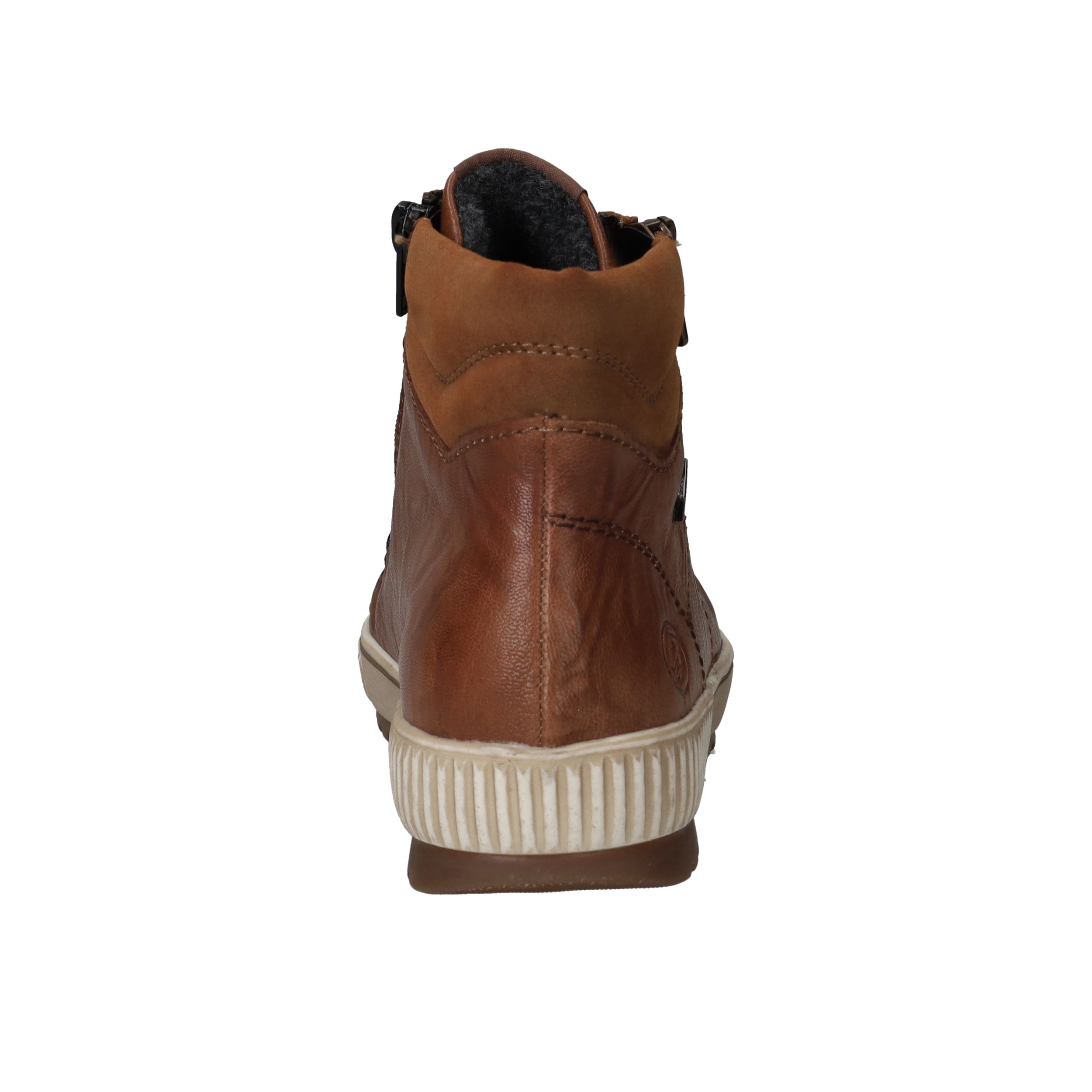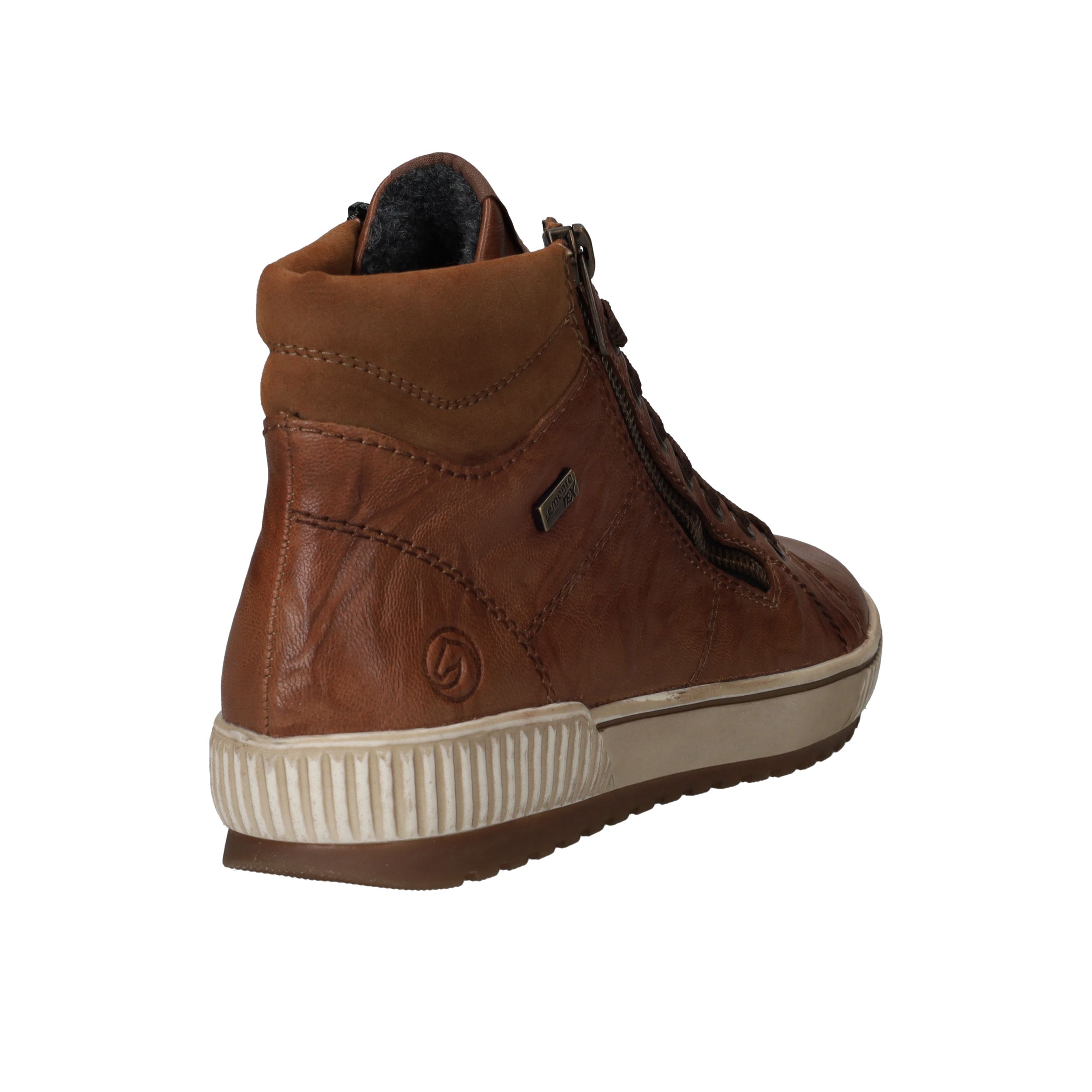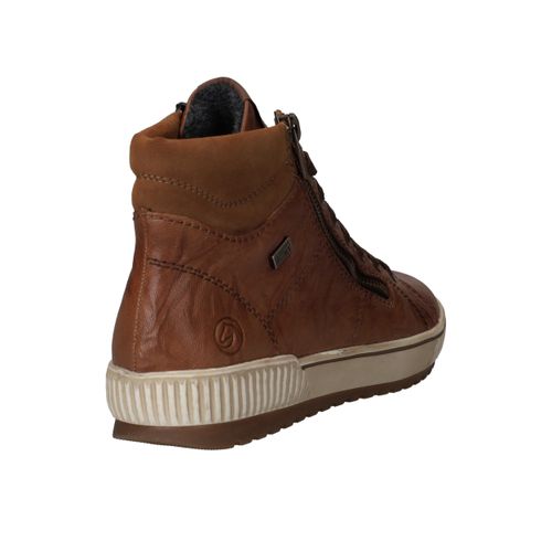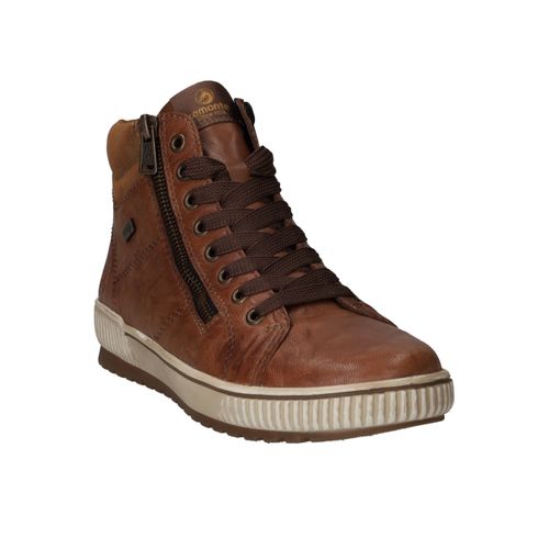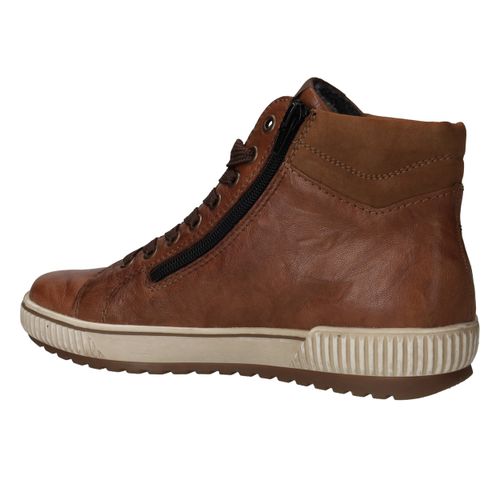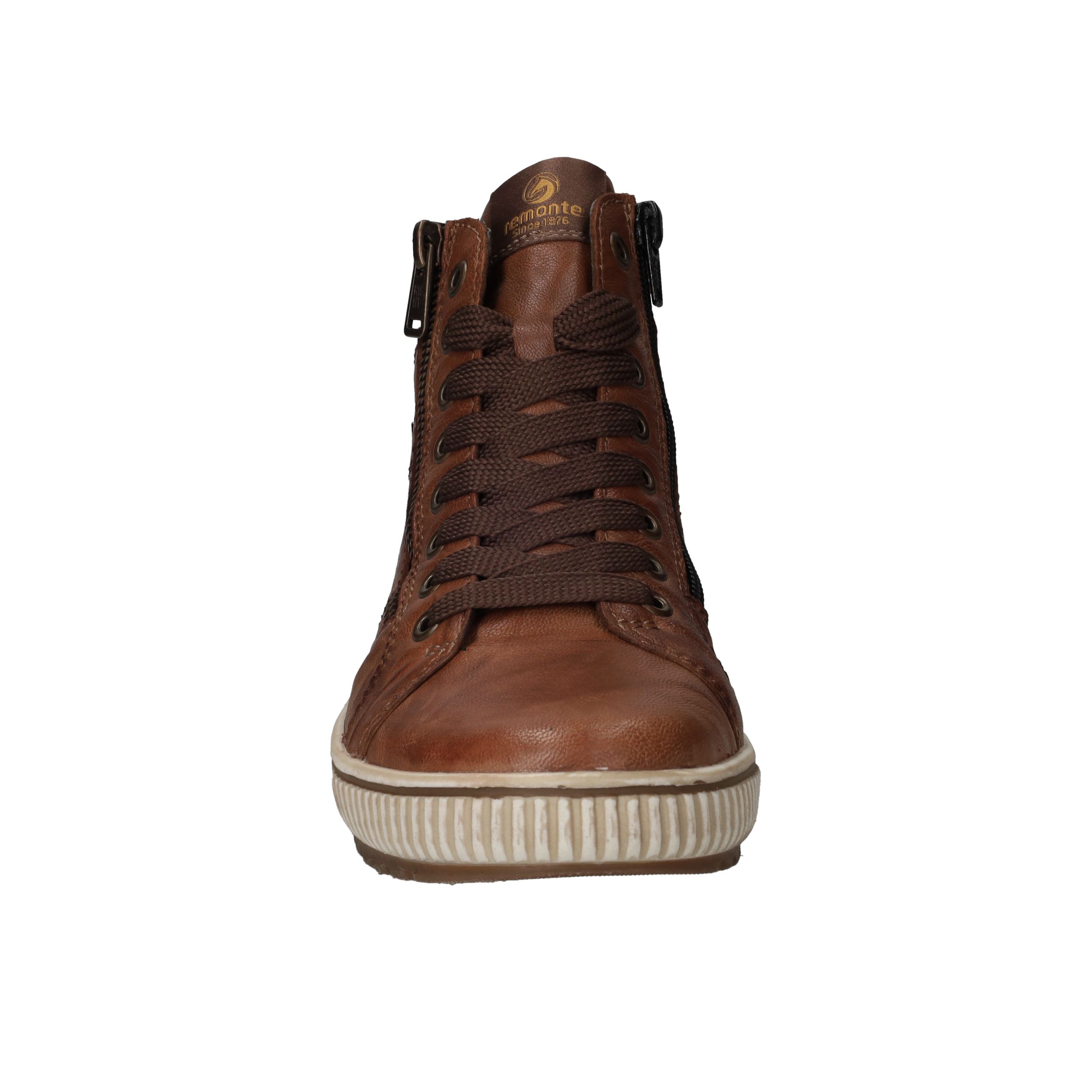 Deze bruine hoge sneaker van Remonte is een stijlvolle én functionele keuze voor het najaar. Het bovenwerk van leer en textiel biedt een fijne balans tussen stevigheid en ademend vermogen. Dankzij de ritssluiting hoef je niet telkens je veters te strikken, en het uitneembare voetbed maakt de schoen geschikt voor eigen inlegzolen.
