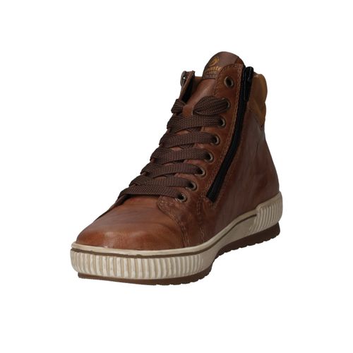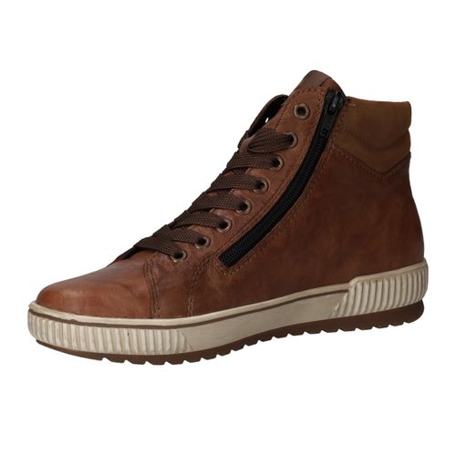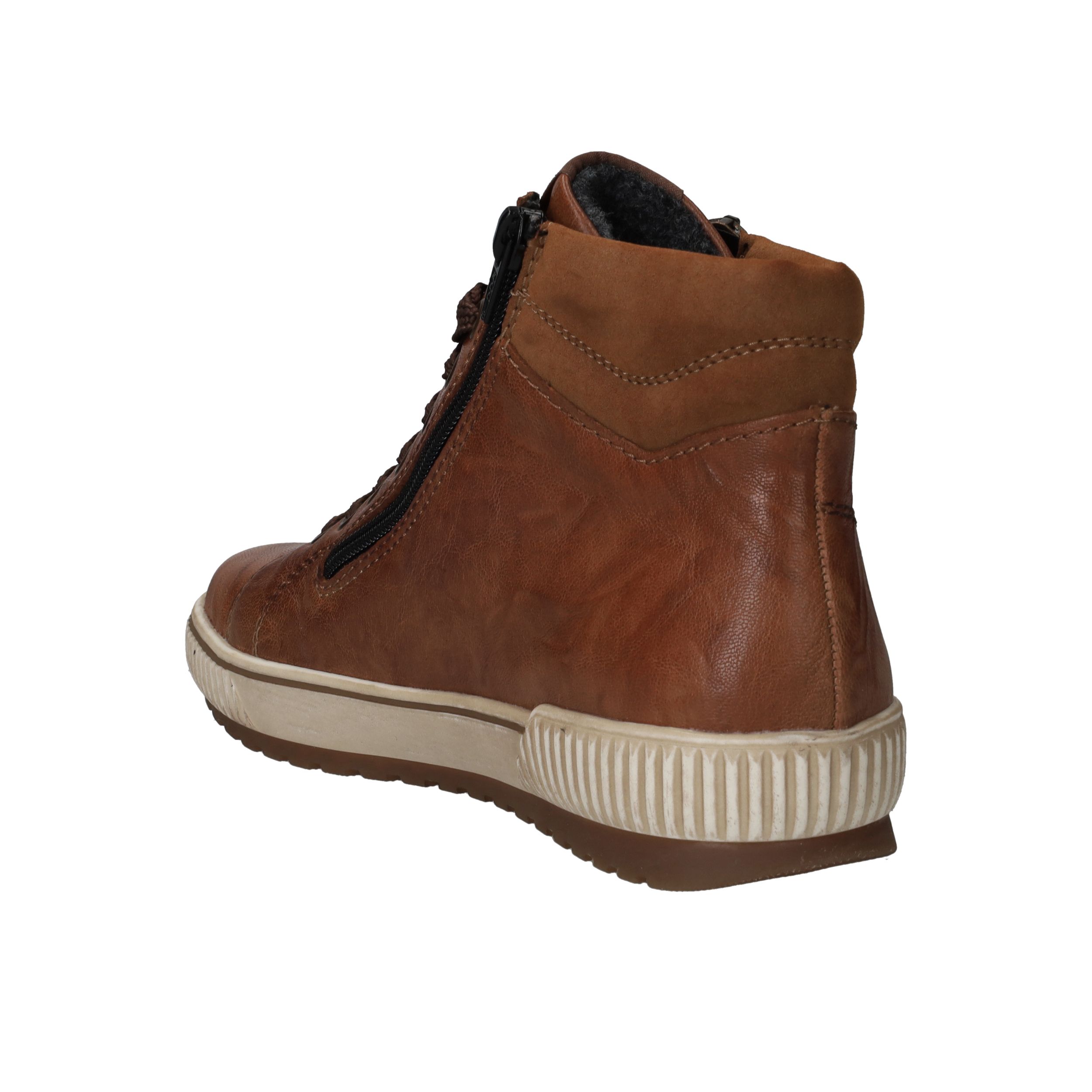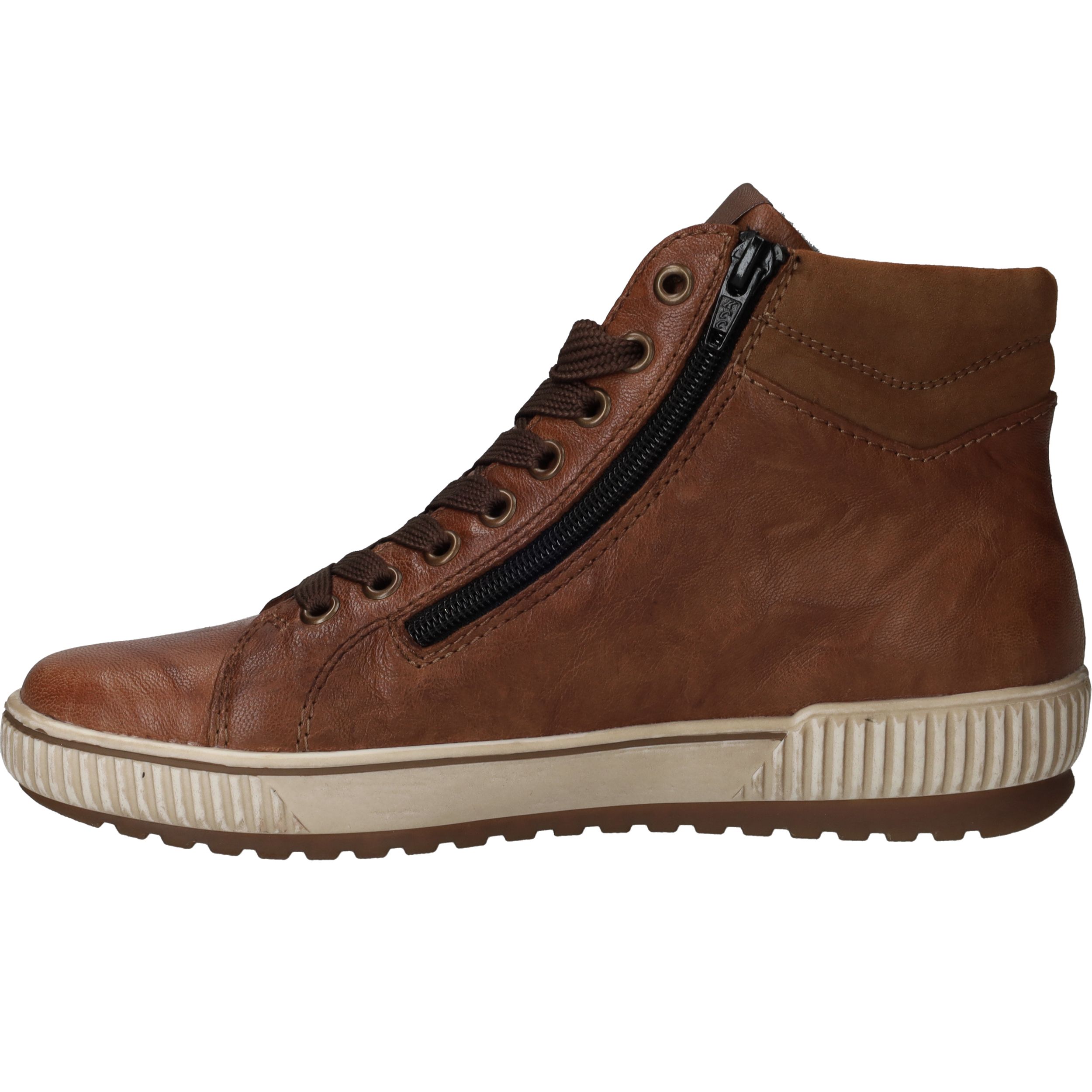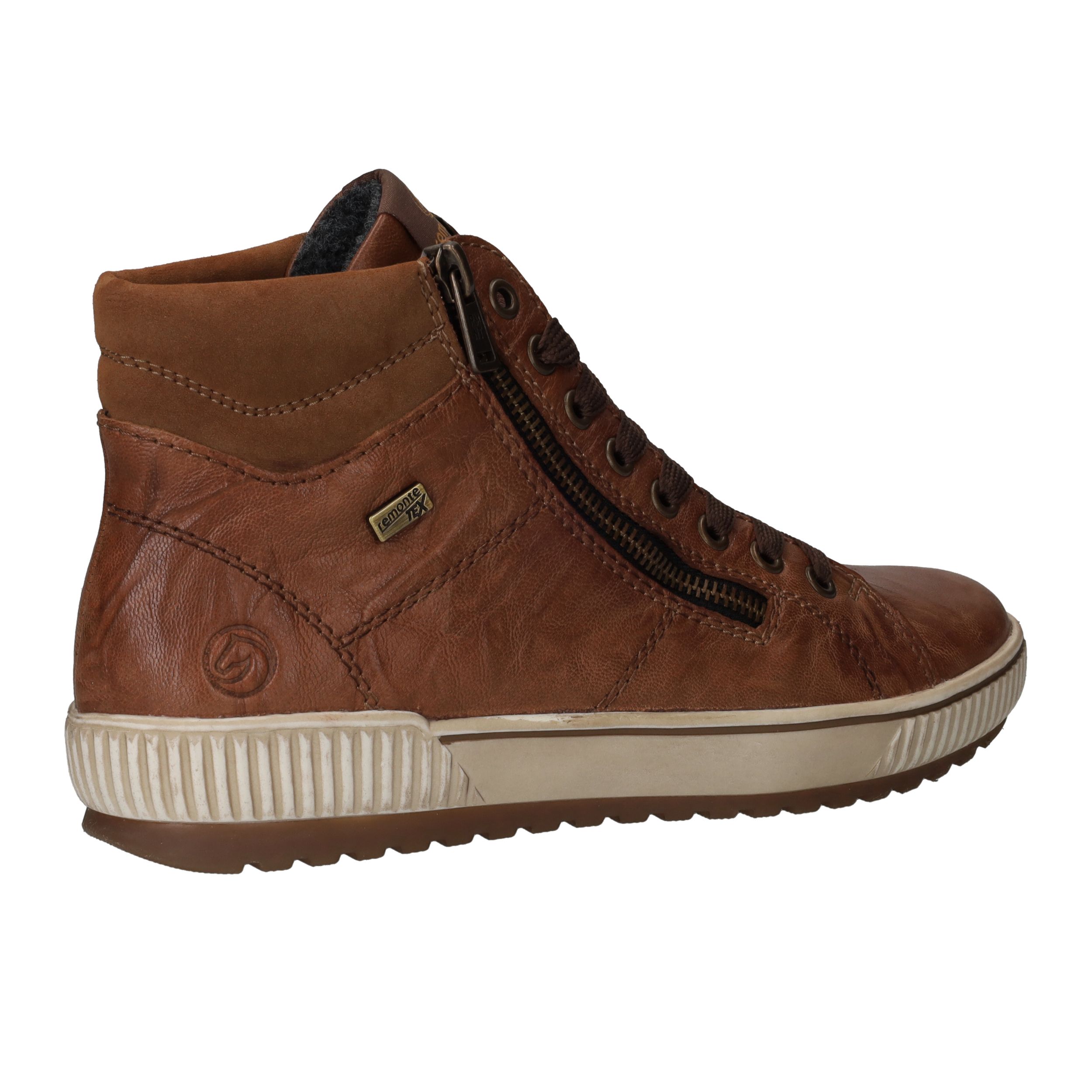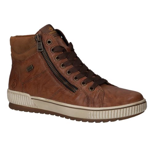 Deze bruine hoge sneaker van Remonte is een stijlvolle én functionele keuze voor het najaar. Het bovenwerk van leer en textiel biedt een fijne balans tussen stevigheid en ademend vermogen. Dankzij de ritssluiting hoef je niet telkens je veters te strikken, en het uitneembare voetbed maakt de schoen geschikt voor eigen inlegzolen.