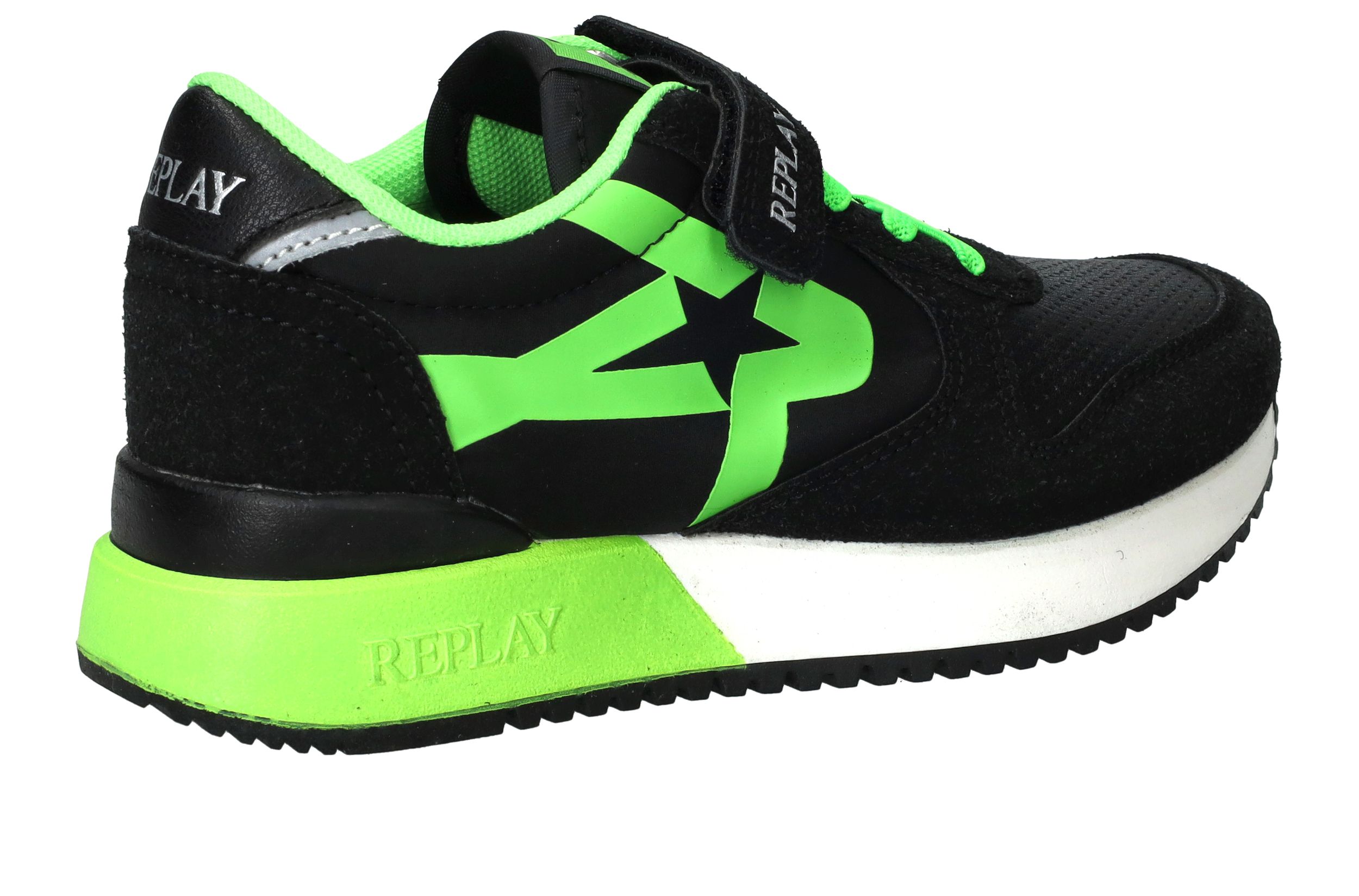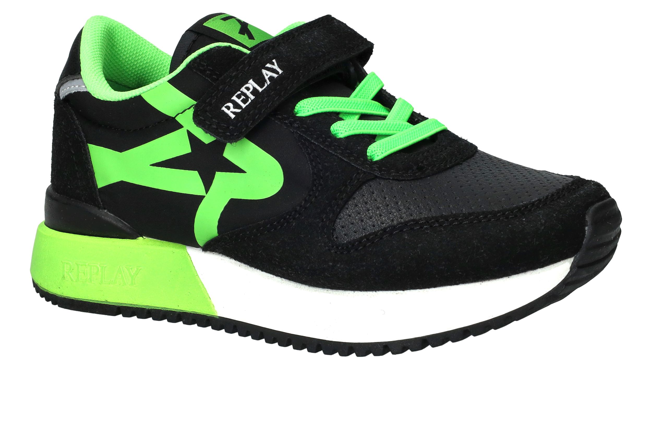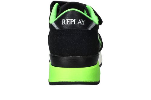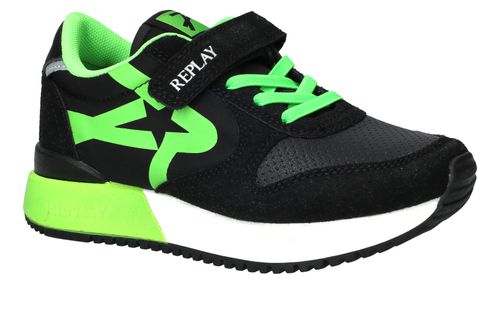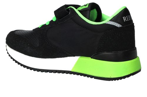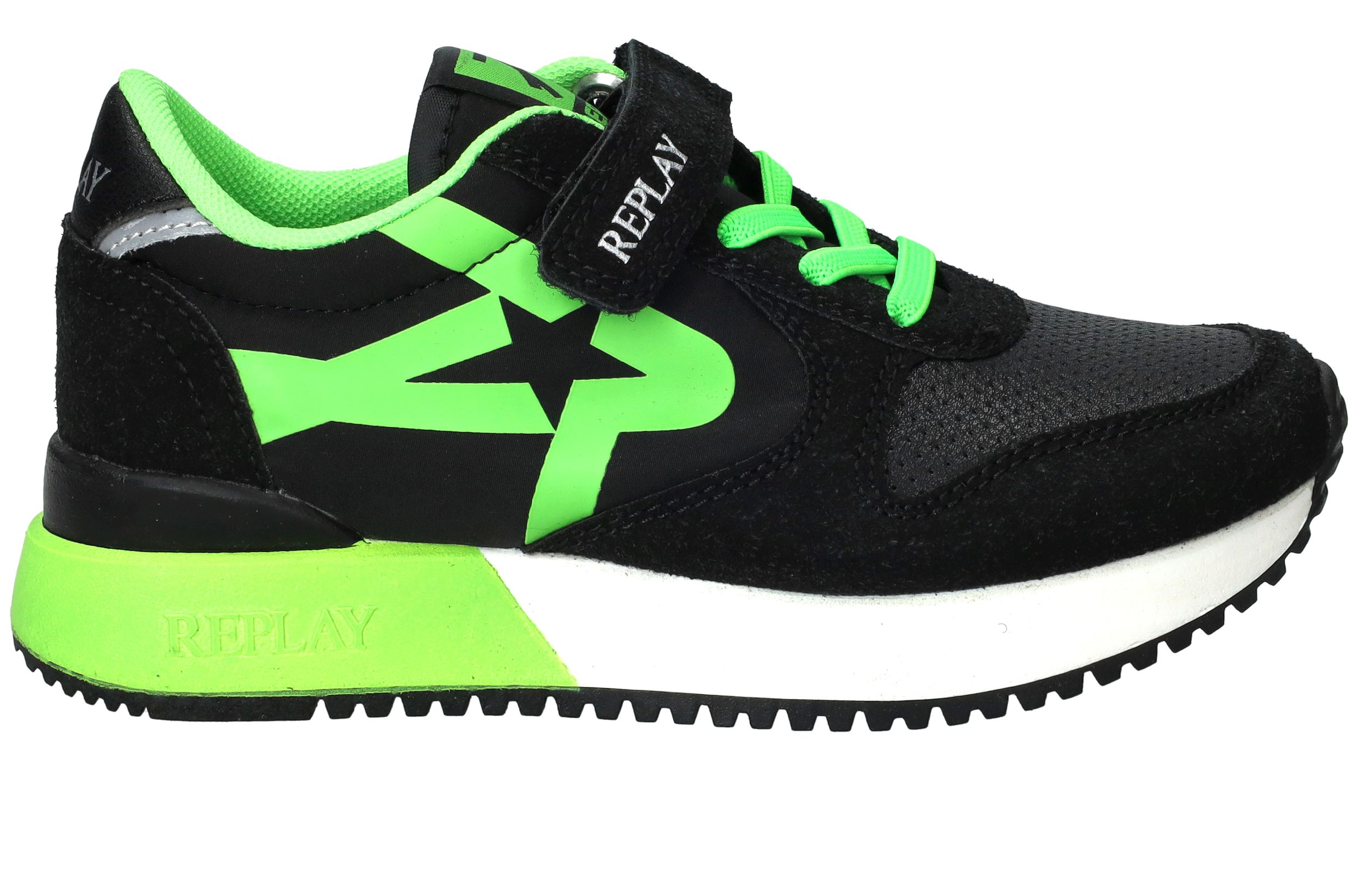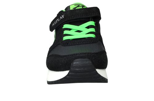 De neongroene accenten maken deze zwarte Replay Fiber JR 1 sneaker super stoer! Extra handig is de klittenbandsluiting.