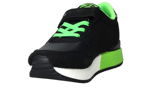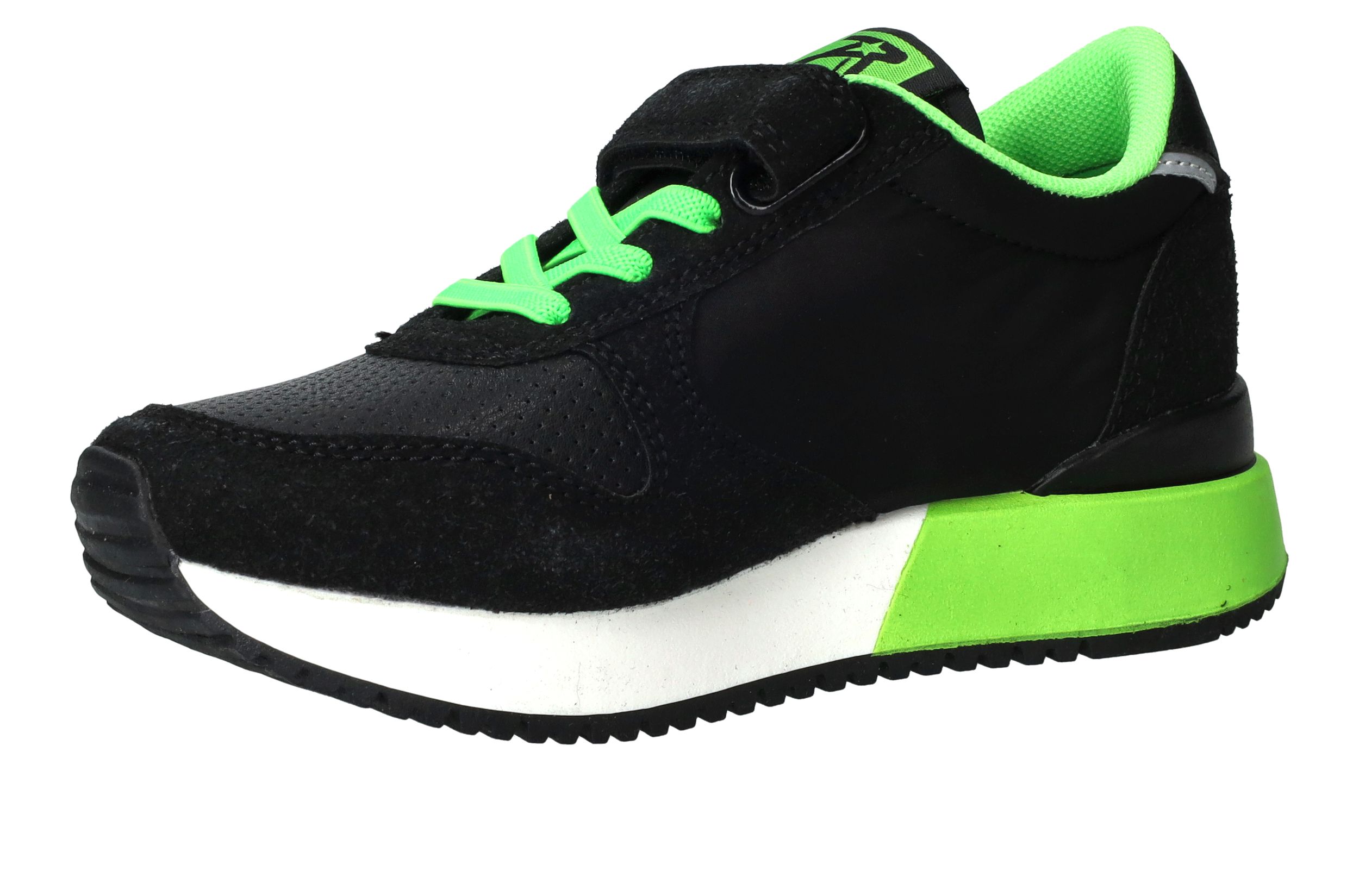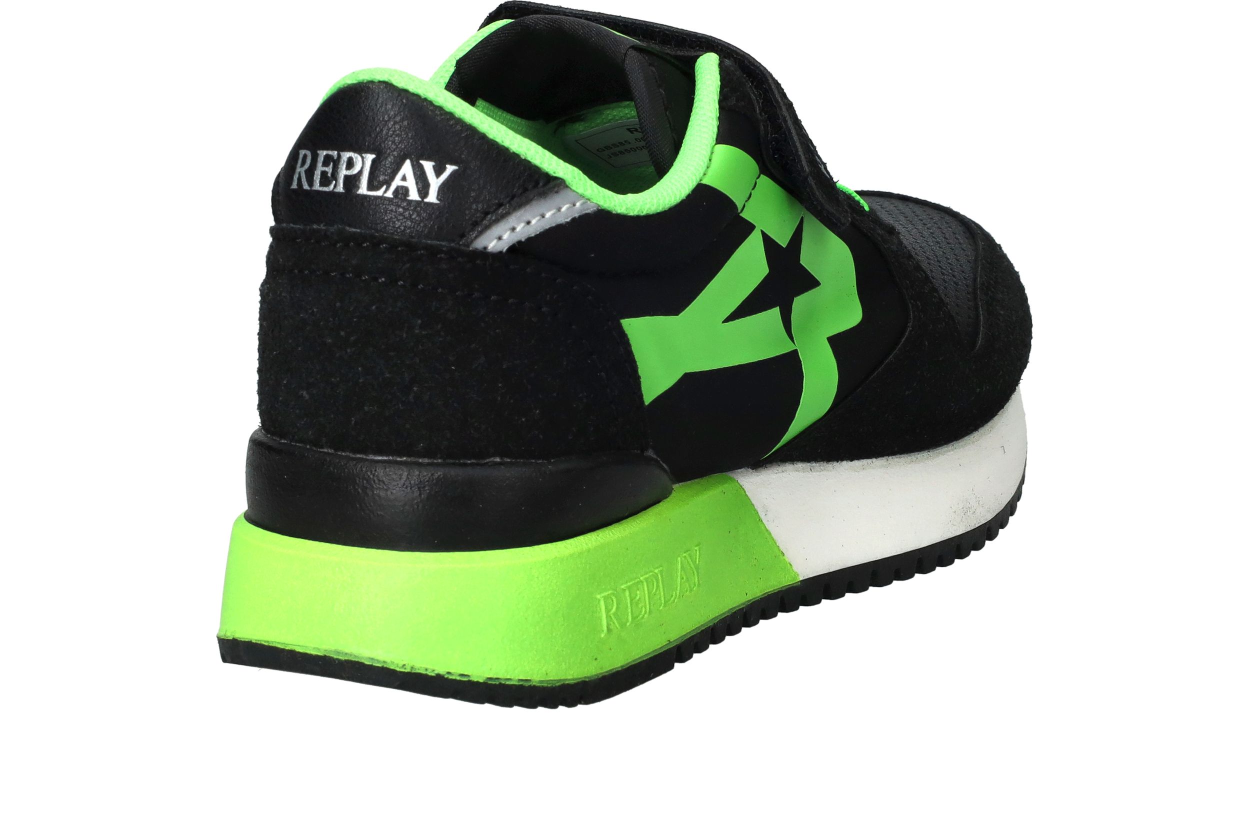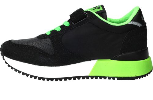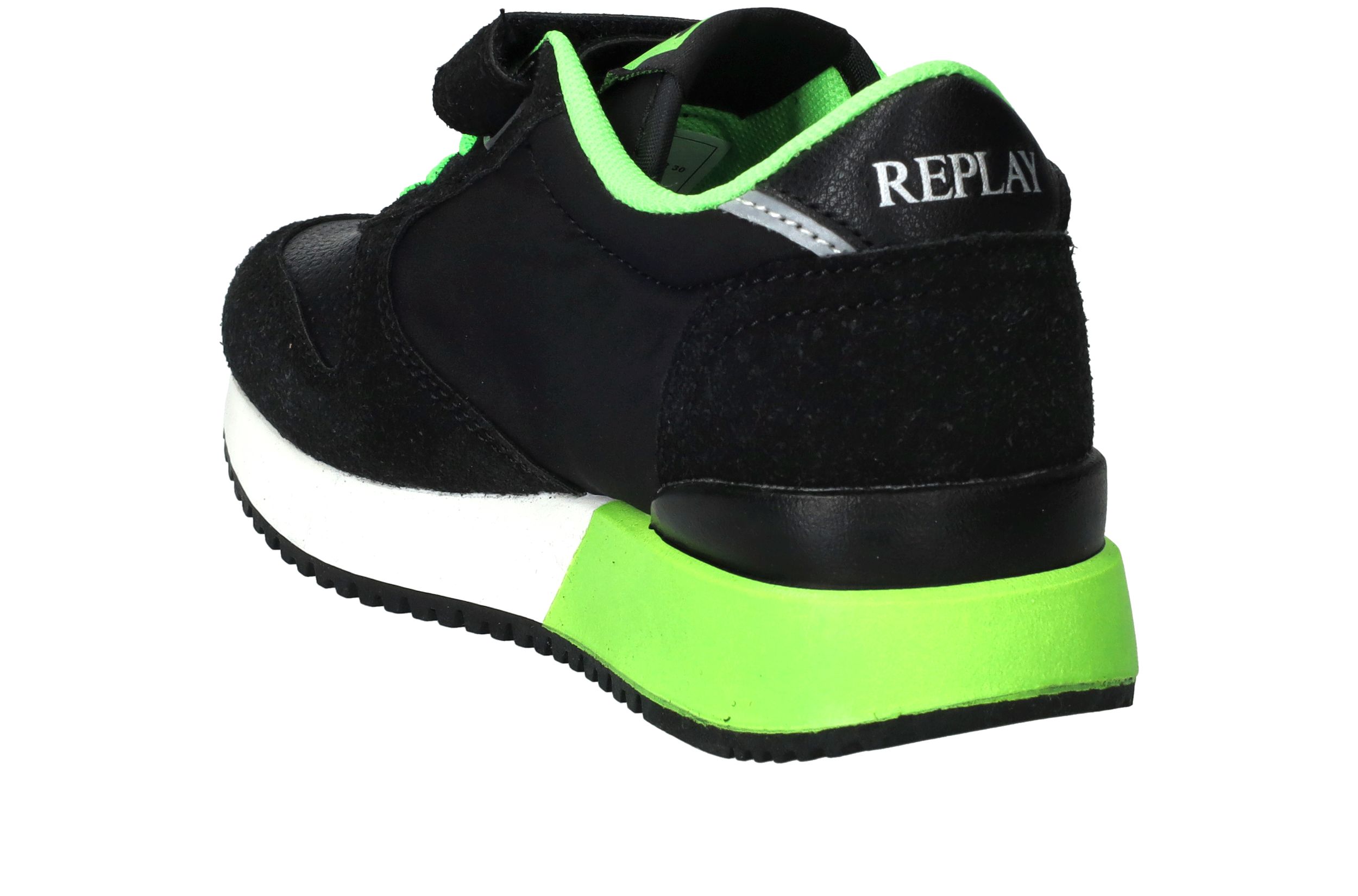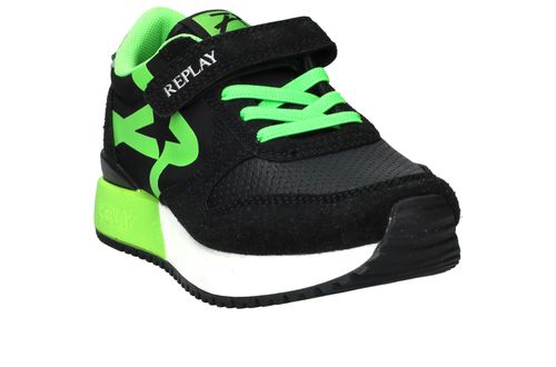 De neongroene accenten maken deze zwarte Replay Fiber JR 1 sneaker super stoer! Extra handig is de klittenbandsluiting.