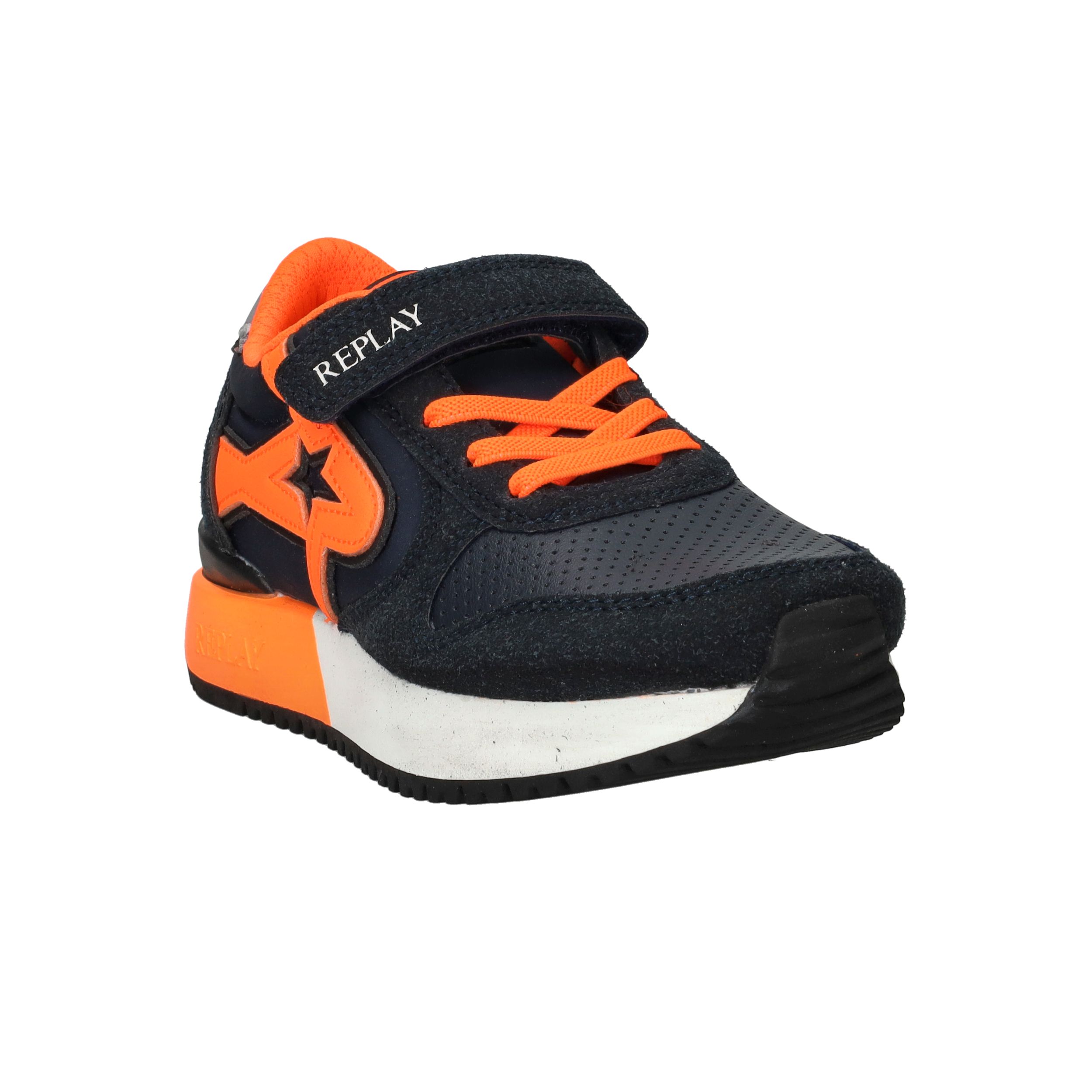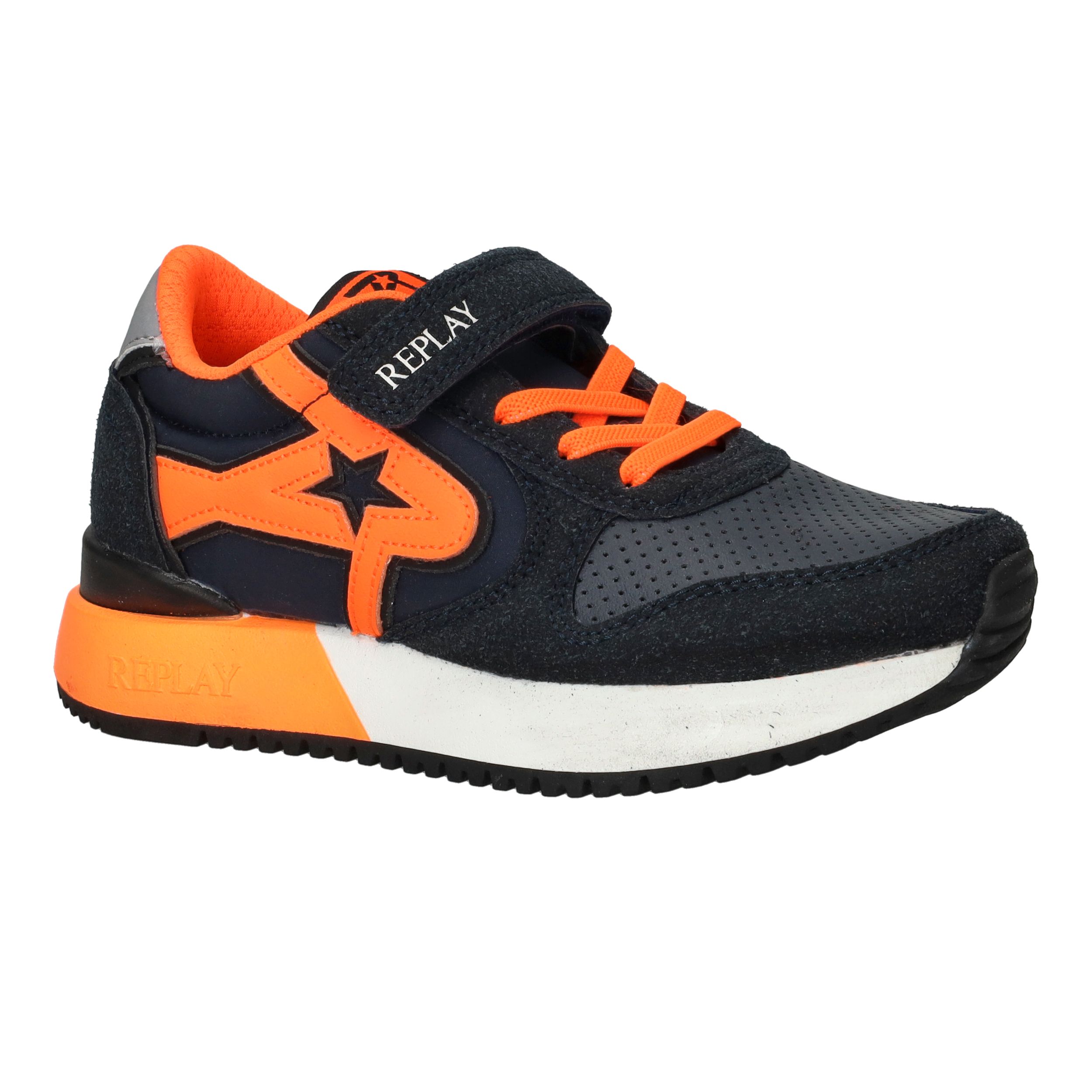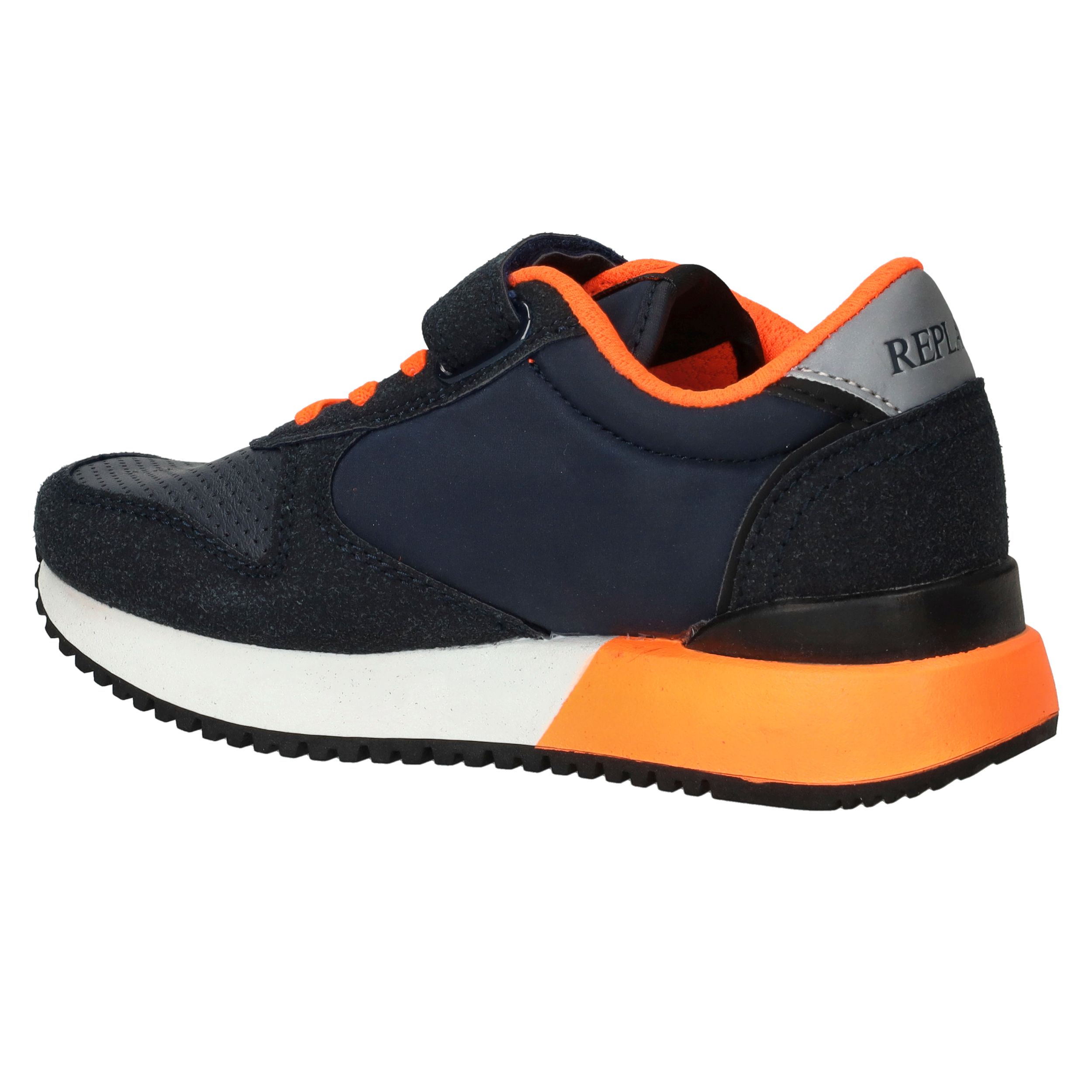 De Replay Fiber JR 7 sneaker is een stoere en comfortabele kinderschoen. Uitgevoerd in blauw met opvallende neonoranje accenten, is deze sneaker een echte blikvanger. Dankzij de combinatie van elastische veters en klittenbandsluiting is hij eenvoudig aan en uit te trekken. Het gebruik van textiel en kunstleer zorgt voor een sportieve uitstraling en langdurig draagcomfort.