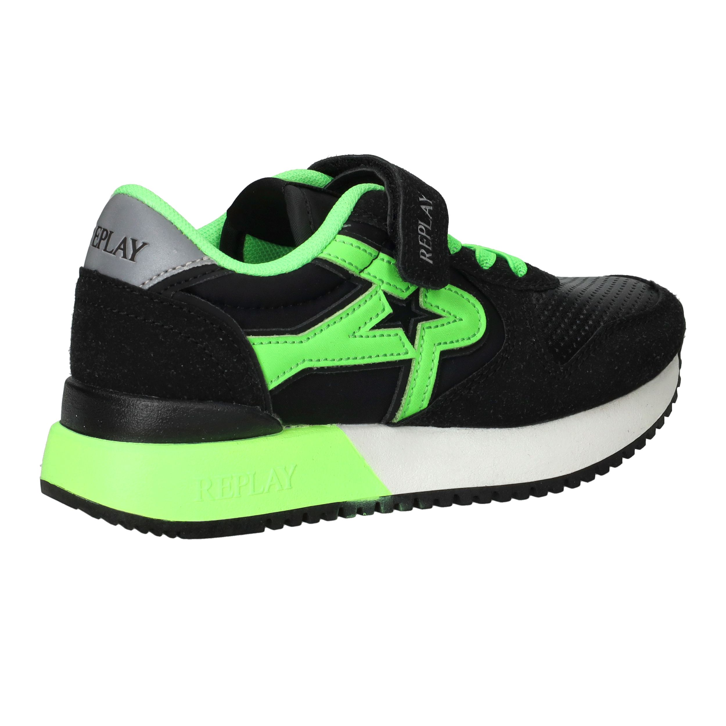 Replay Fiber JR 7 sneaker in zwart met neongroen: sportief en opvallend
