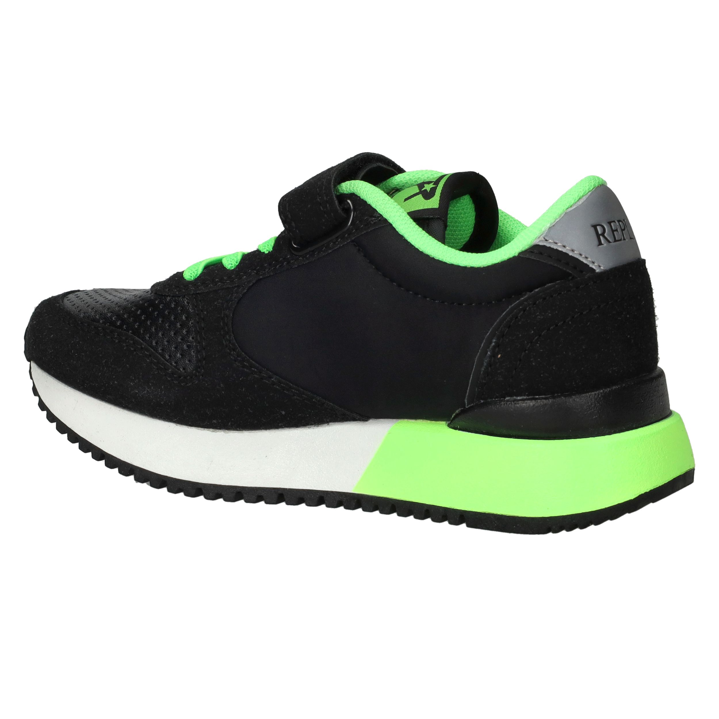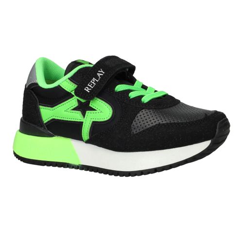 De Replay Fiber JR 7 sneaker combineert stoere looks met comfort. Uitgevoerd in zwart met opvallende neongroene accenten en een herkenbaar Replay-logo, is deze sneaker perfect voor kinderen die graag opvallen. De elastische veters en klittenbandsluiting maken het aan- en uittrekken eenvoudig, terwijl de stevige zool zorgt voor een goede grip.