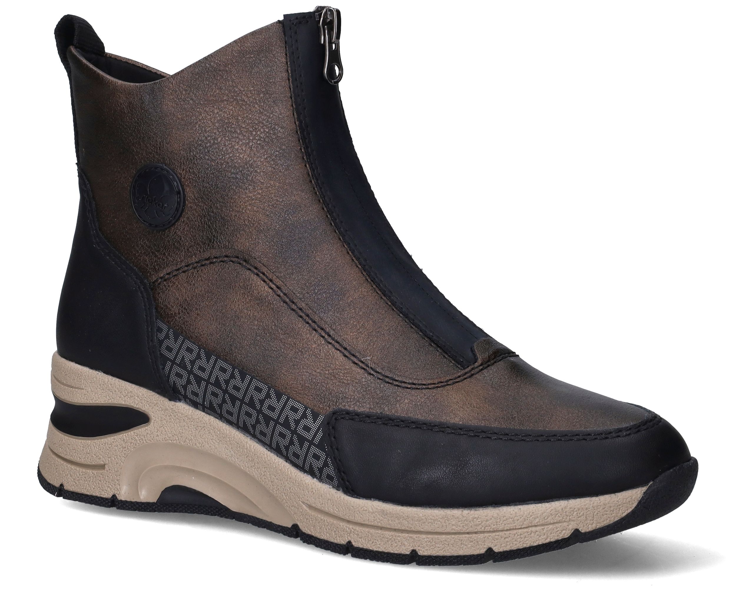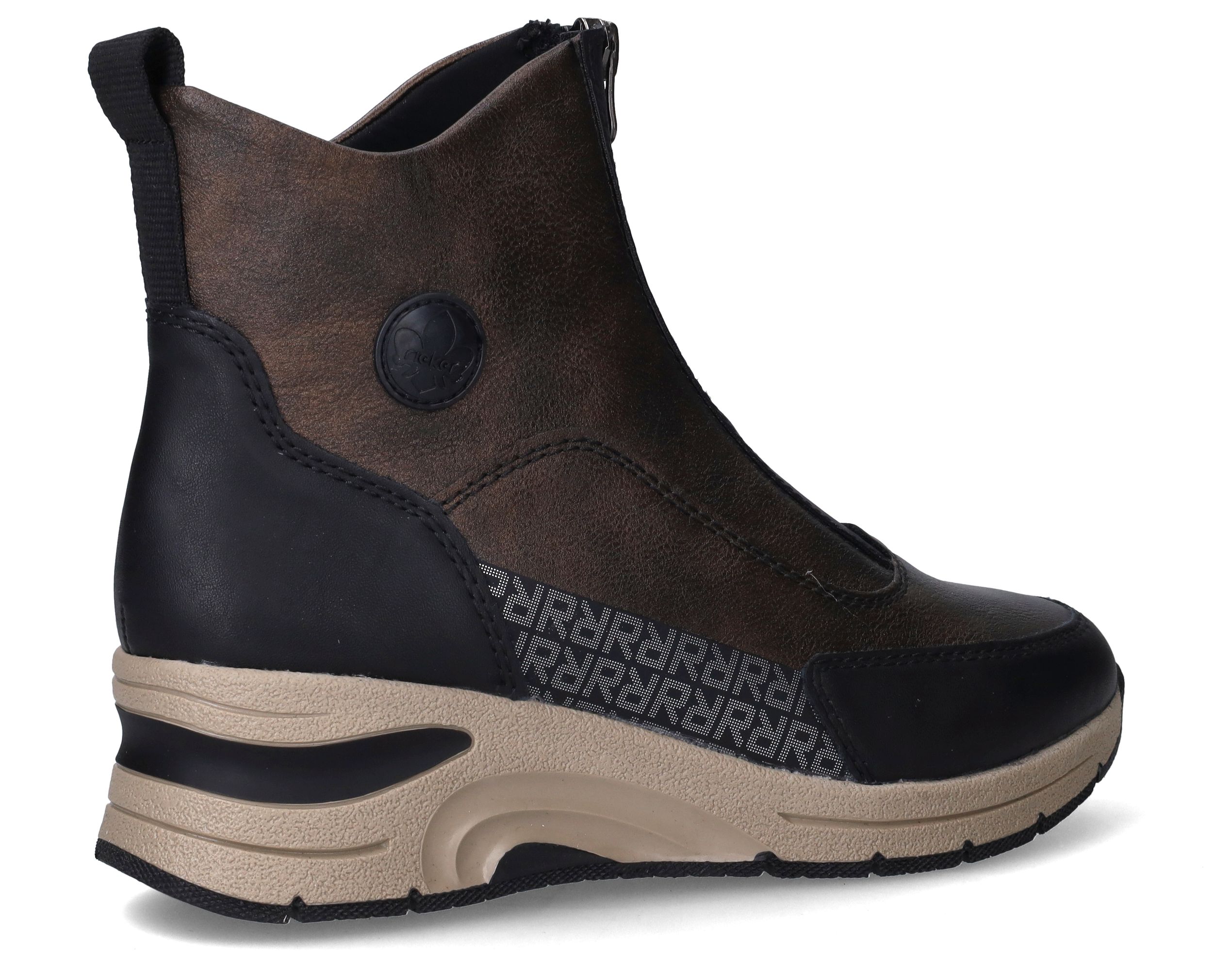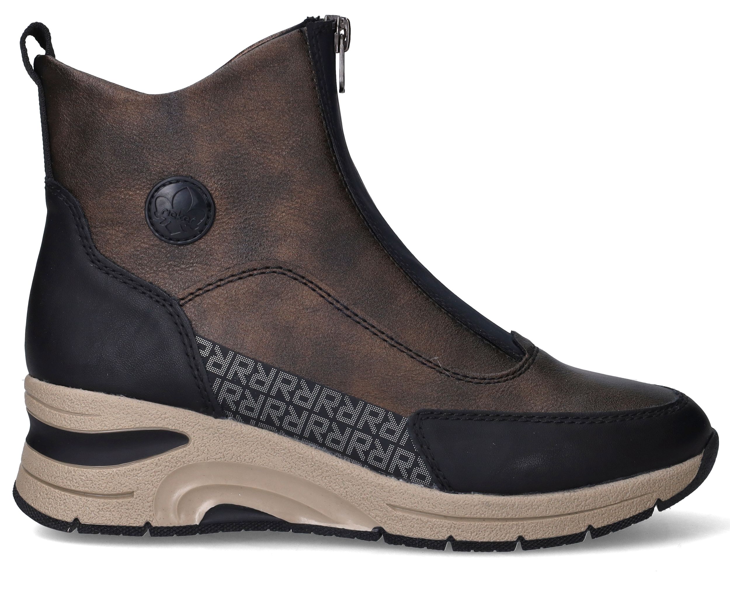 Comfort en gemak komen samen in deze moderne boots van Rieker. Deze dames schoen is uitgevoerd in soepel kunstleer en heeft een sportieve uitstraling door de dynamische zool en gestroomlijnd ontwerp. De combinatie van bruin met zwarte accenten geeft deze boot een eigentijdse look die perfect past bij je dagelijkse outfits.