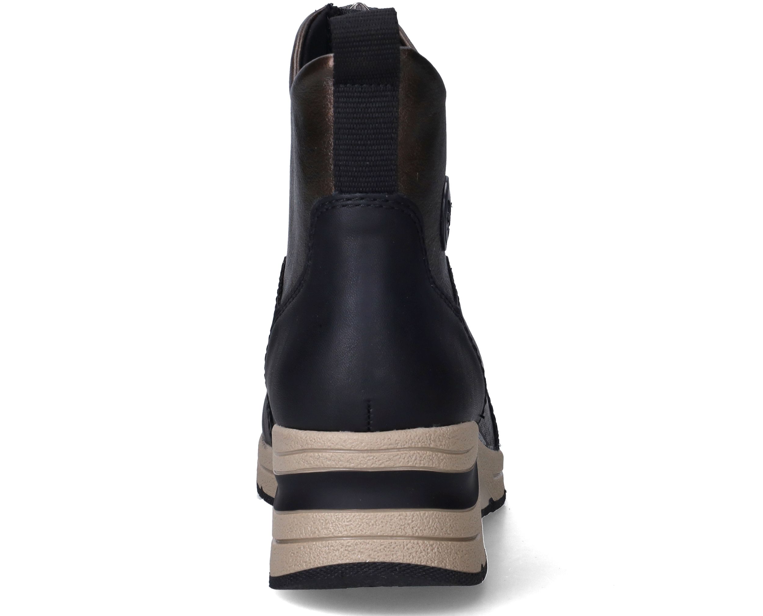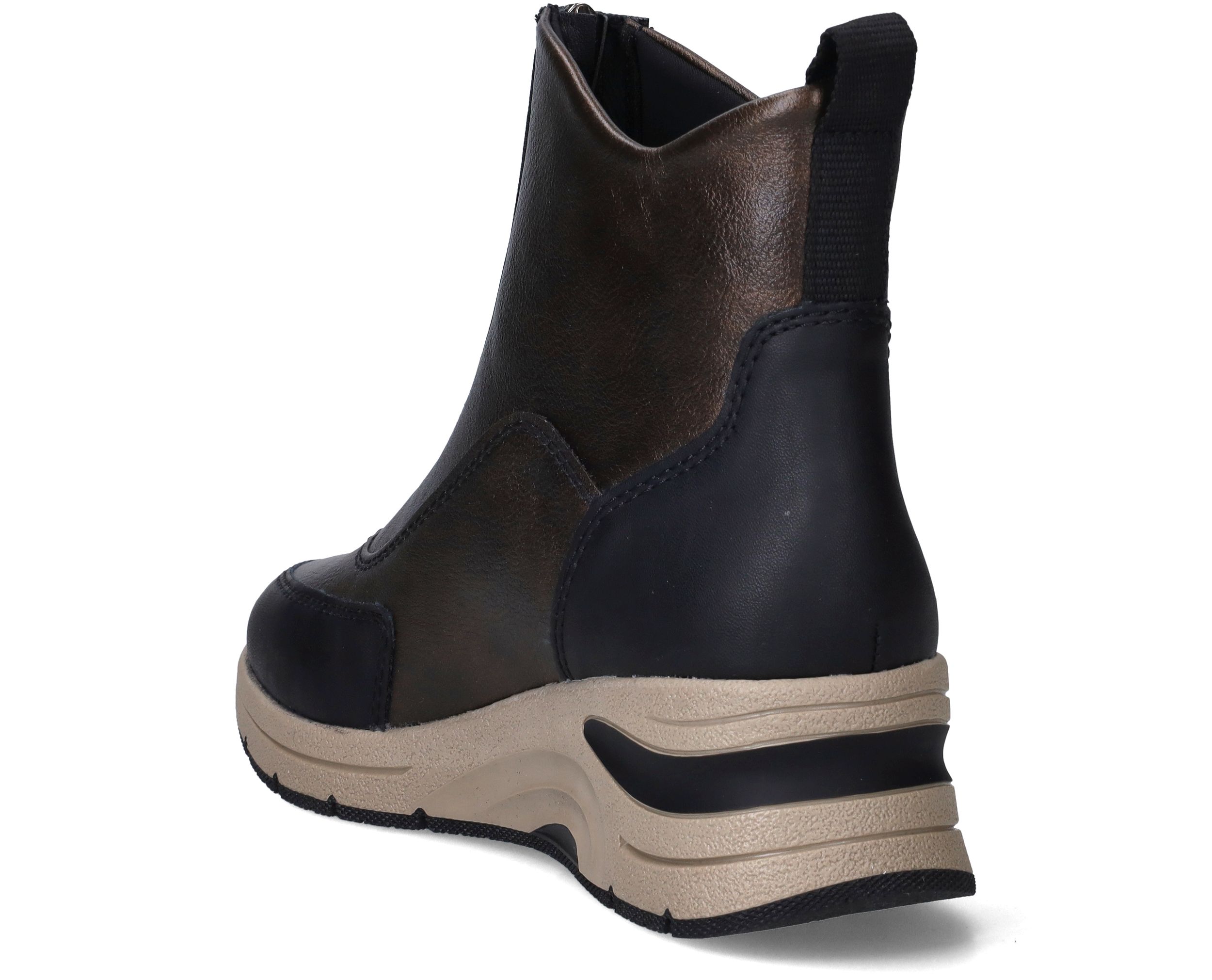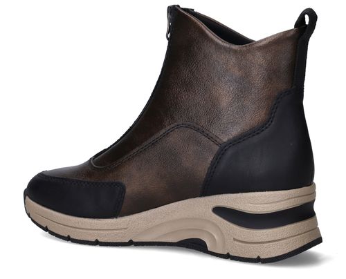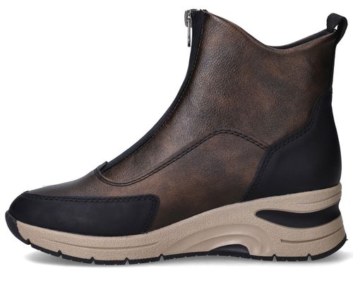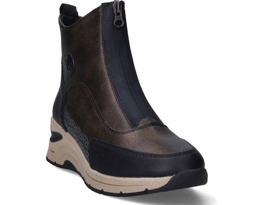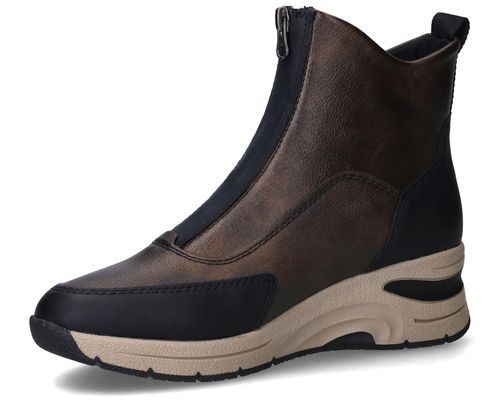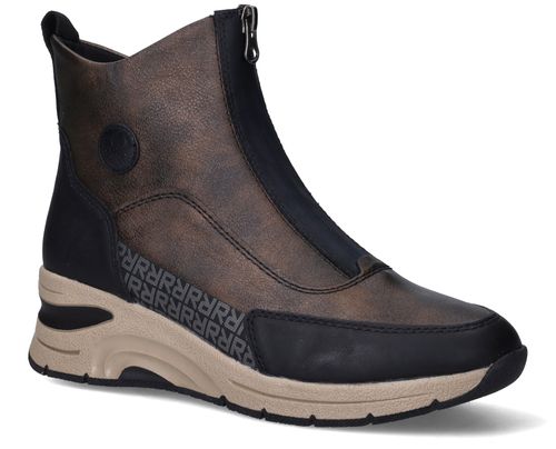 Comfort en gemak komen samen in deze moderne boots van Rieker. Deze dames schoen is uitgevoerd in soepel kunstleer en heeft een sportieve uitstraling door de dynamische zool en gestroomlijnd ontwerp. De combinatie van bruin met zwarte accenten geeft deze boot een eigentijdse look die perfect past bij je dagelijkse outfits.