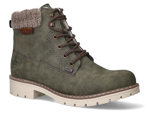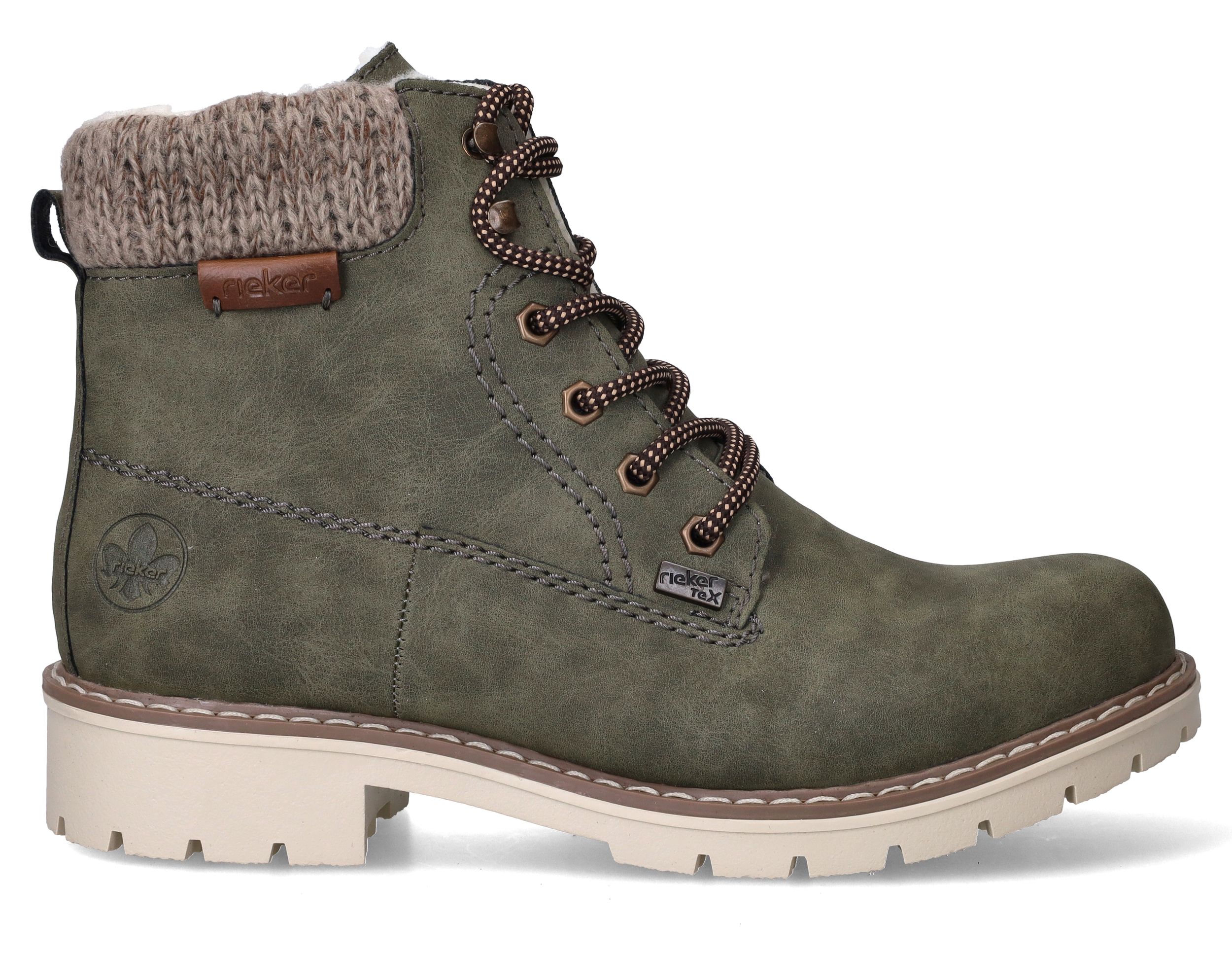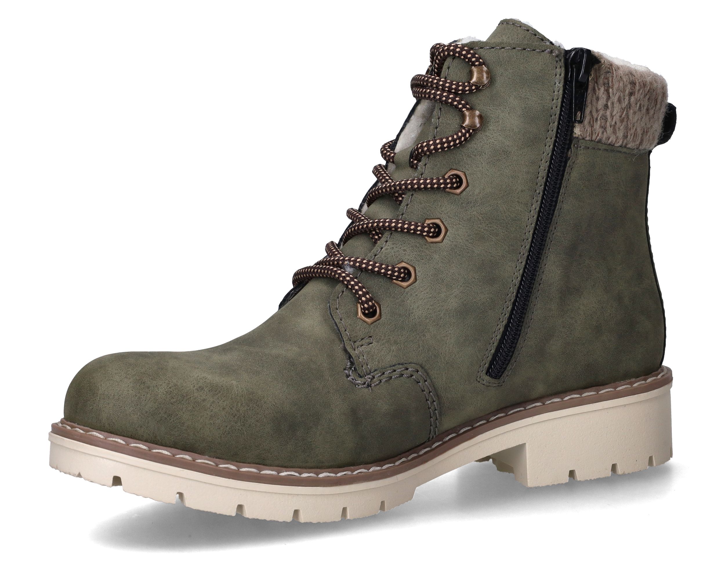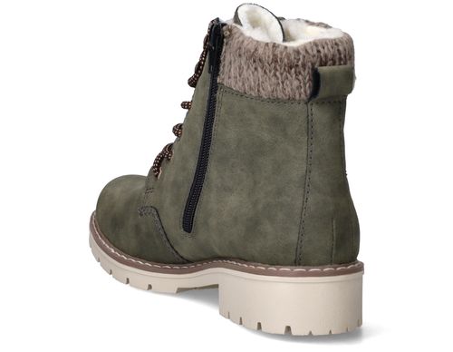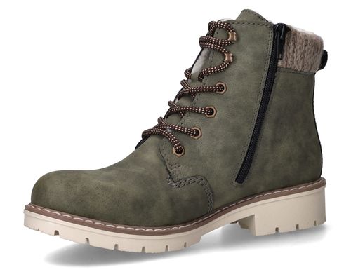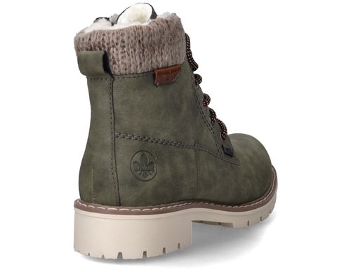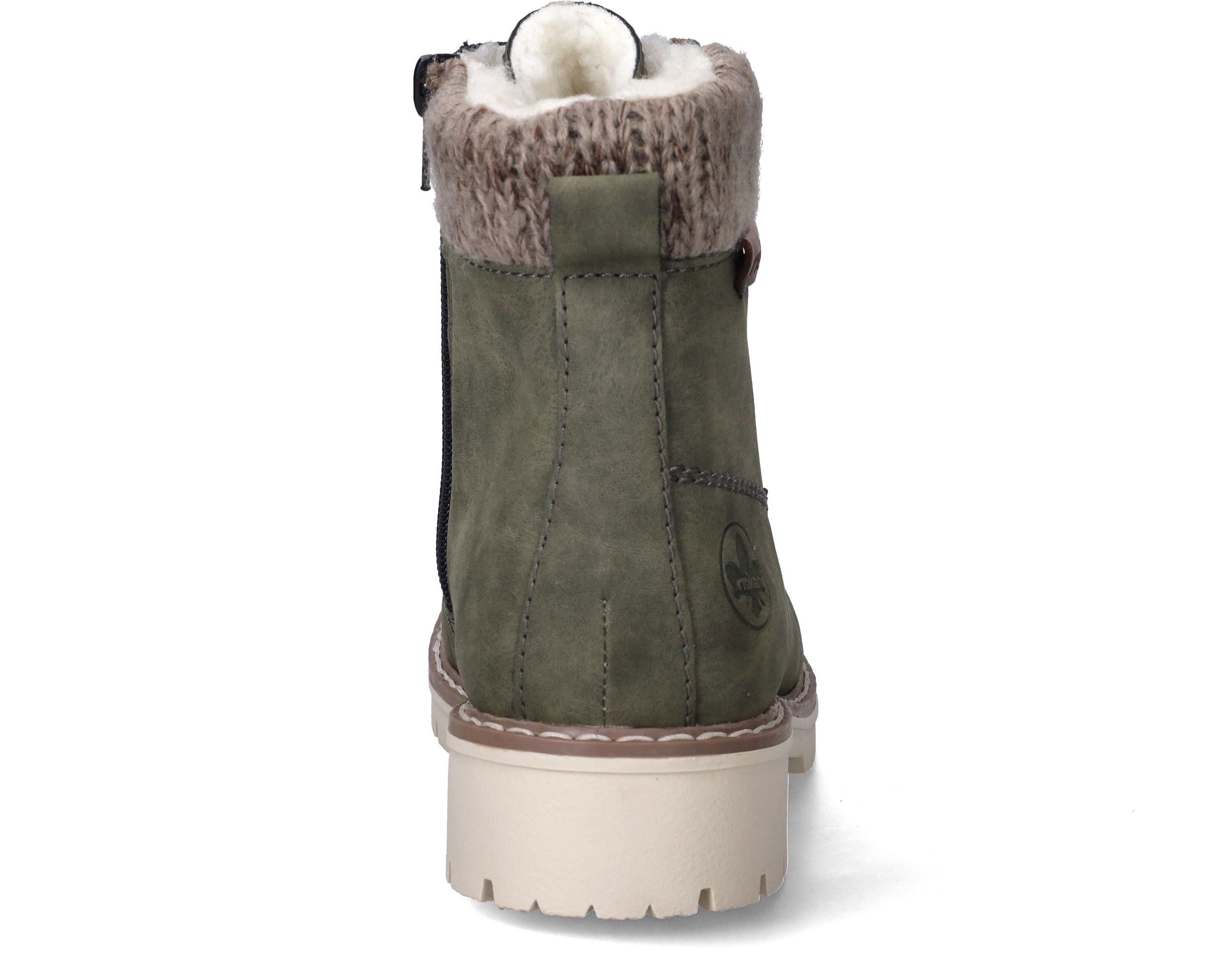 Deze modieuze Rieker boots in stijlvol olijfgroen combineren warmte, comfort en een eigentijdse uitstraling. Dankzij de voetbreedte F1/2 geniet je van net dat beetje extra ruimte, terwijl de zachte voering je voeten heerlijk warm houdt tijdens koude dagen. Het gebreide detail aan de enkel geeft de schoen een gezellige winterlook die moeiteloos te combineren is met zowel casual als outdoor outfits.