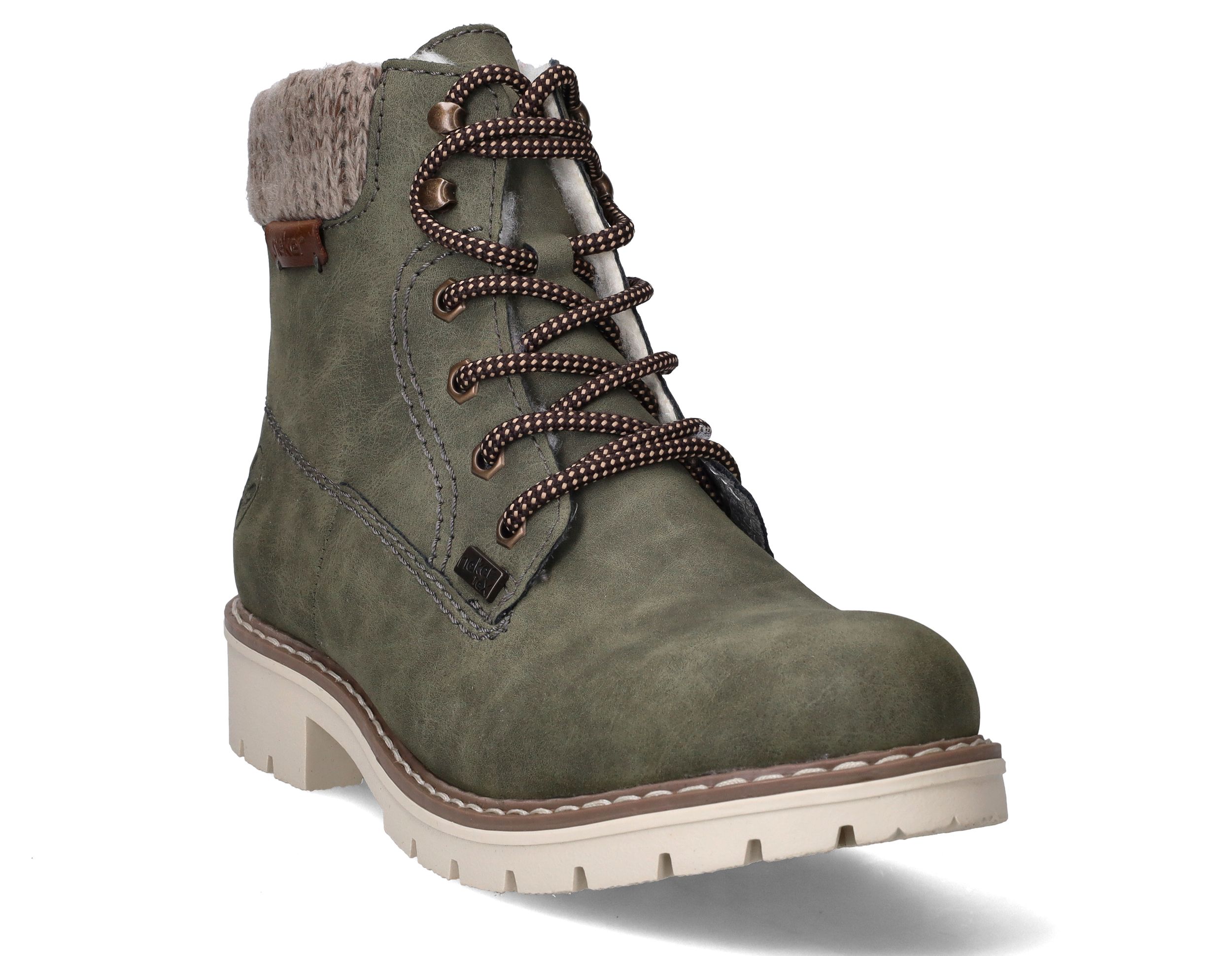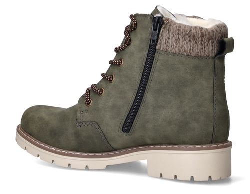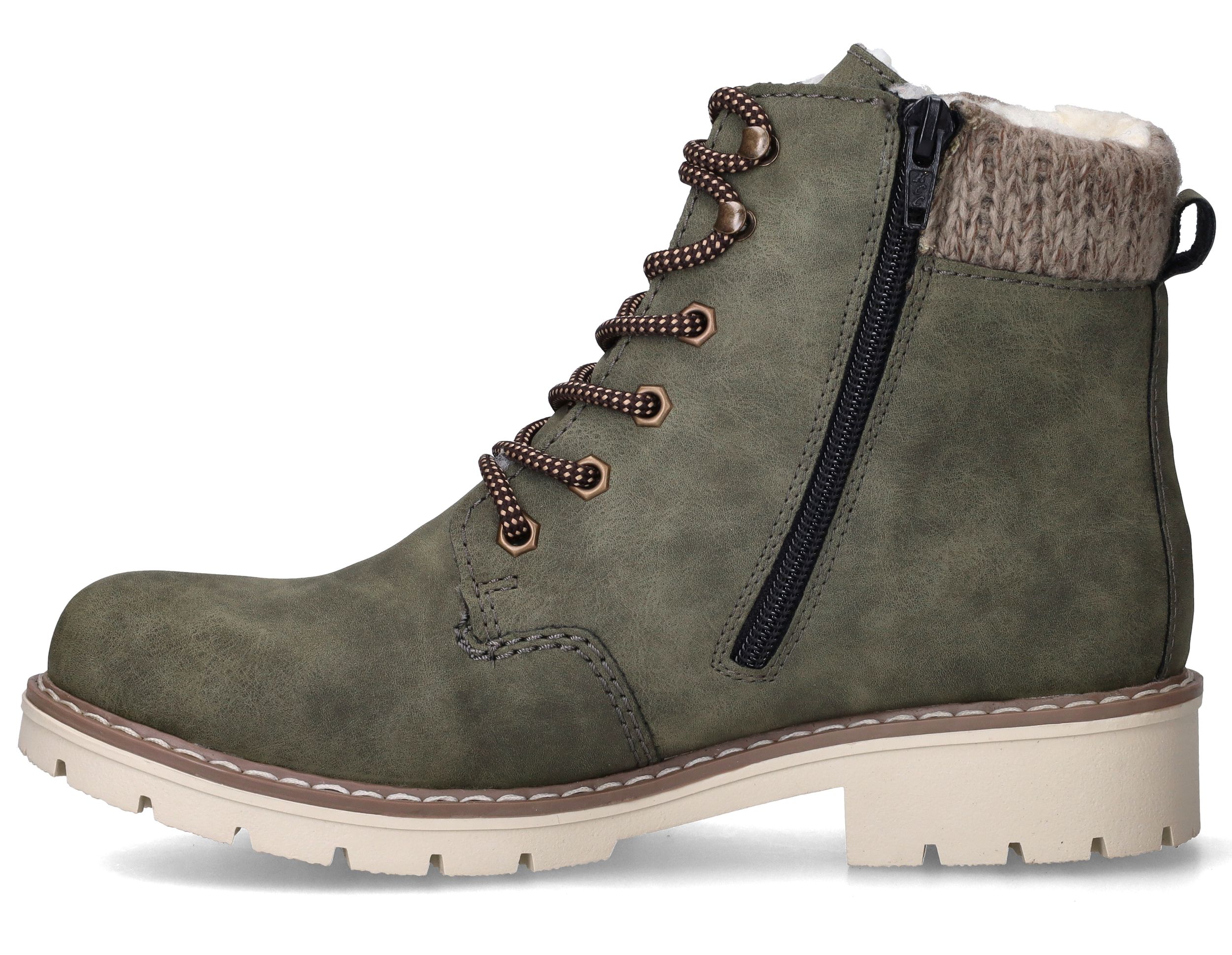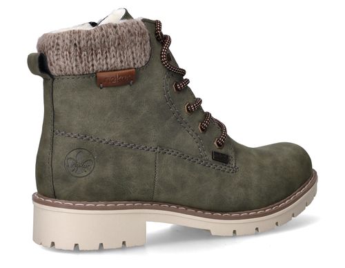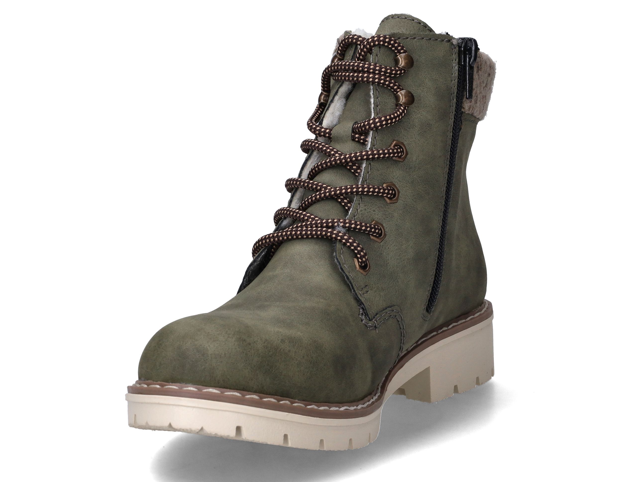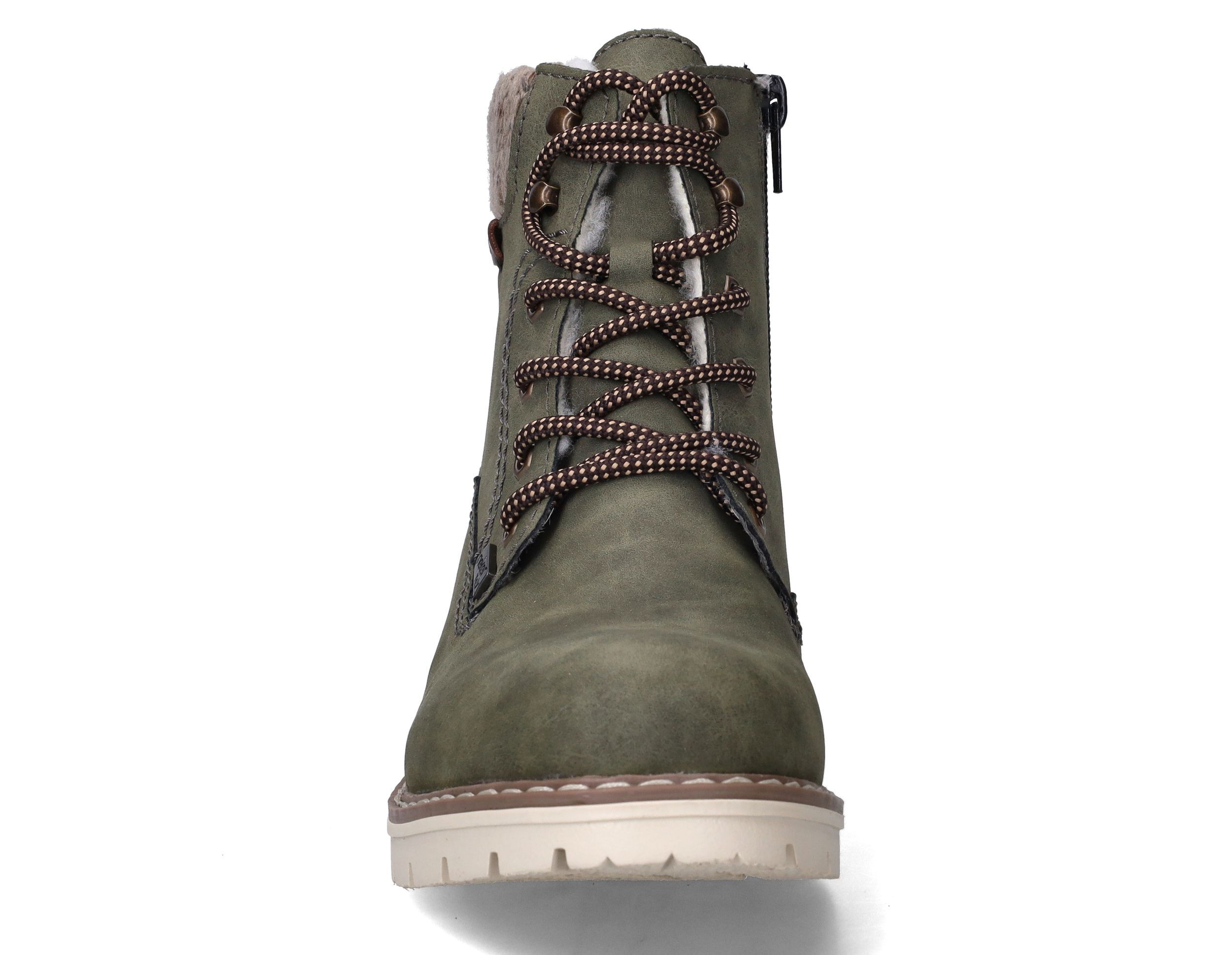 Deze modieuze Rieker boots in stijlvol olijfgroen combineren warmte, comfort en een eigentijdse uitstraling. Dankzij de voetbreedte F1/2 geniet je van net dat beetje extra ruimte, terwijl de zachte voering je voeten heerlijk warm houdt tijdens koude dagen. Het gebreide detail aan de enkel geeft de schoen een gezellige winterlook die moeiteloos te combineren is met zowel casual als outdoor outfits.