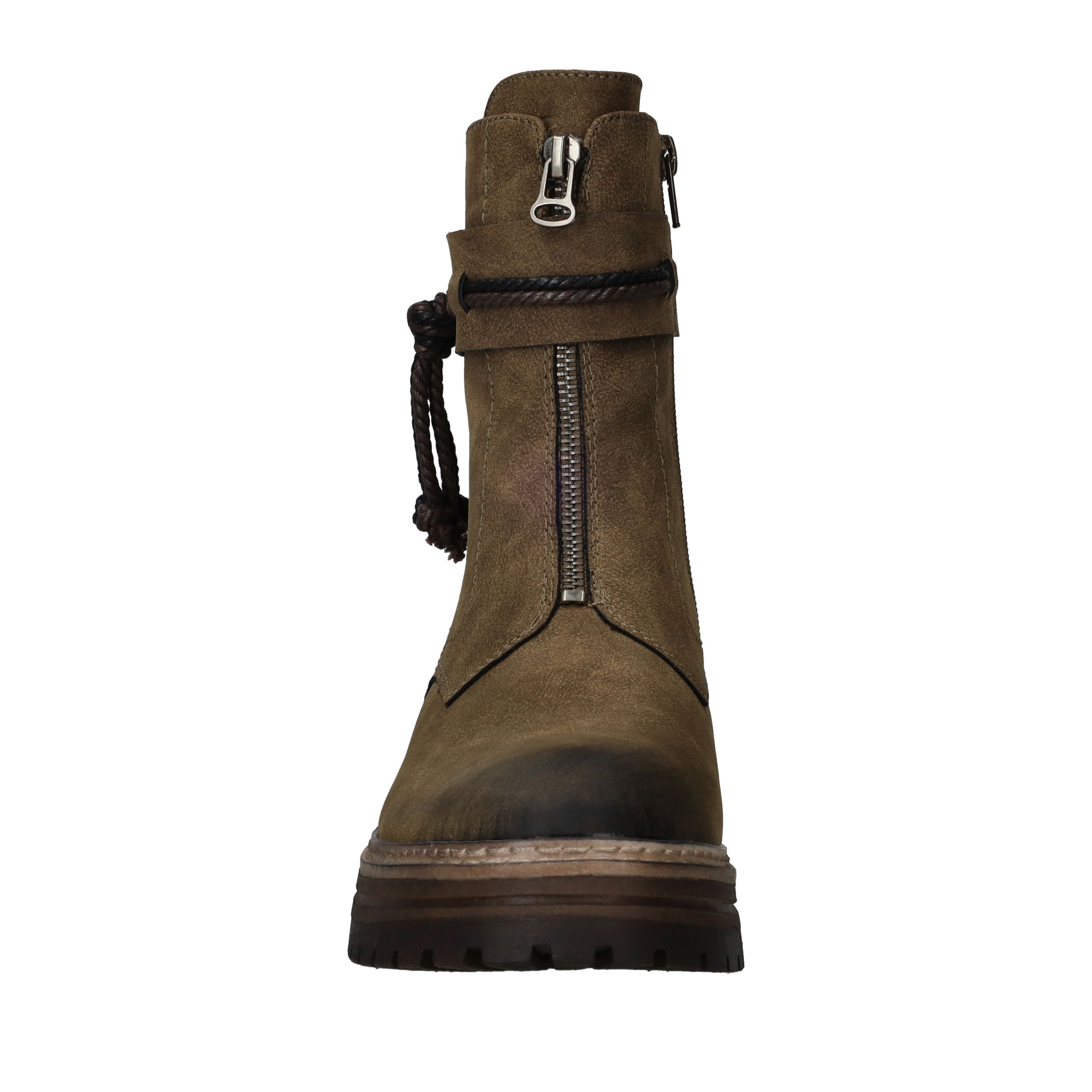 De Rieker boot voor dames is een perfecte mix van warmte, comfort en stijl. Deze modieuze laars is uitgevoerd in sterk kunstleer en heeft een zachte voering van textiel en synthetisch materiaal die je voeten heerlijk warm houdt. De decoratieve veter rondom de enkel geeft een speelse en vrouwelijke touch, terwijl de stevige profielzool zorgt voor uitstekende grip. Ideaal voor koude dagen waarop comfort en mode hand in hand gaan.