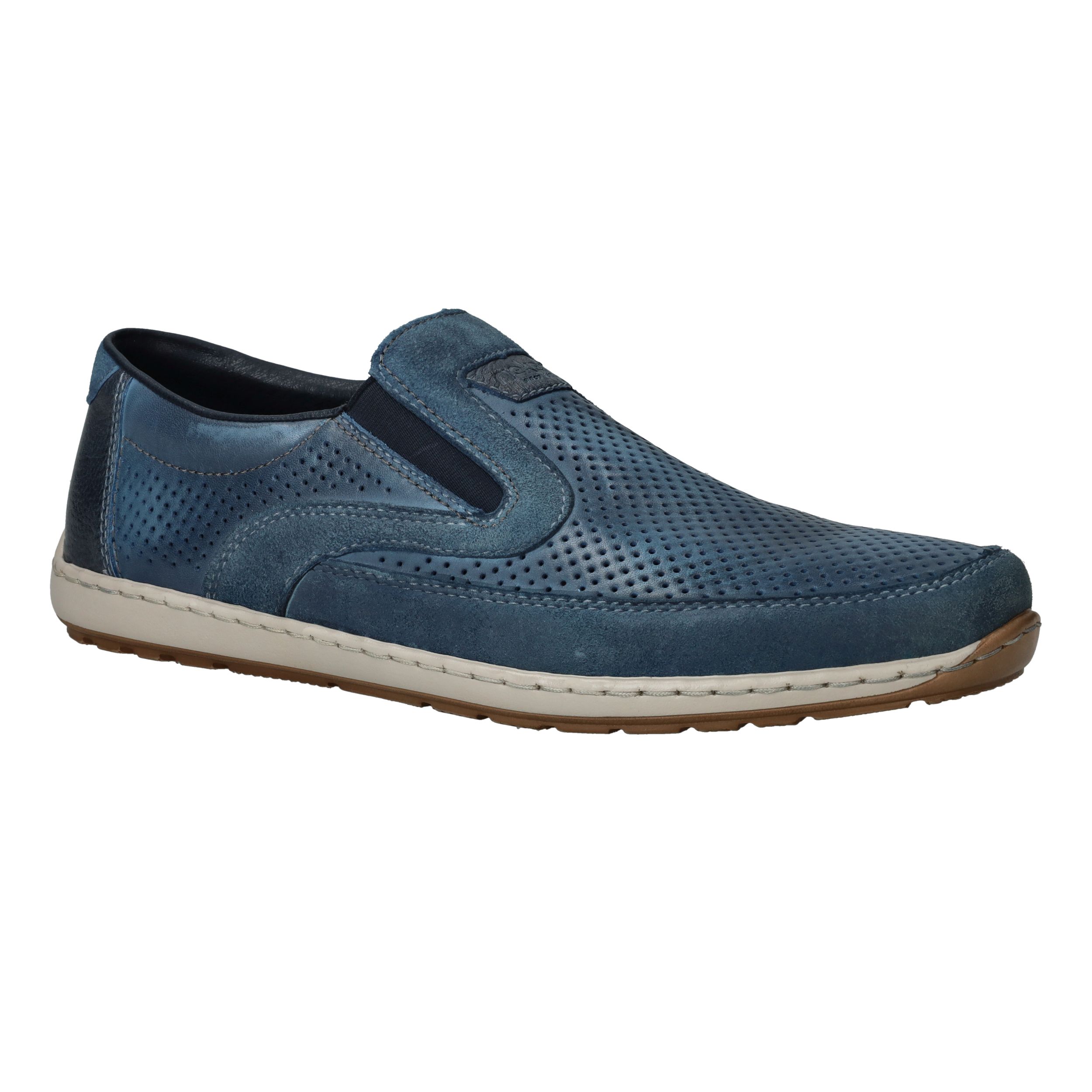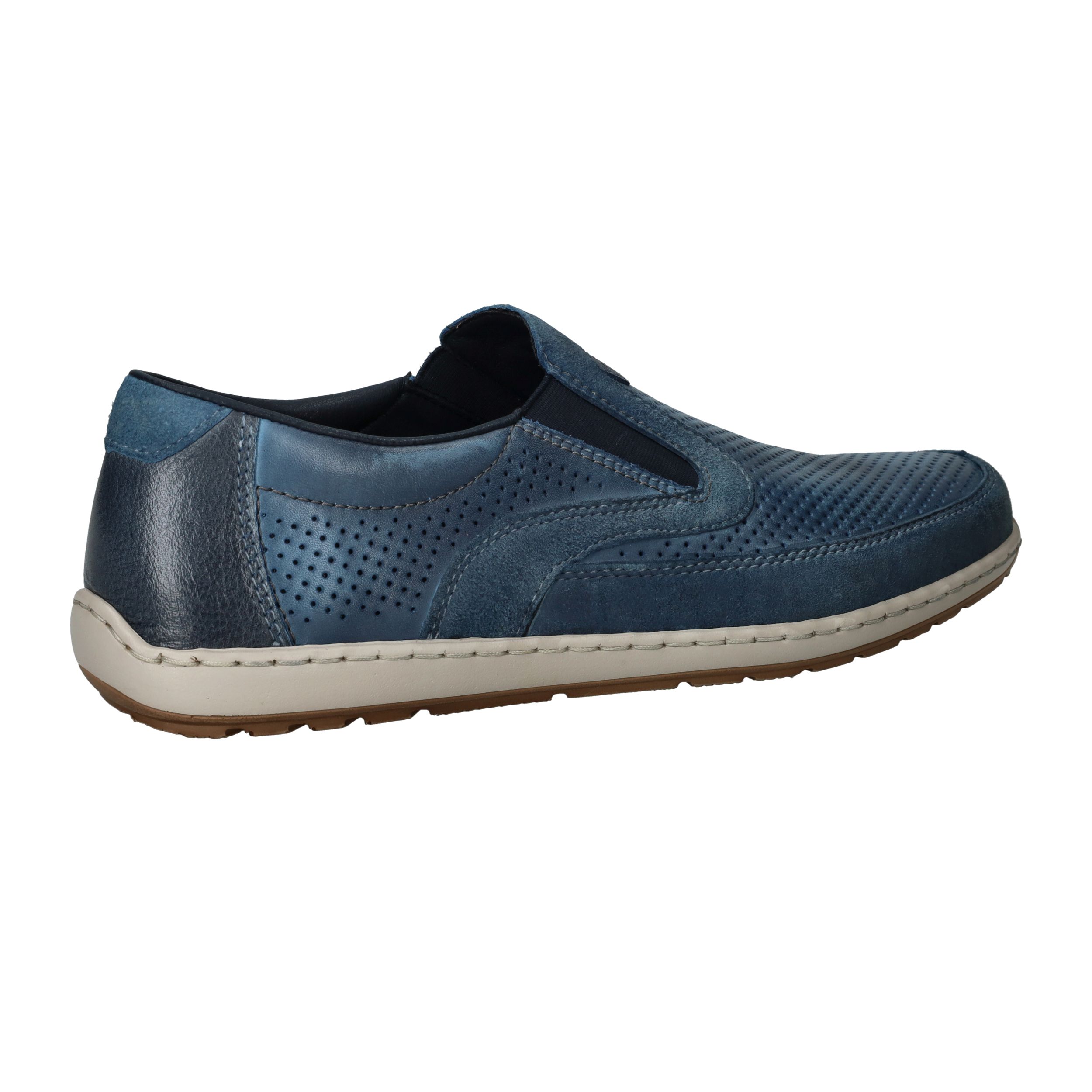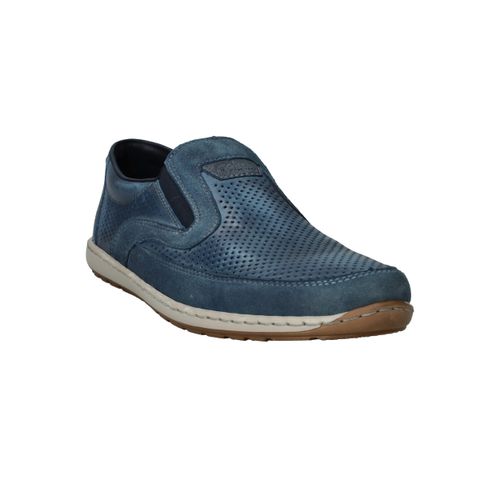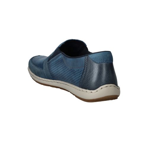 Op zoek naar stijlvolle en luchtige heren mocassins voor warme dagen? Deze blauwe Rieker mocassins combineren moeiteloos comfort en elegantie. Dankzij het zachte leer en de perforaties aan de wreef en zijkanten zijn deze mocassins ademend en ideaal voor zomerse uitstapjes. Met hun flexibele zool en makkelijke instap ben je verzekerd van comfort bij elke stap.