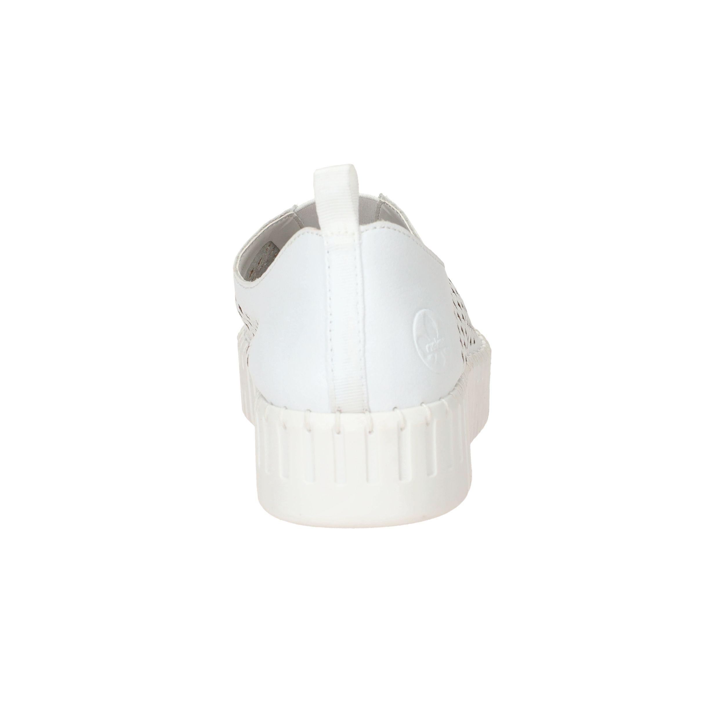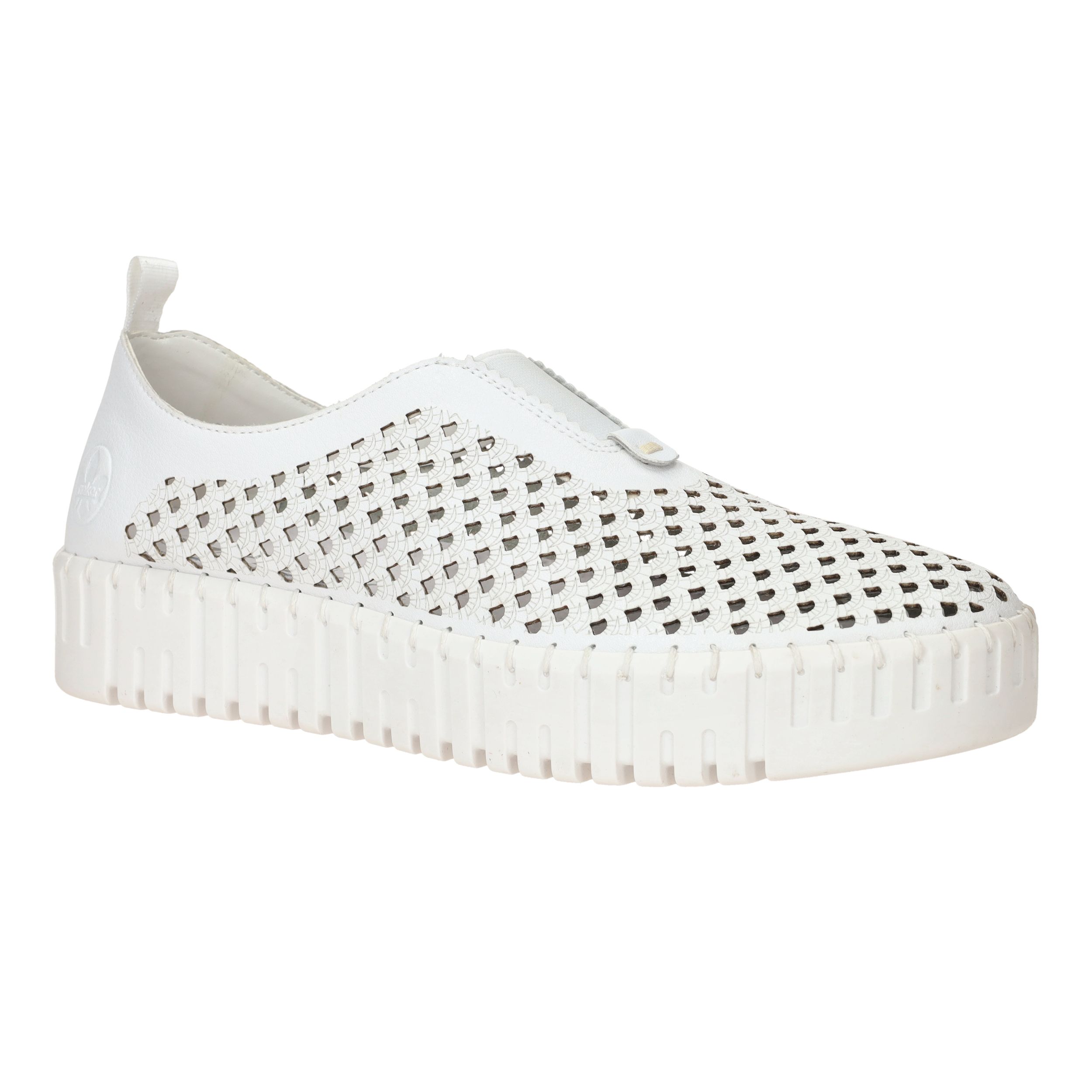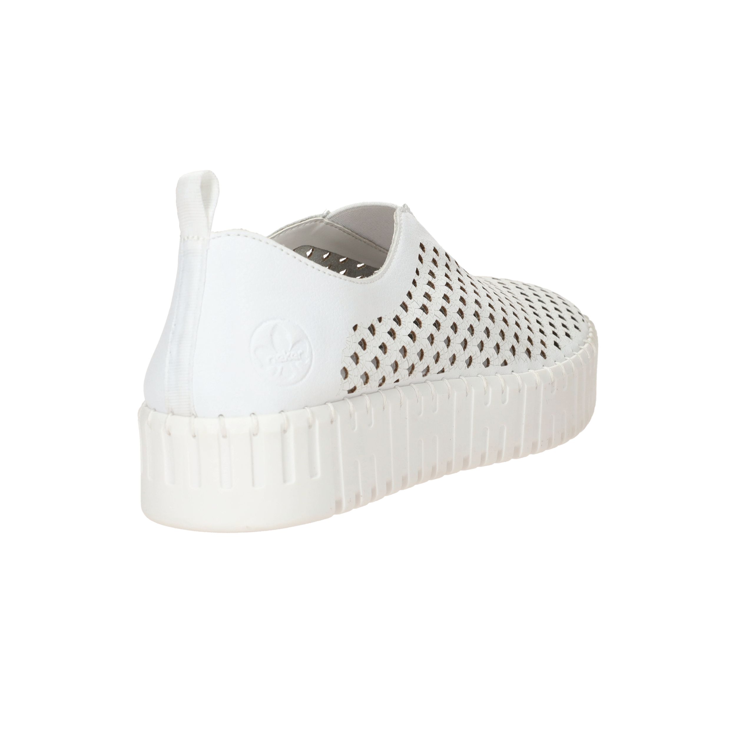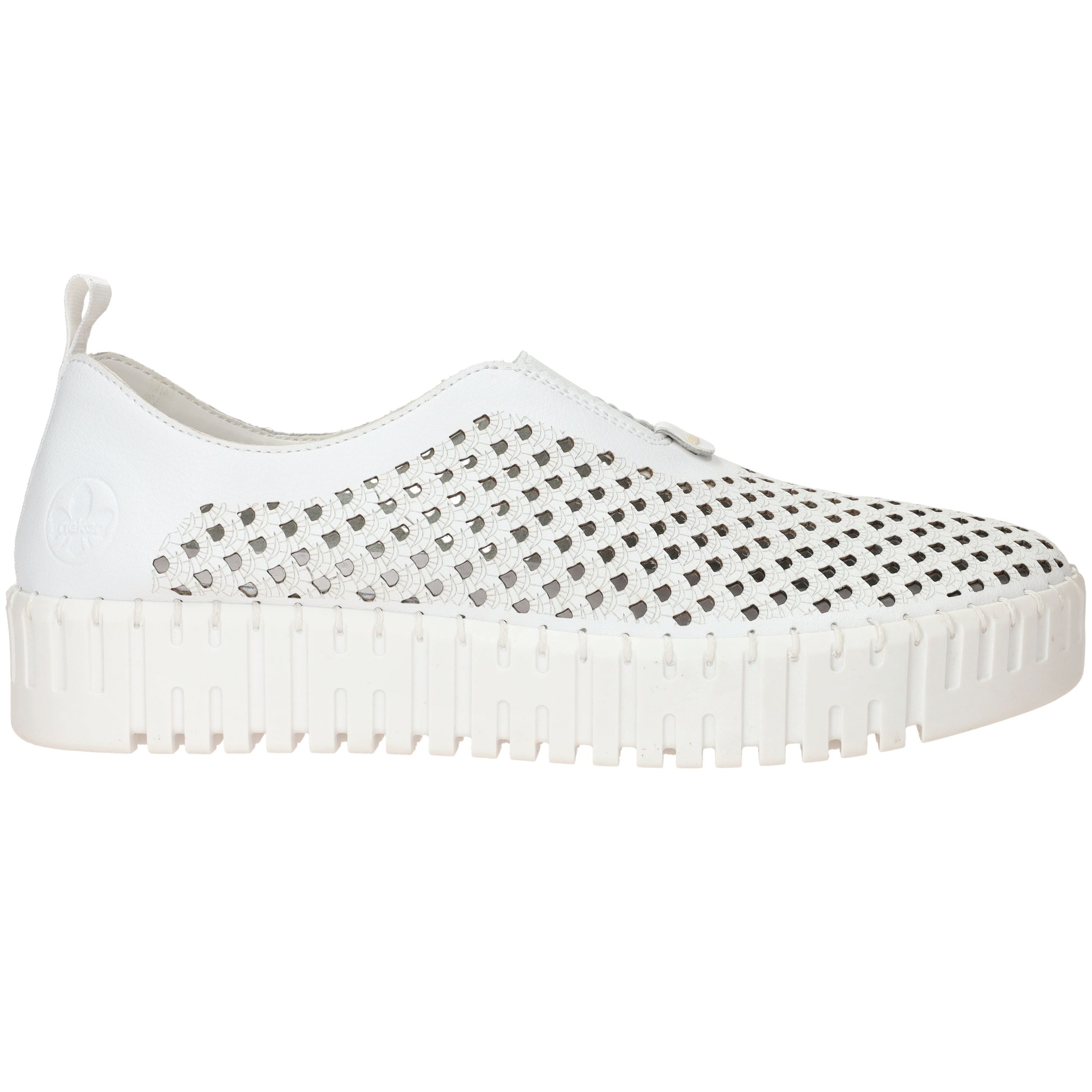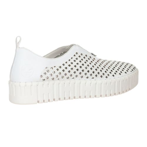 Met deze Rieker instapper ben je klaar voor het mooie weer! De witte damesinstapper heeft een leuk gaatjes motief.