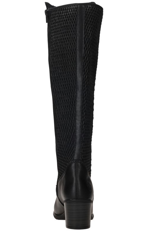 Deze elegante lange laars van Rieker combineert stijl en comfort. Het bovenwerk is vervaardigd uit een combinatie van leer en synthetisch materiaal, wat zorgt voor een mooie uitstraling én duurzaamheid. De zachte textielen voering biedt extra draagcomfort, waardoor deze laars ideaal is voor dagelijks gebruik. Dankzij het tijdloze design met een subtiele hak is deze laars eenvoudig te combineren met zowel jurken als broeken.