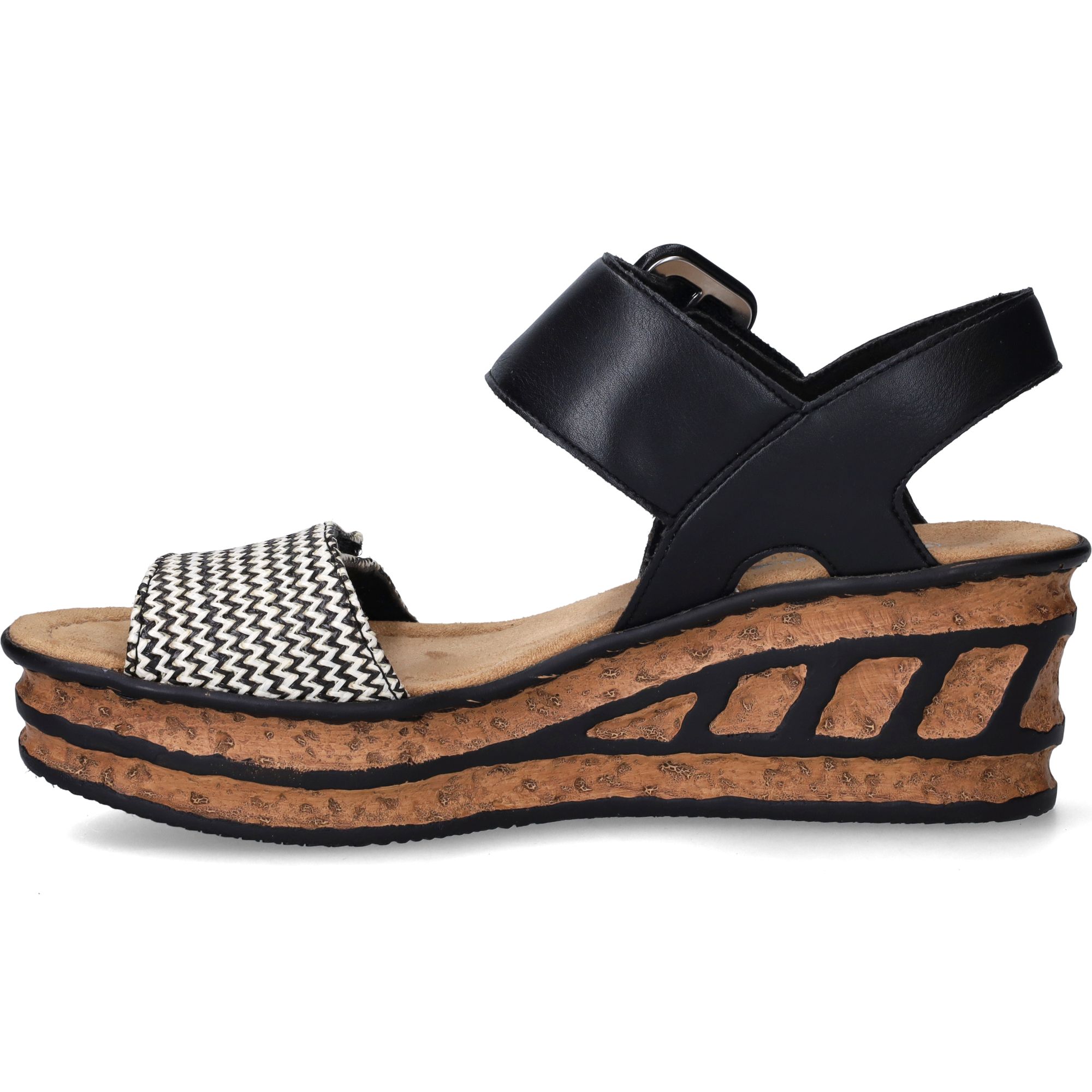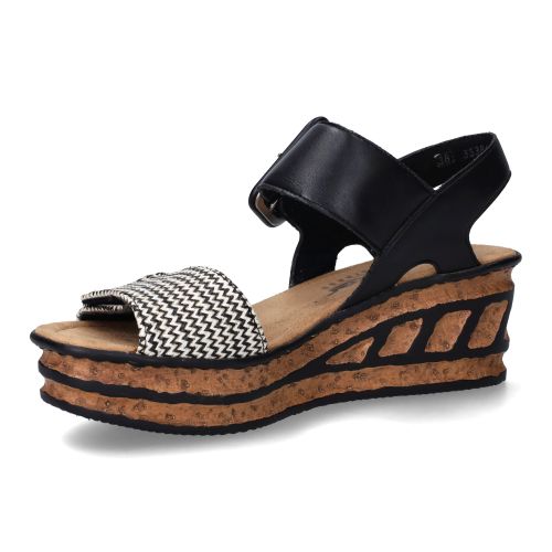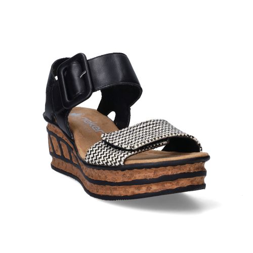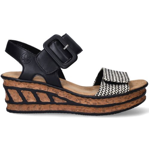 De [dames sandalen](/dames/schoenen/comfort) van [Rieker](/damesrieker) in tijdloos zwart combineren moeiteloos stijl met comfort, perfect voor dames die waarde hechten aan een prettig loopgevoel. Deze sandalen zijn ontworpen met jouw comfort in gedachten, zodat je de hele dag door kunt genieten van een fijne ervaring. De soepele materialen en de uitgekiende constructie zorgen voor een rustige afwikkeling van de voet, wat bijdraagt aan een ontspannen loop. Of je nu een actieve dag voor de boeg hebt of rustig wilt wandelen, deze schoenen bieden de ondersteuning die je zoekt en staan garant voor een prettige drukverdeling onder de hele voet.- Deze sandalen sluiten met klittenband, zodat je ze eenvoudig aan- en uittrekt en de pasvorm makkelijk afstemt op je voet voor optimale ondersteuning.